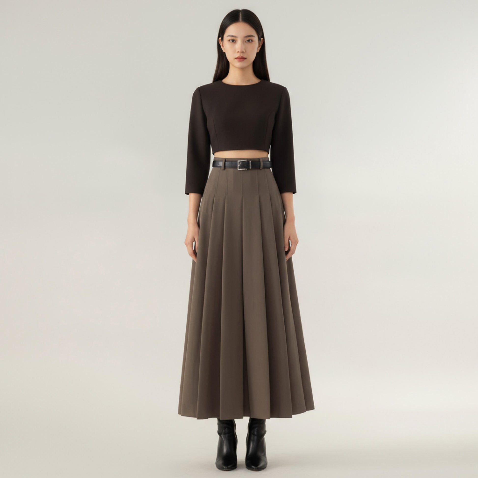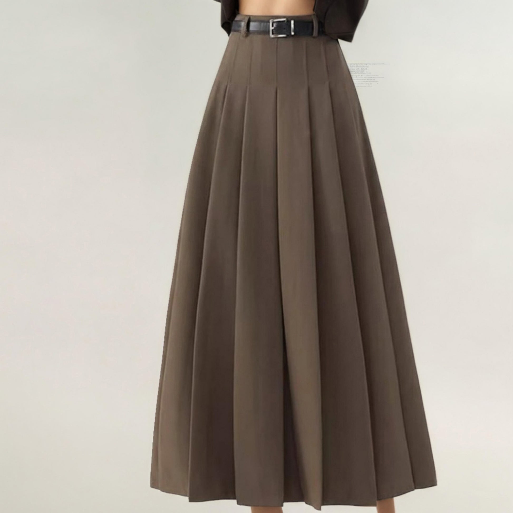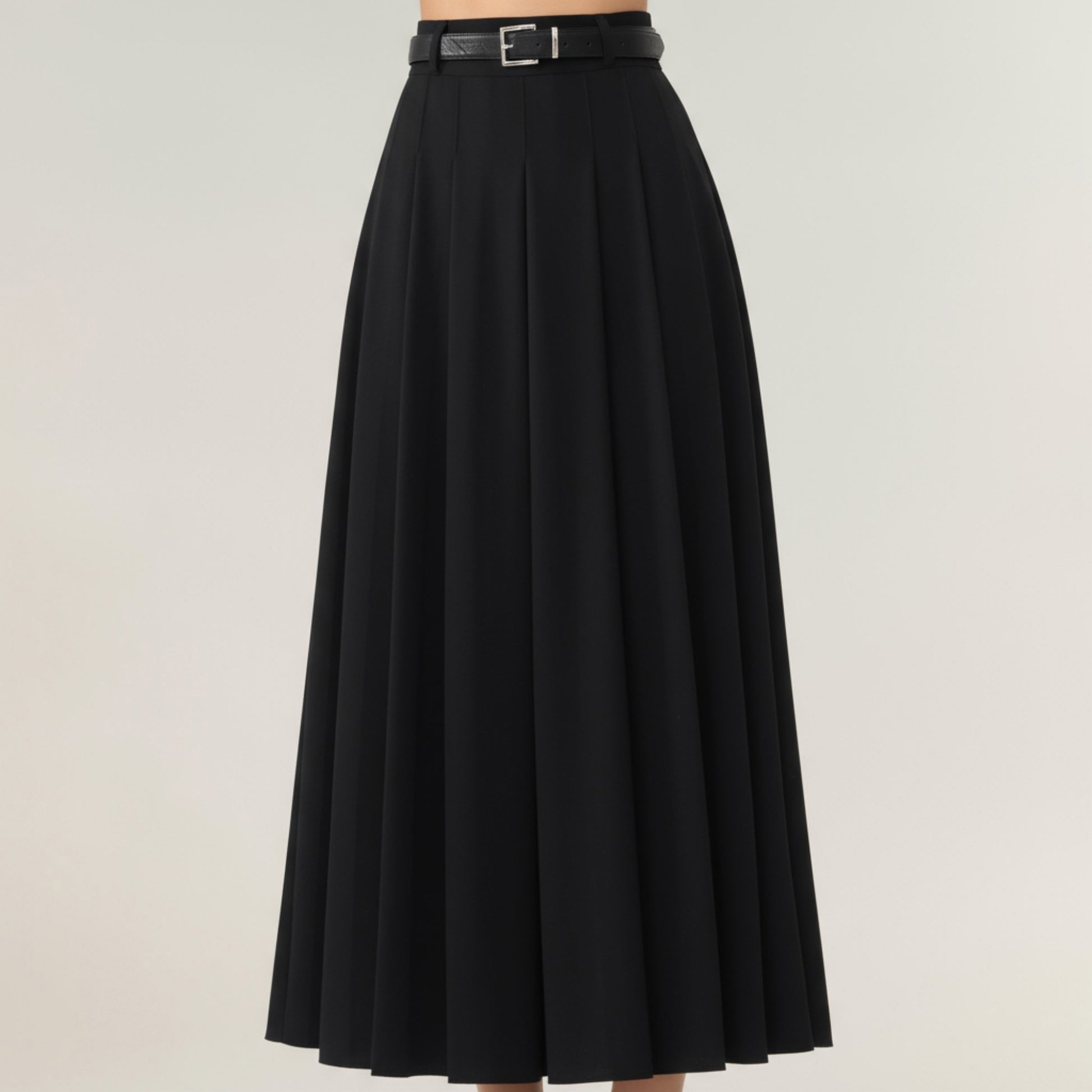 High Waist Pleated Maxi Skirt with Structured A-Line Silhouette