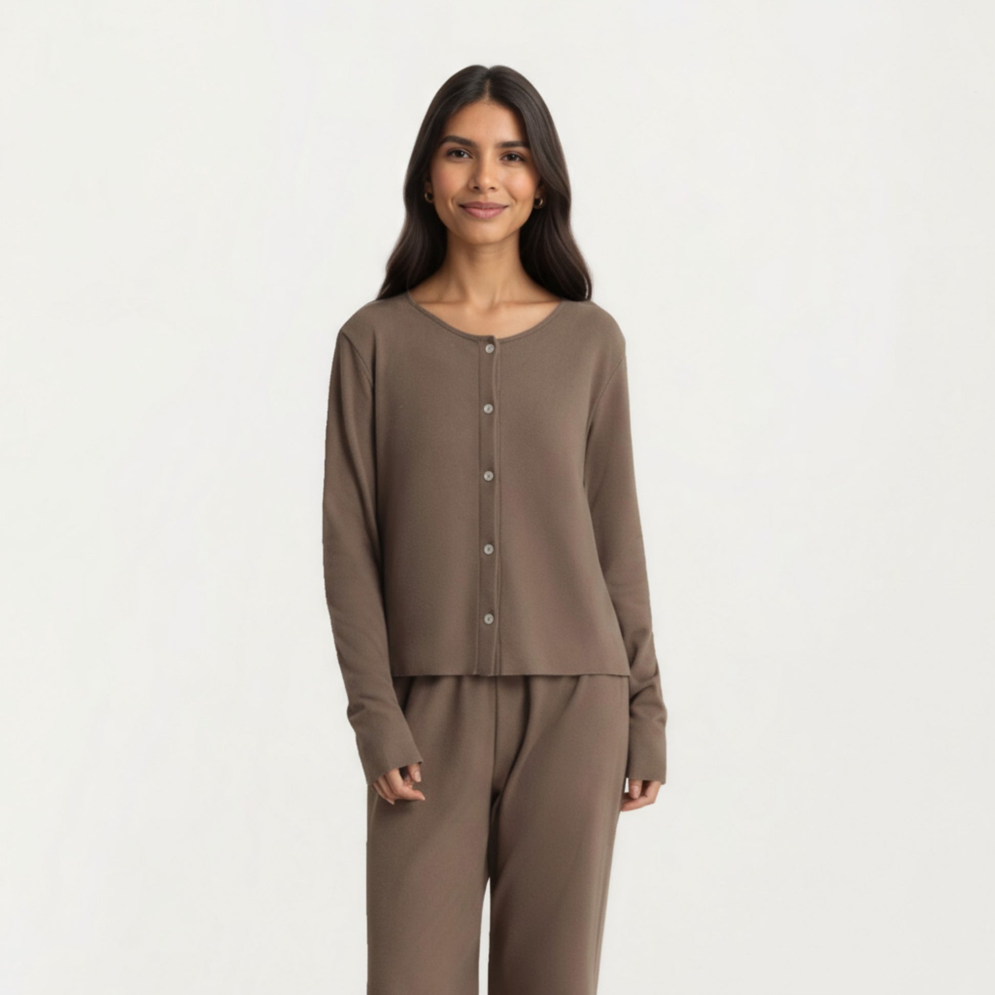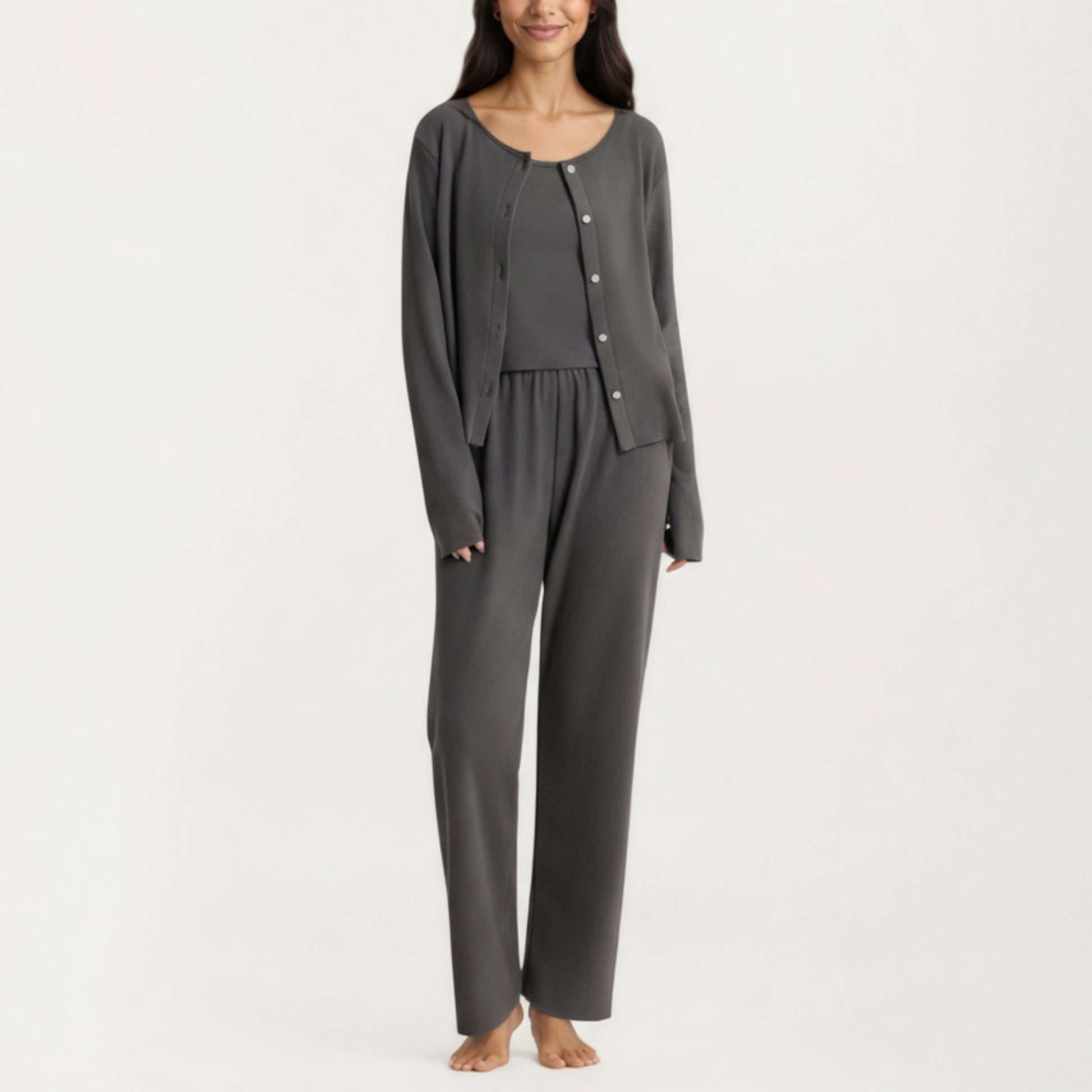 2-Piece Set Soft Knit Lounge Pants and Button-Up Cardigan with Tank Top