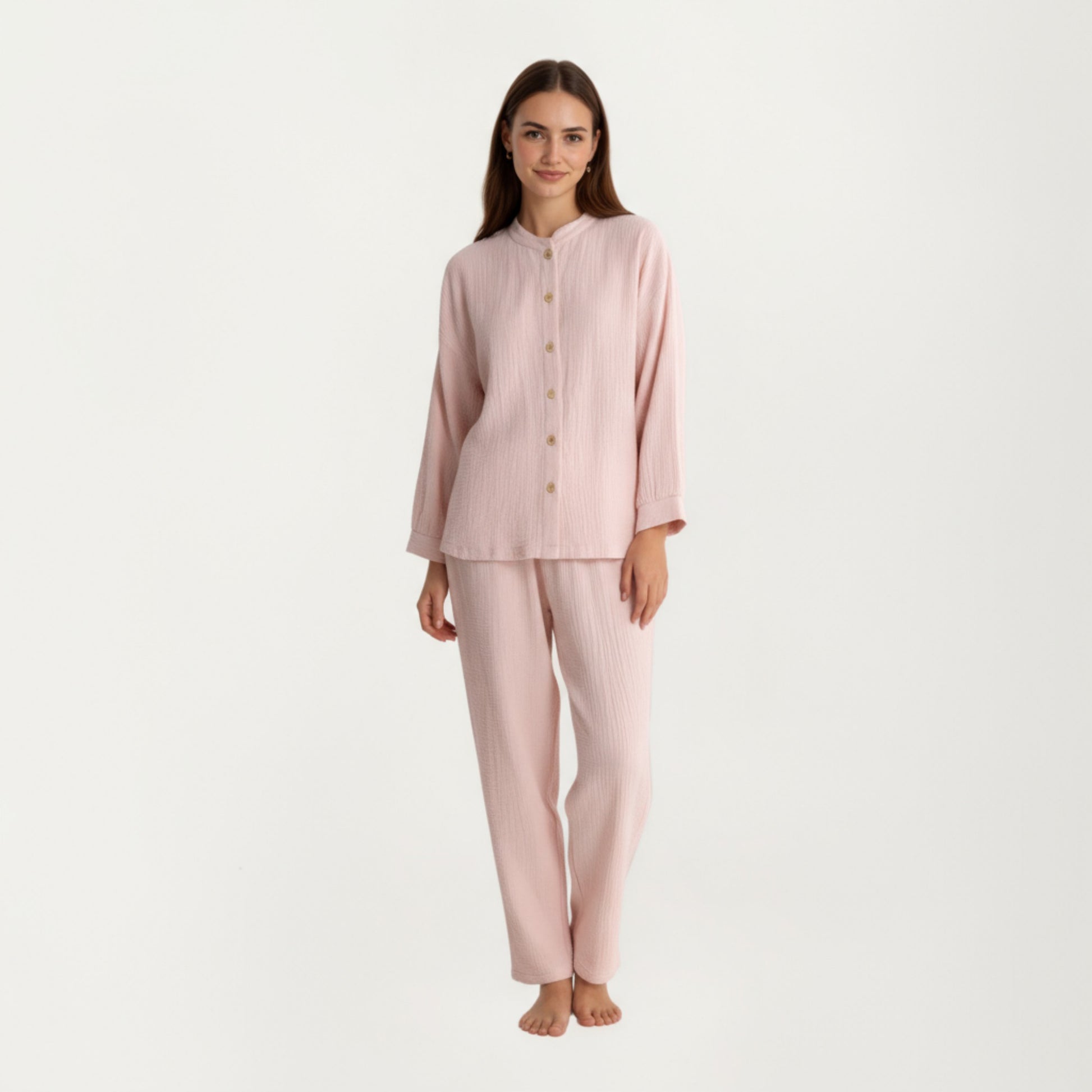 The Anna-Kaci Women's 2-Piece Set Button-Up Textured Top with Balloon Sleeves and Relaxed Fit Pants brings effortless elegance and comfort together in one versatile outfit. Made from soft, breathable textured fabric, the set features a loose-fit button-up blouse with voluminous sleeves and coordinating straight-leg pants for a refined yet relaxed silhouette. Ideal for lounging or casual outings, this set captures easy sophistication with its minimalist charm and comfortable drape.