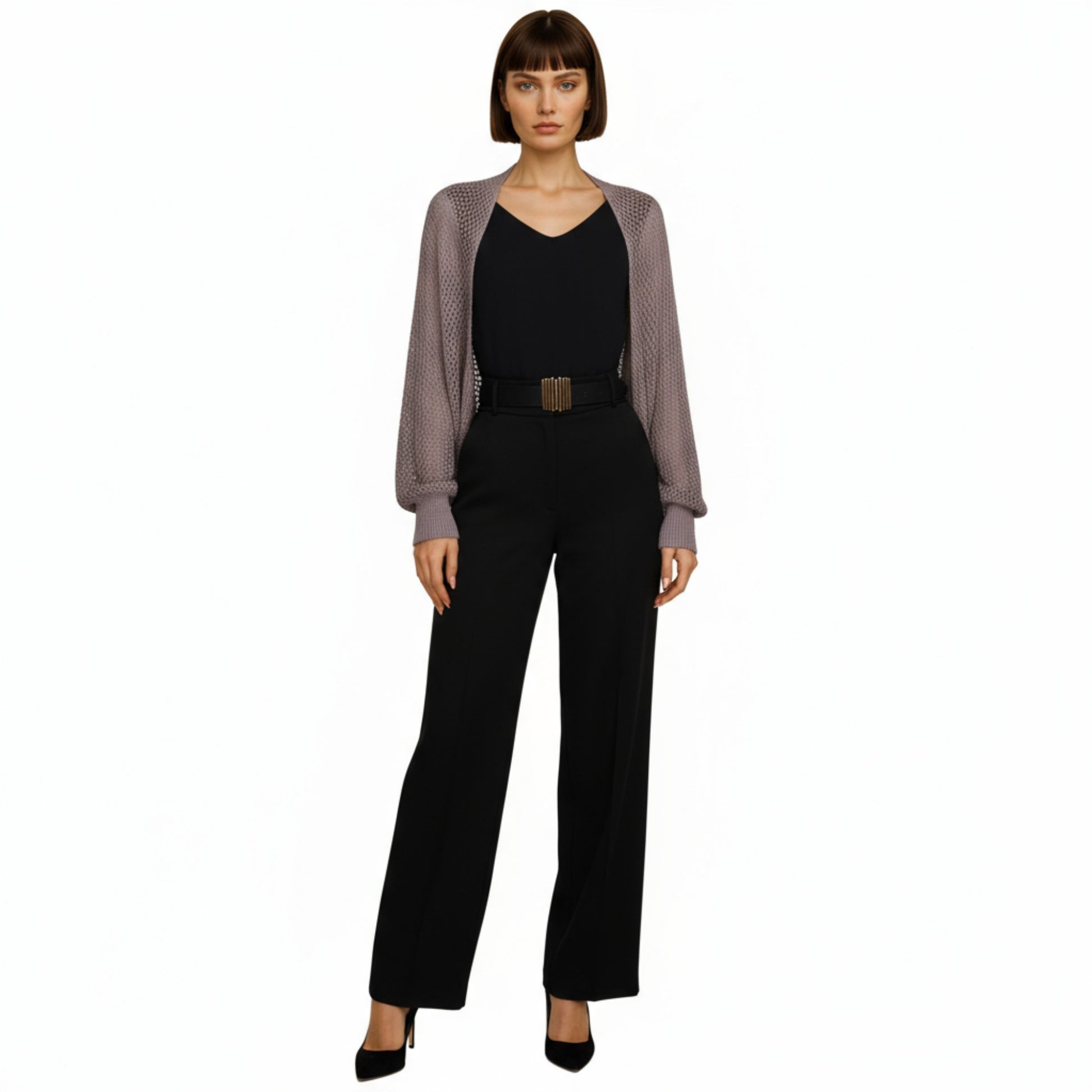 The Anna-Kaci Women's Open Knit Shrug Cardigan with Long Balloon Sleeves and Ribbed Cuffs offers a perfect mix of comfort and sophistication. Crafted from soft, breathable knit fabric, this shrug features an airy open-weave texture for a lightweight feel. The voluminous balloon sleeves and ribbed cuffs add a modern touch while maintaining a flattering drape. Ideal for layering over dresses or tops, this cardigan brings effortless elegance to any look.