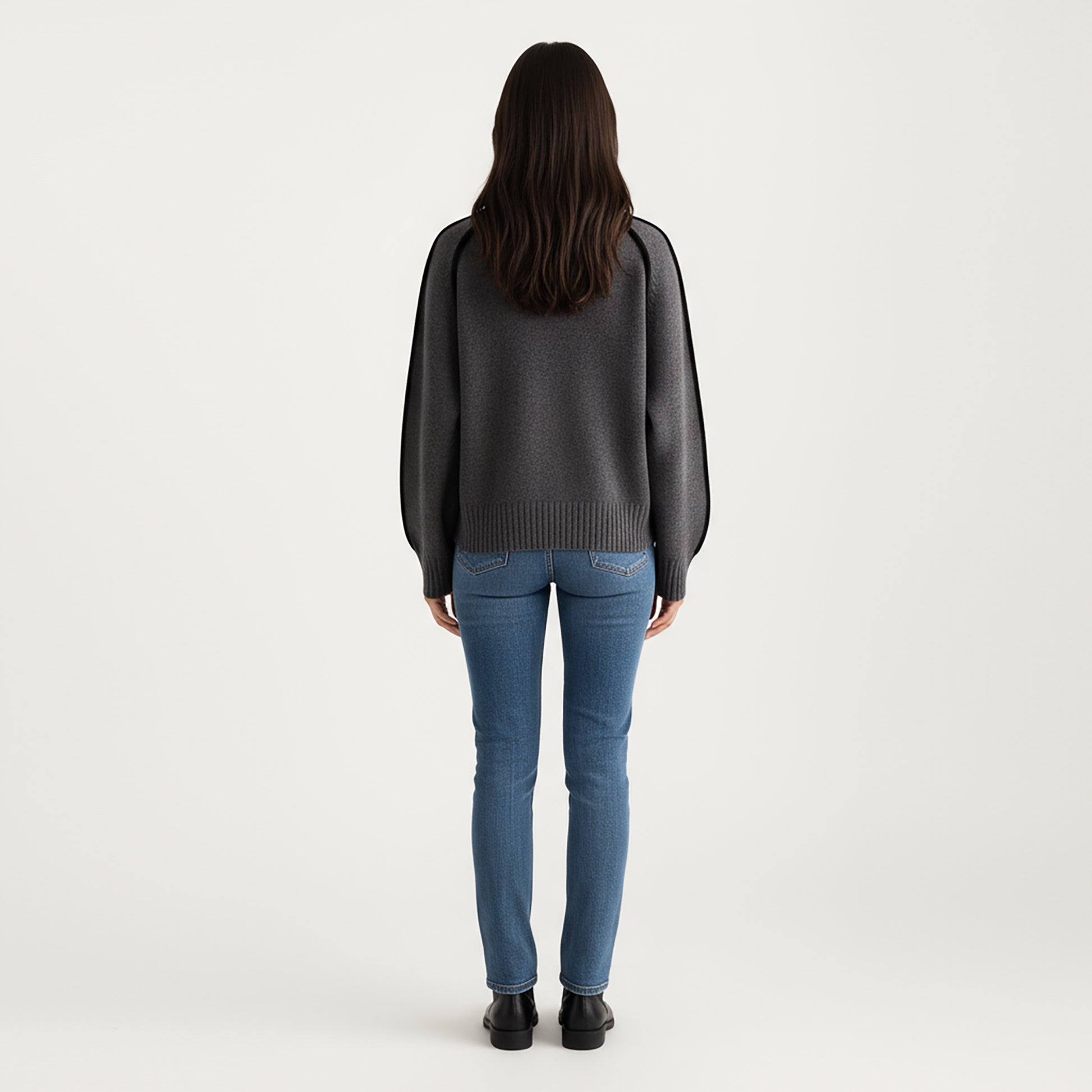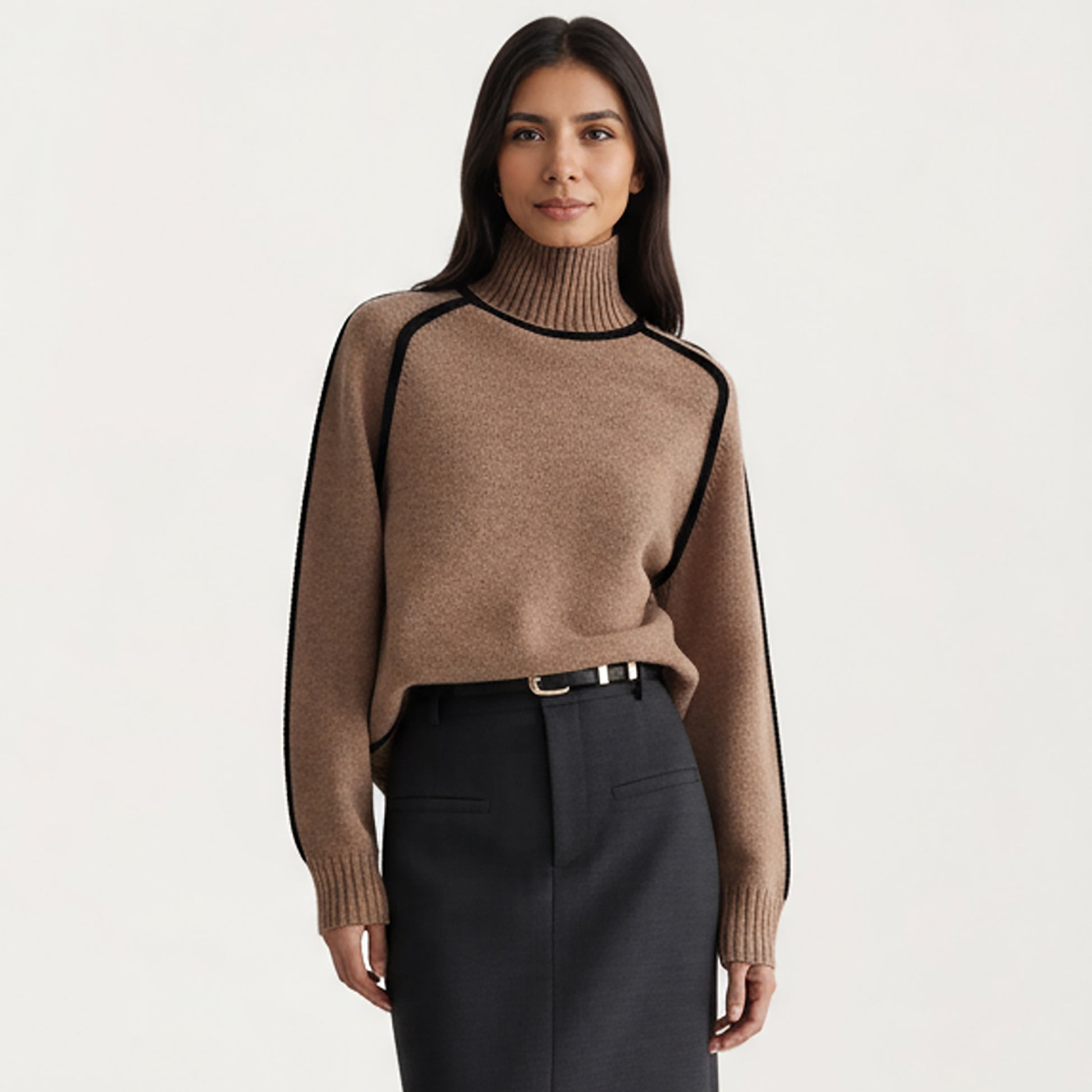 Turtleneck Pullover Top with Contrast Trim Details and Ribbed Hemline for a Clean Modern Silhouette