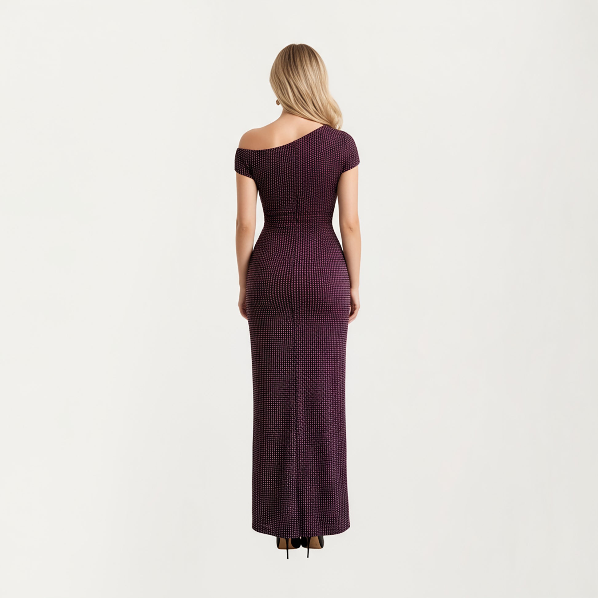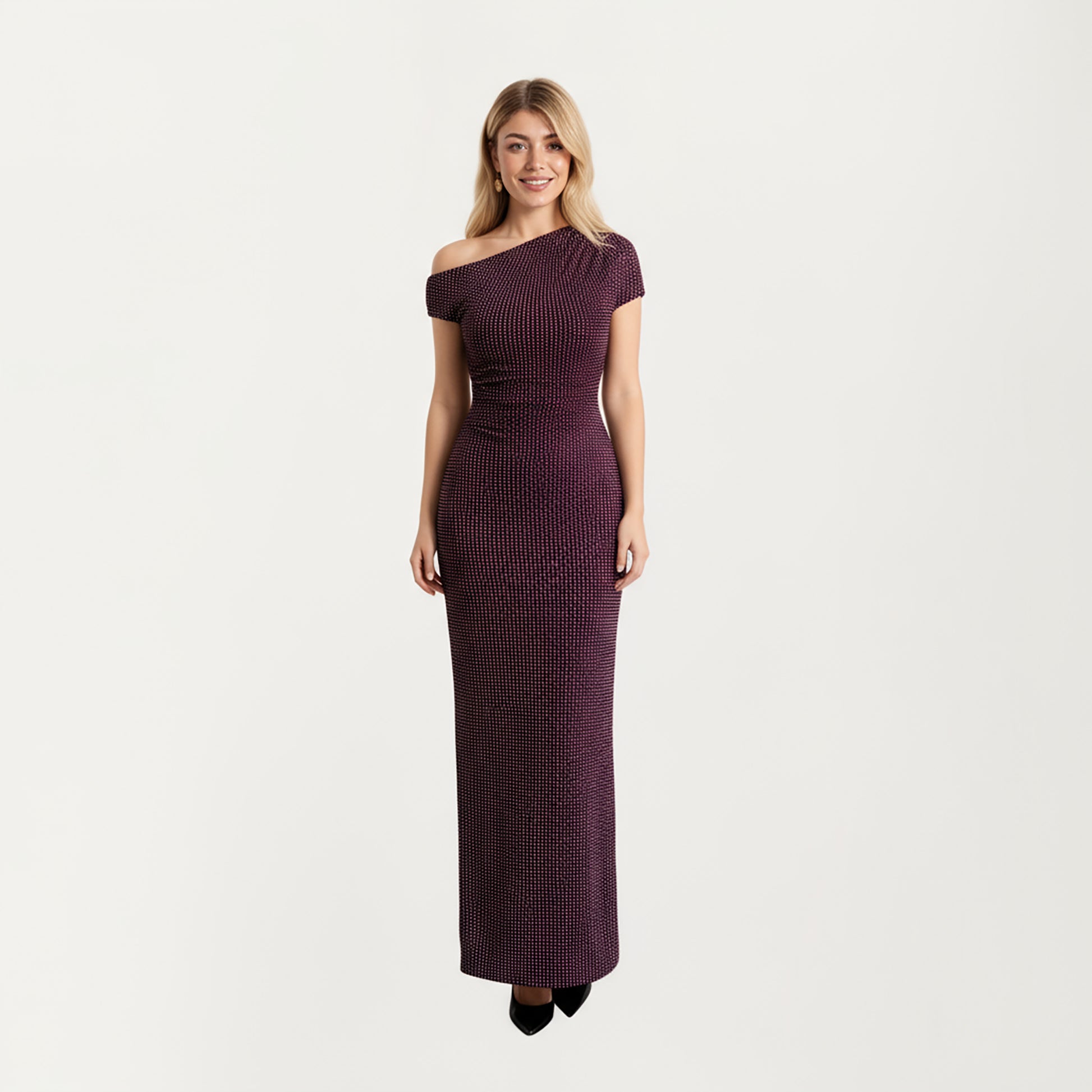 One-Shoulder Fitted Maxi Dress with Textured Stretch Knit Fabric and Sleek Contoured Silhouette