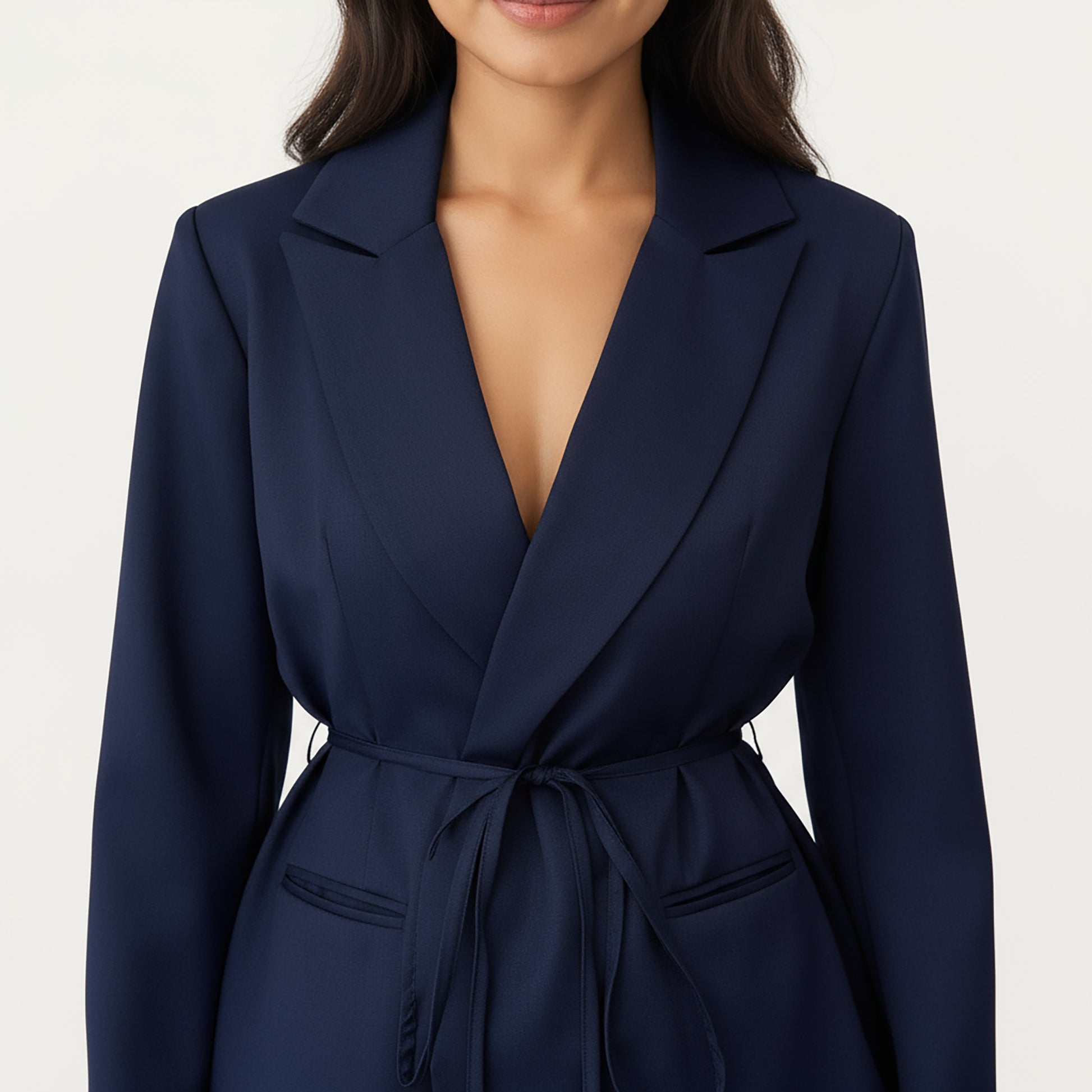 Tailored Blazer and Wide Leg Pants Set with Notched Lapel, Adjustable Tie Waist and Smooth Woven Fabric for Refined Styling