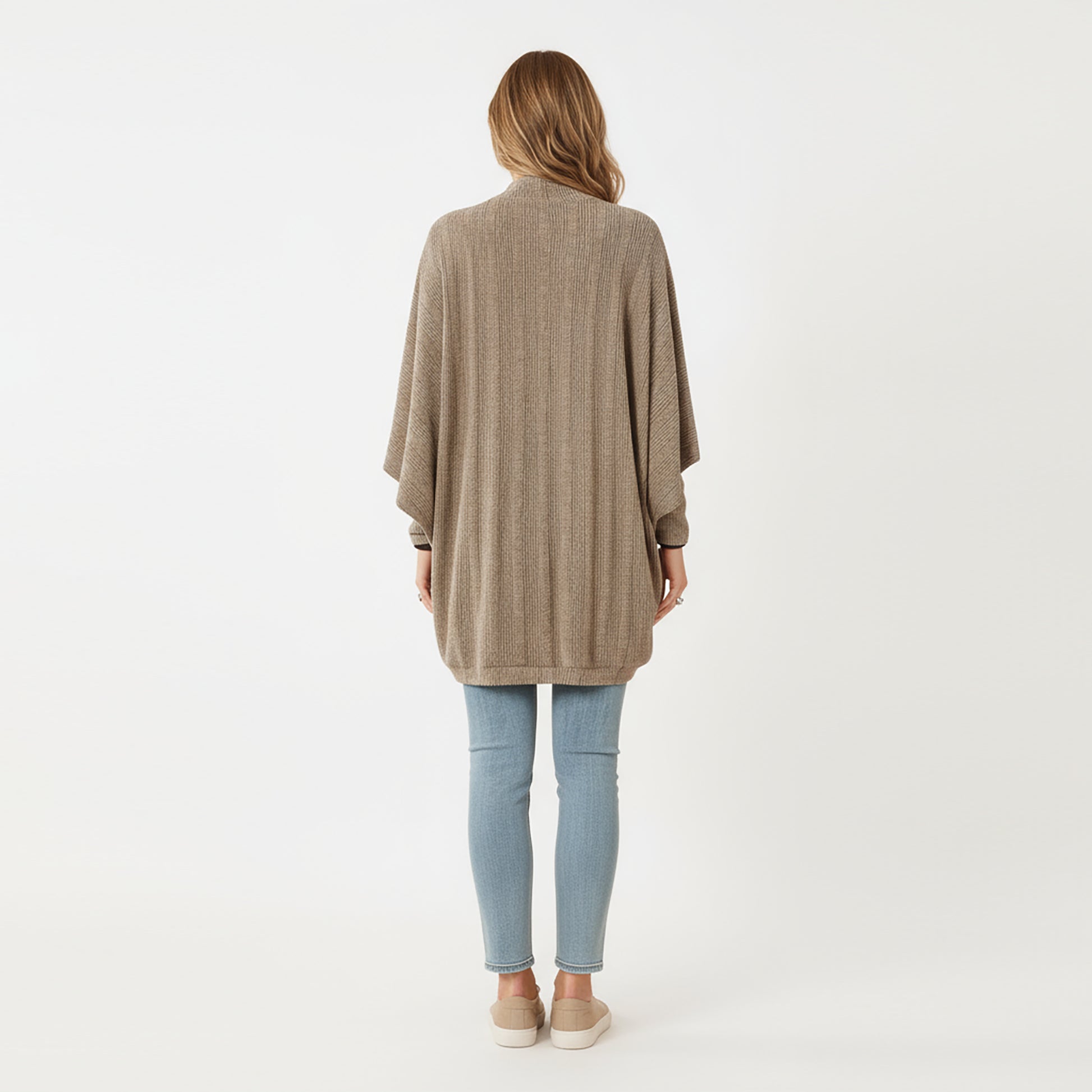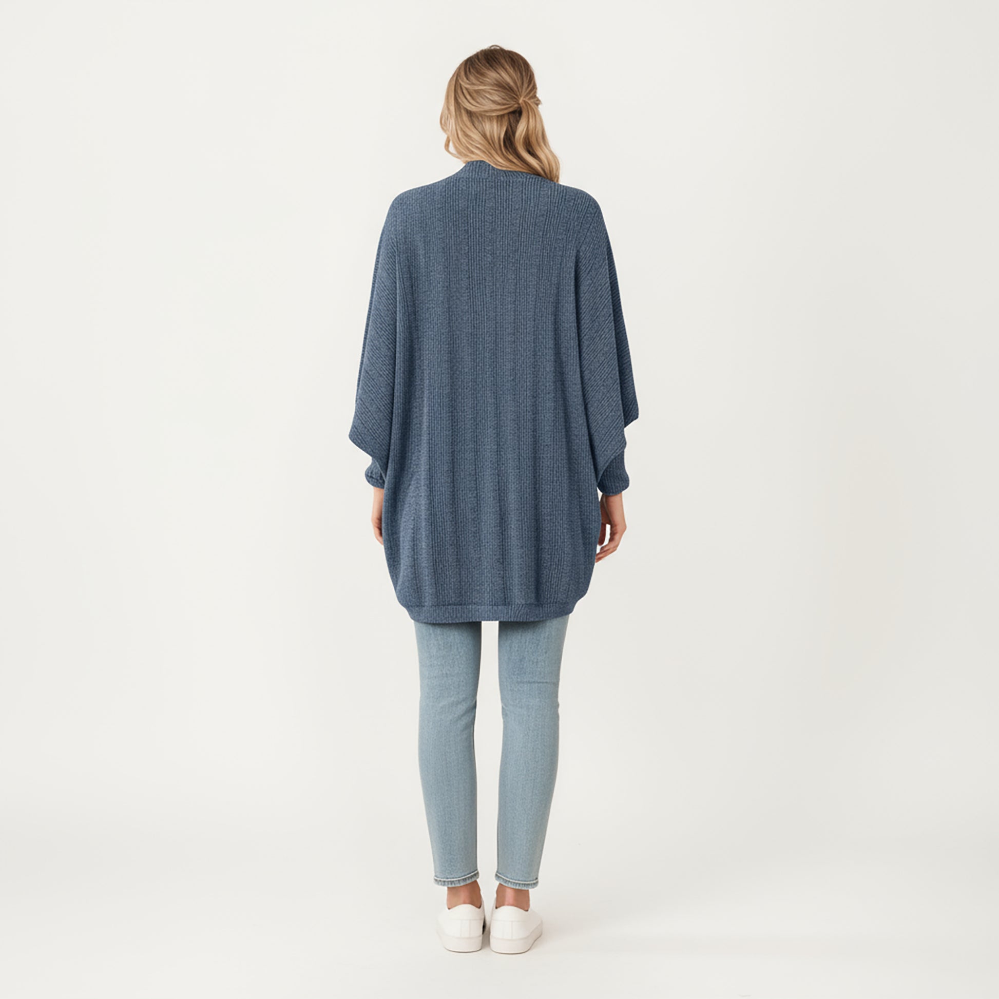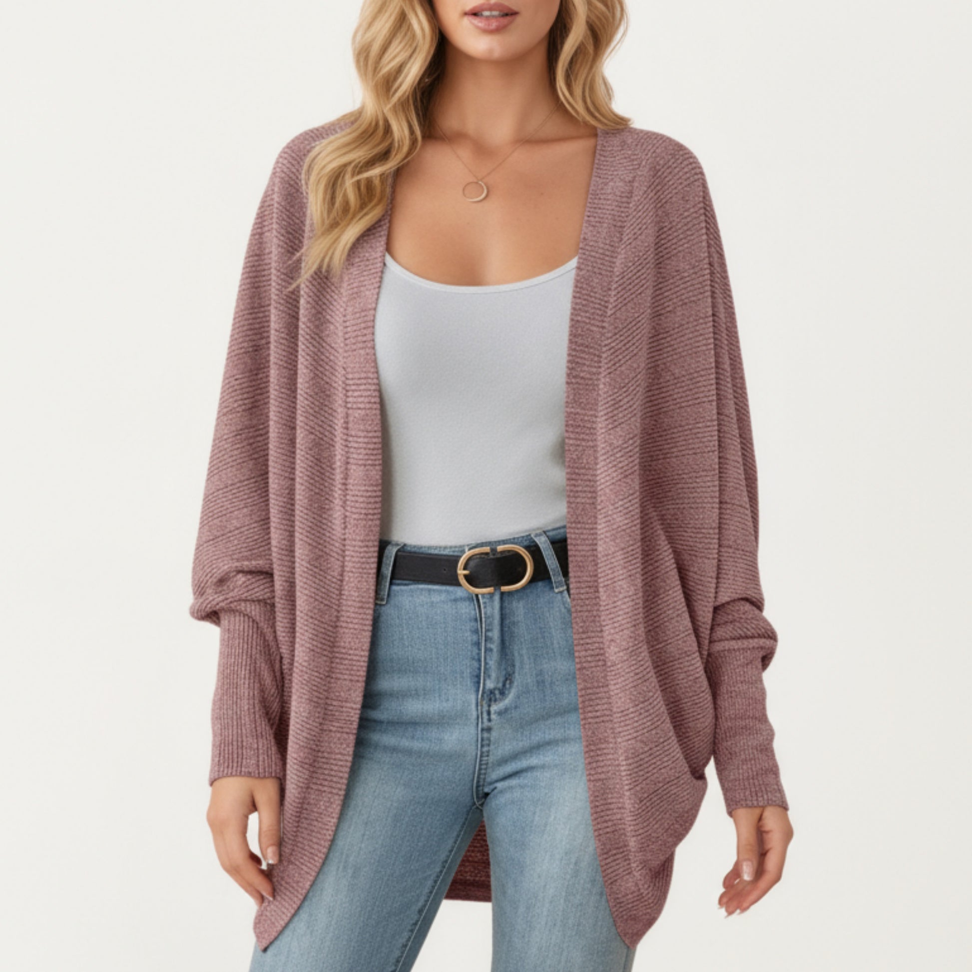 Open Front Knit Cardigan with Dolman Sleeves and Relaxed Fit