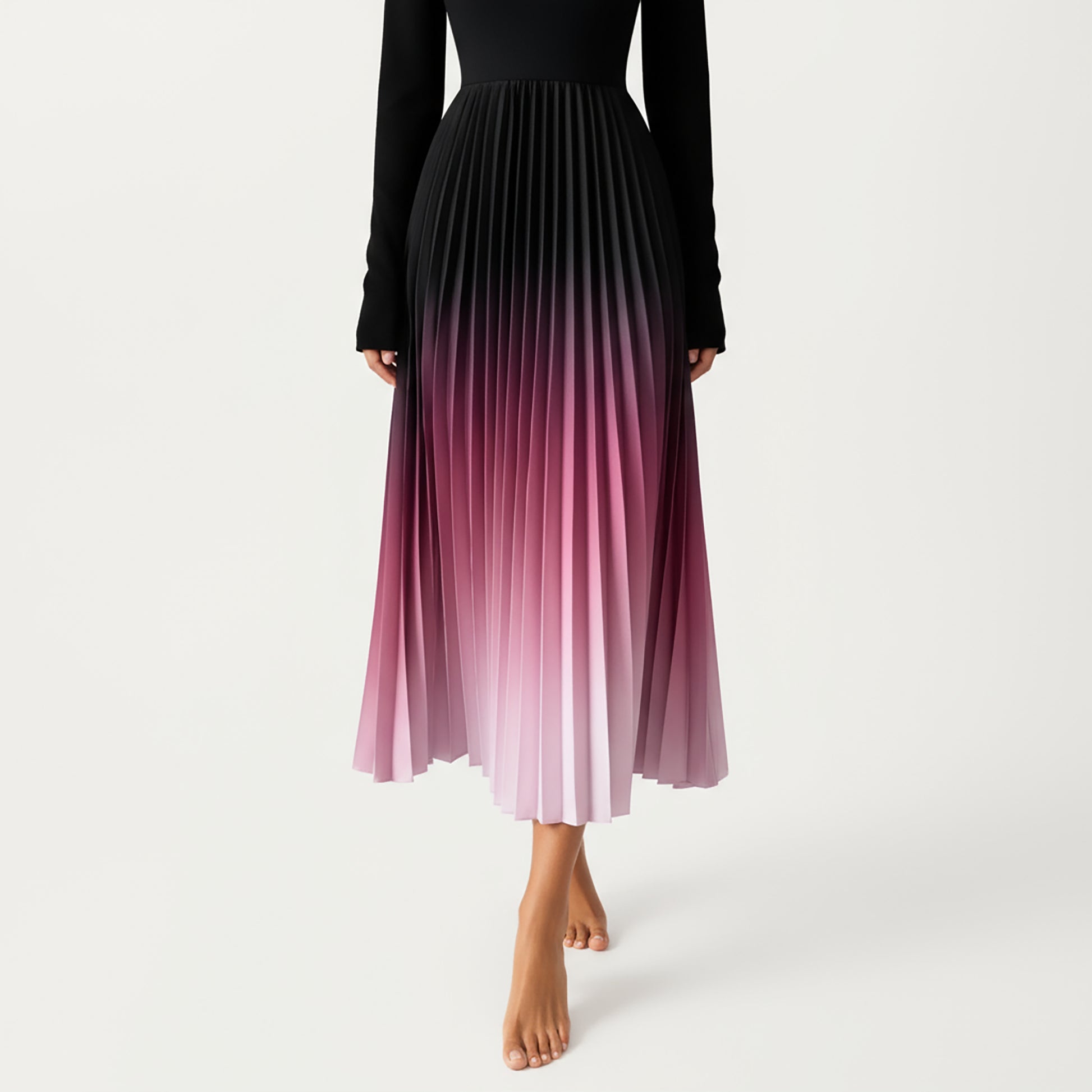 The Anna-Kaci Women's Long Sleeve Pleated Maxi Dress with Gradient Ombre Skirt and Fitted Bodice exudes timeless sophistication with a modern twist. Featuring a sleek long-sleeve top and a beautifully pleated ombre skirt, this dress creates a flattering, elongated silhouette. The gradient transition adds depth and elegance, while the flowing pleats bring graceful movement. Perfect for evening events or refined daytime occasions, this dress radiates chic femininity.