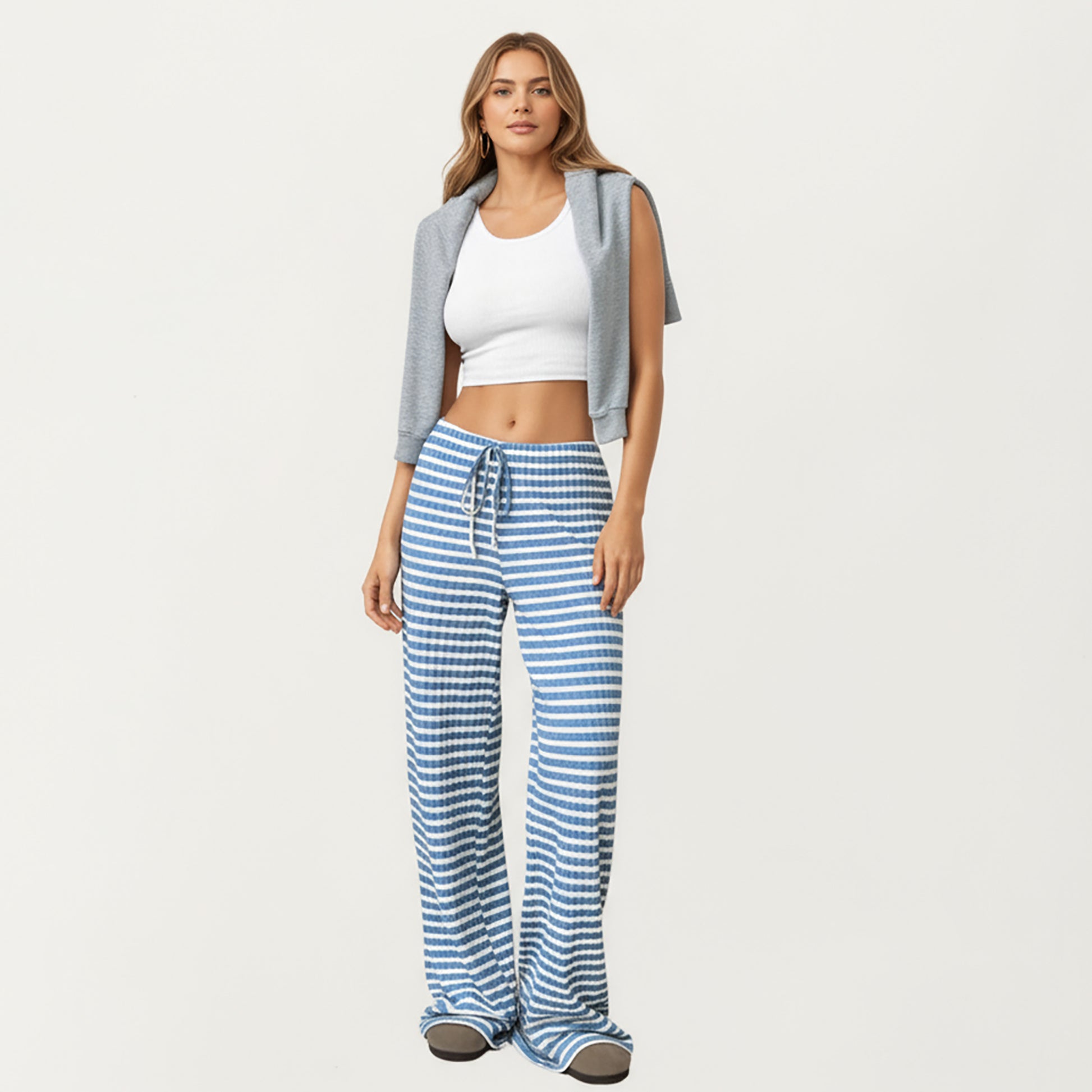 Striped Textured Long Sleeve Dress with Soft Ribbed Fabric and Relaxed Flowing Silhouette for Comfortable Everyday Wear