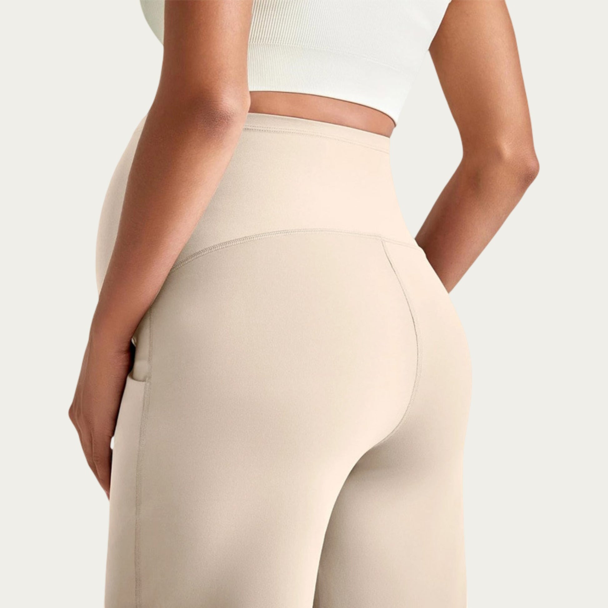 Soft Stretch Maternity Pants with Full Belly Panel and Front Seam Detailing for Smooth Support and Flattering Wide Leg Fit