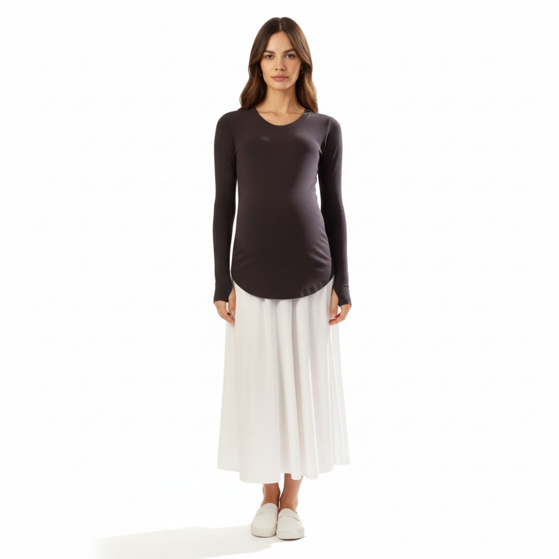 Maternity Long Sleeve Stretch Knit Top with Soft Seamless Fit and Gentle Belly-Shaping Silhouette