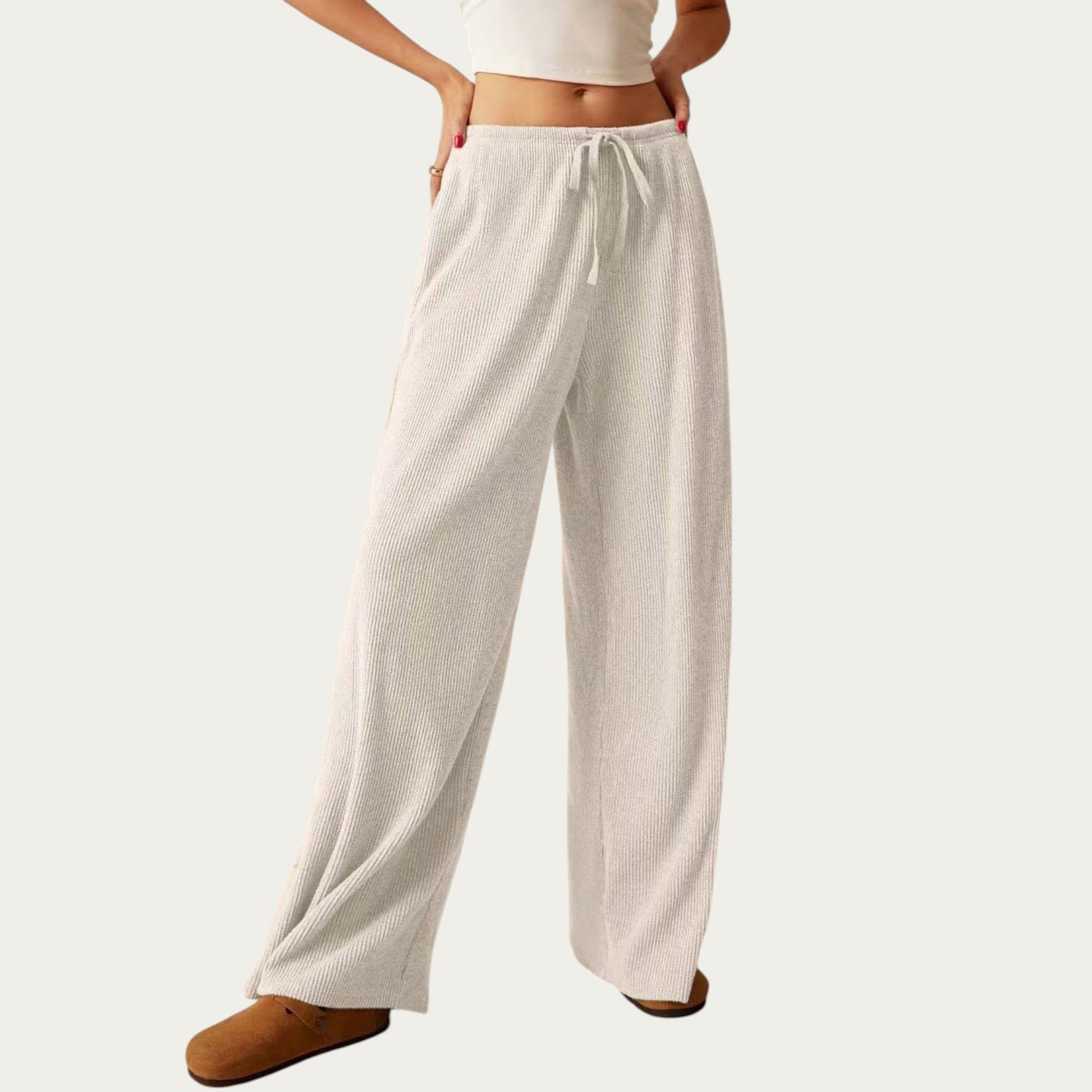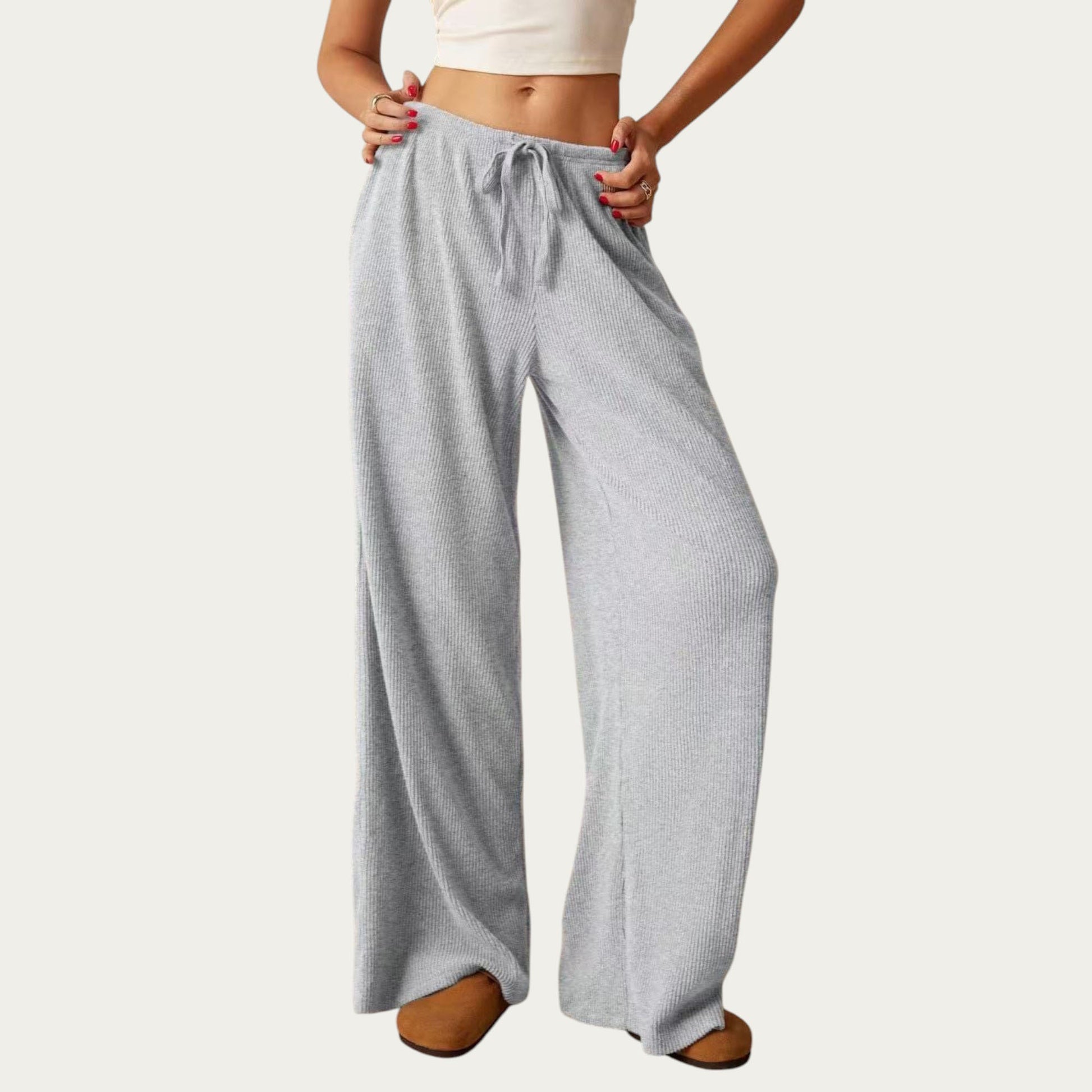 Soft Ribbed Pants with Wide Relaxed Legs Adjustable Drawstring Waistband and Stretch Fabric