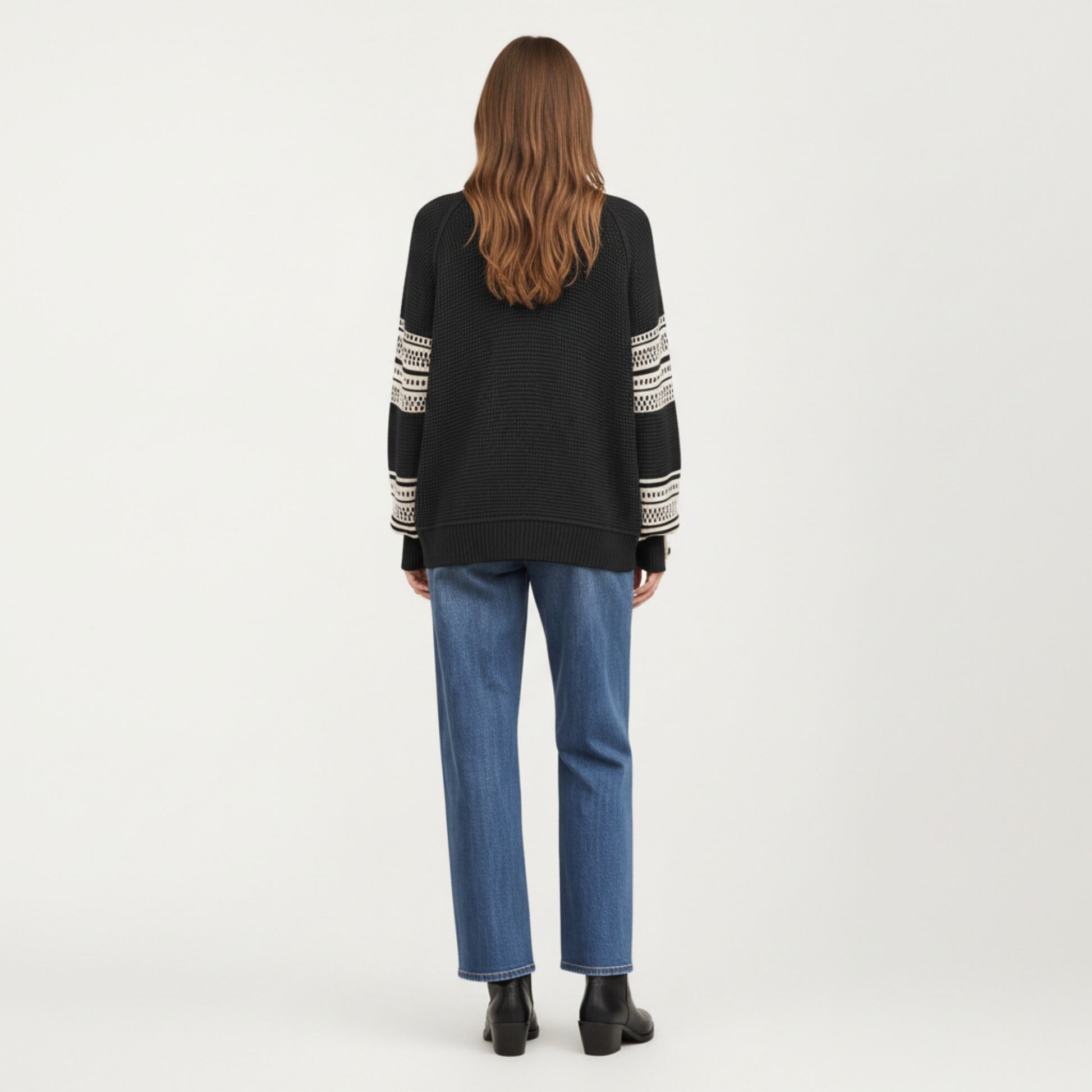 This Anna-Kaci Women¡¯s top features a textured waffle-stitch body paired with contrast ribbed accents that elevate its cozy, structured look. The mock neckline adds a polished touch, while the patterned sleeves bring dimension and character. Decorative button details at the cuffs enhance the design without overwhelming the silhouette. With its relaxed drape, this top offers comfort, softness, and easy everyday wear.