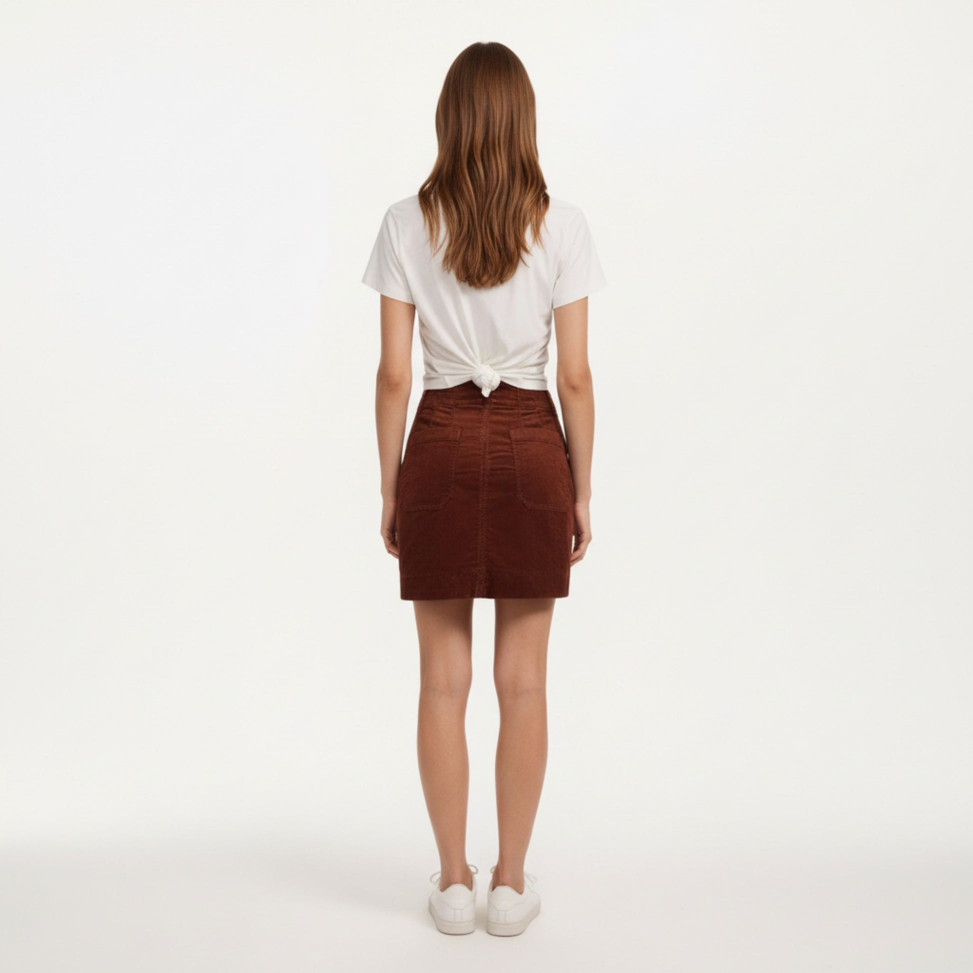 Button Front Corduroy Mini Skirt with Structured Patch Pockets and Clean Straight Hem for a Modern Textured Look