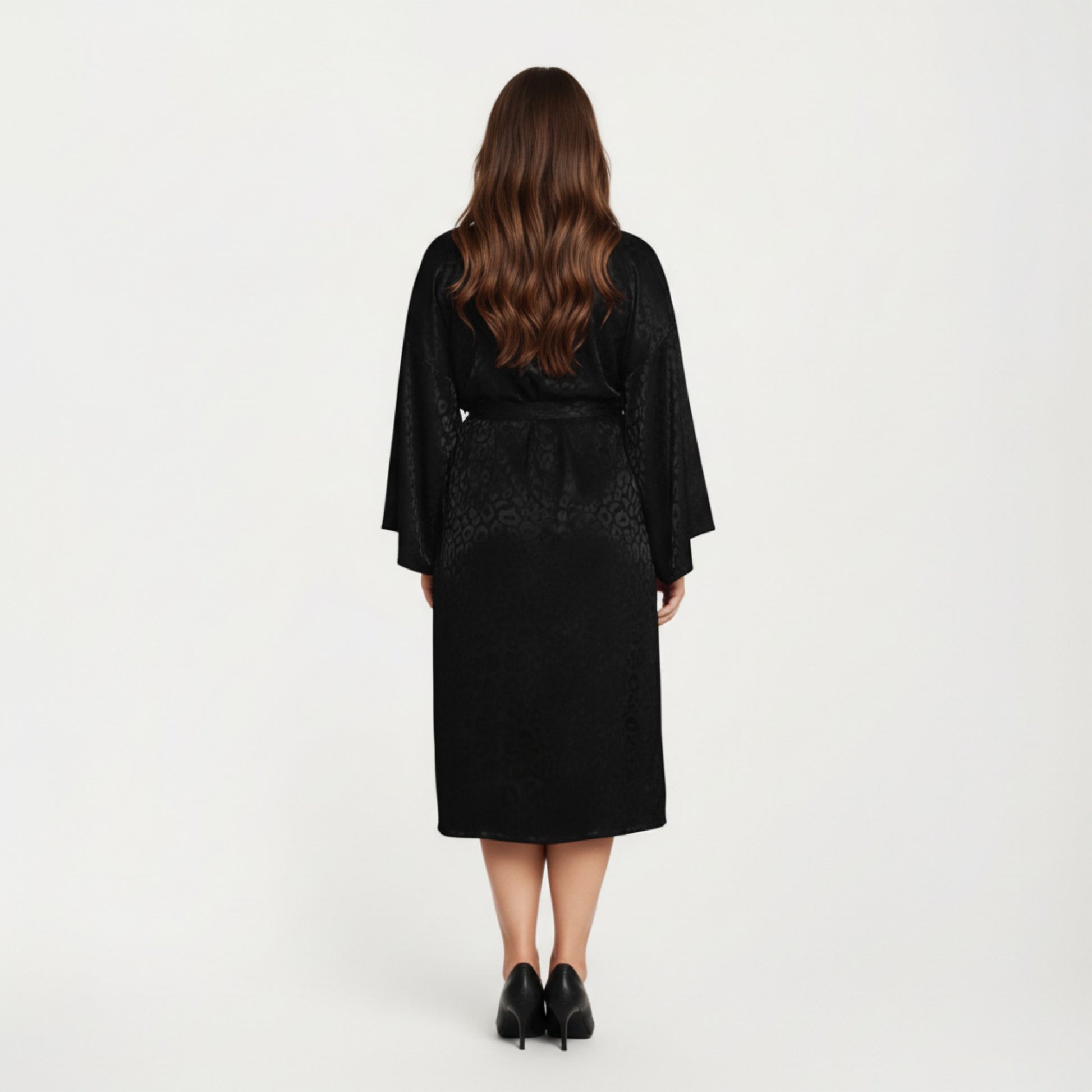 Satin Jacquard Leopard Pattern Robe with Waist Tie Silky Fabric Wide Sleeves and Flowing Longline Silhouette
