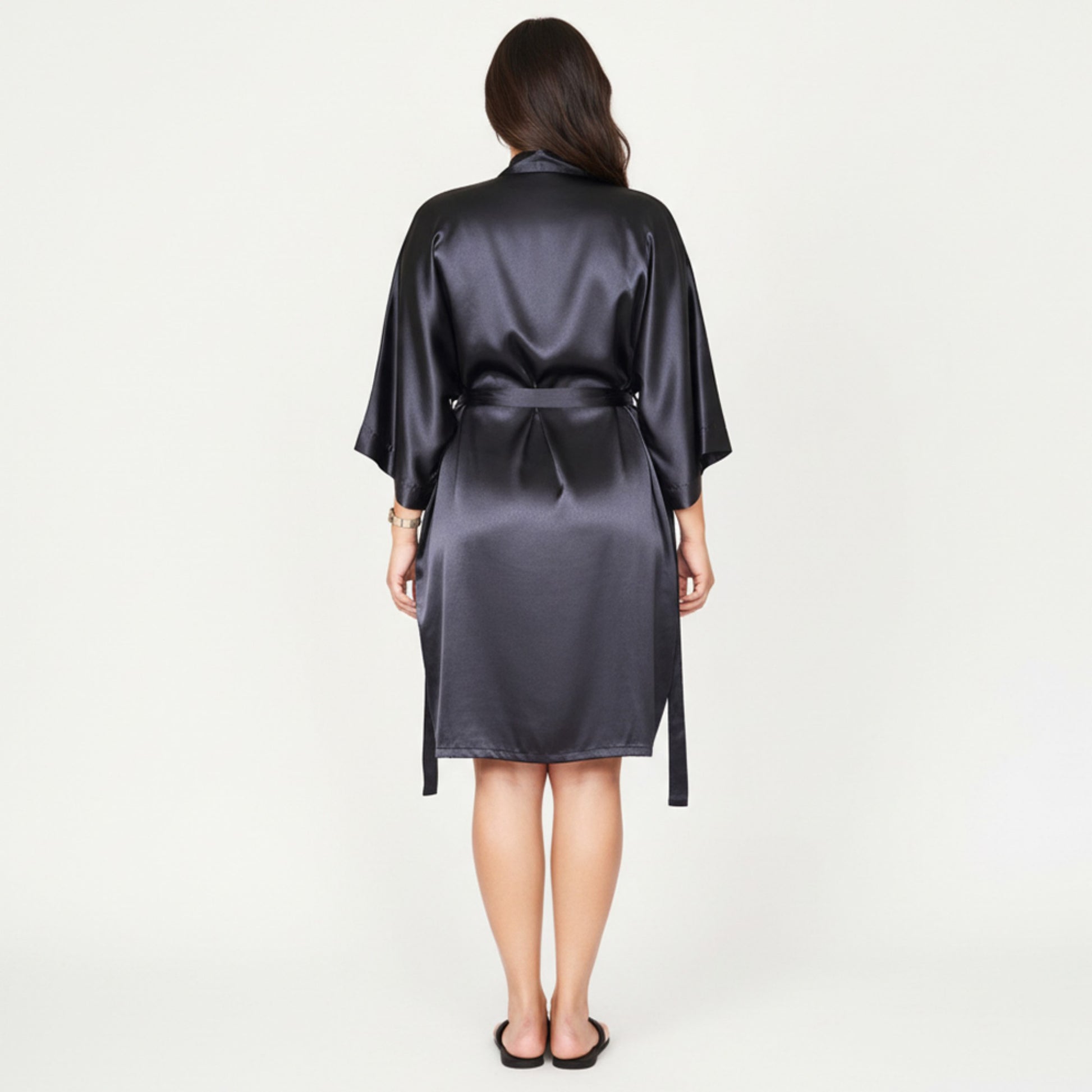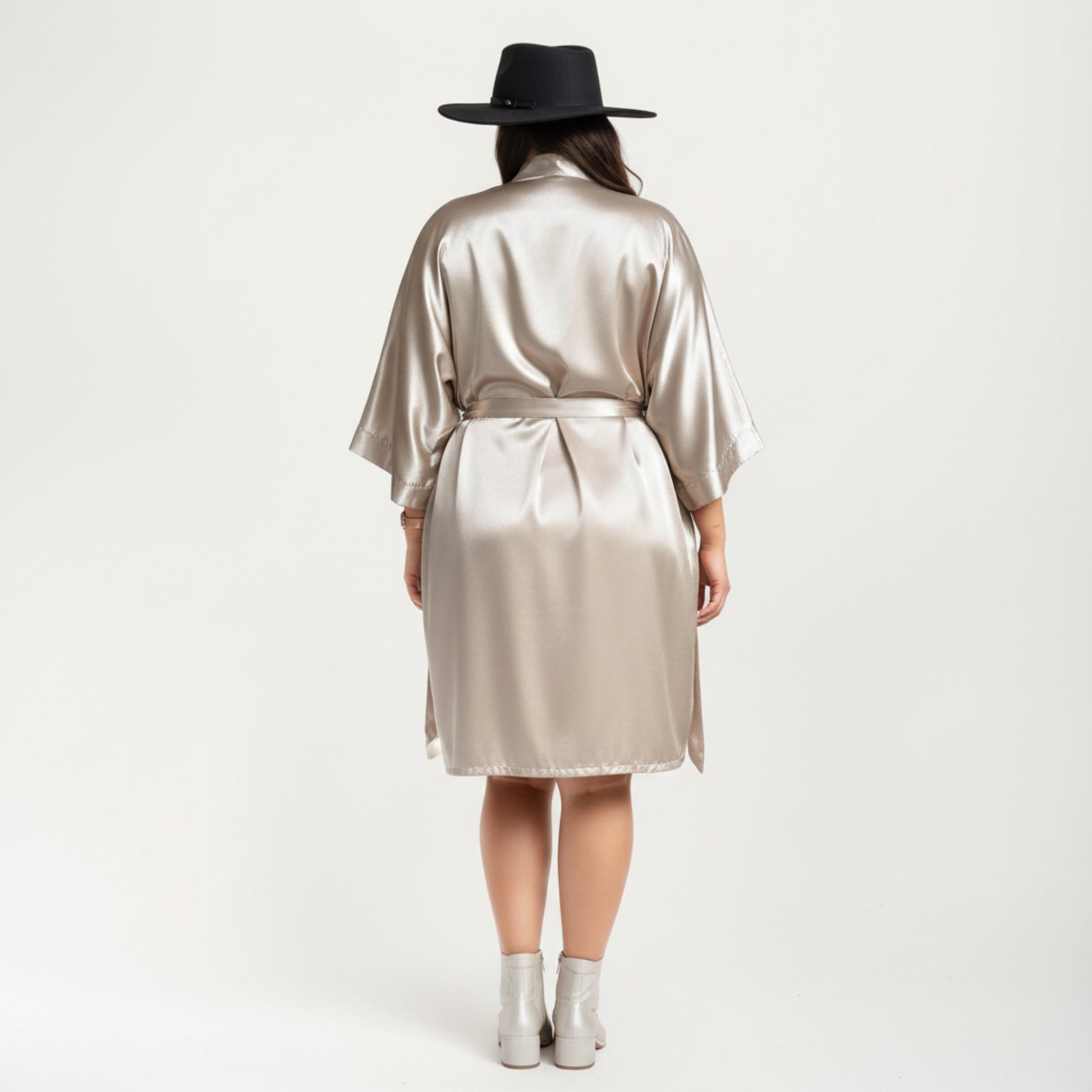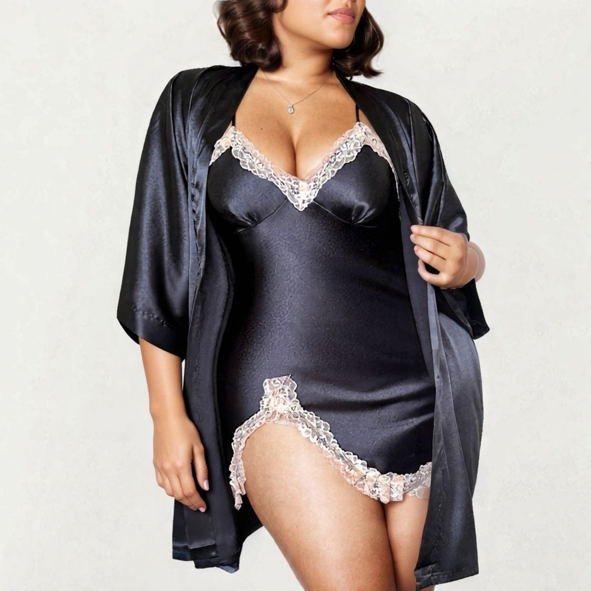 2-Piece Satin Slip Dress and Robe Set with Lace Trim Details and Elegant Flowing Layered Silhouette