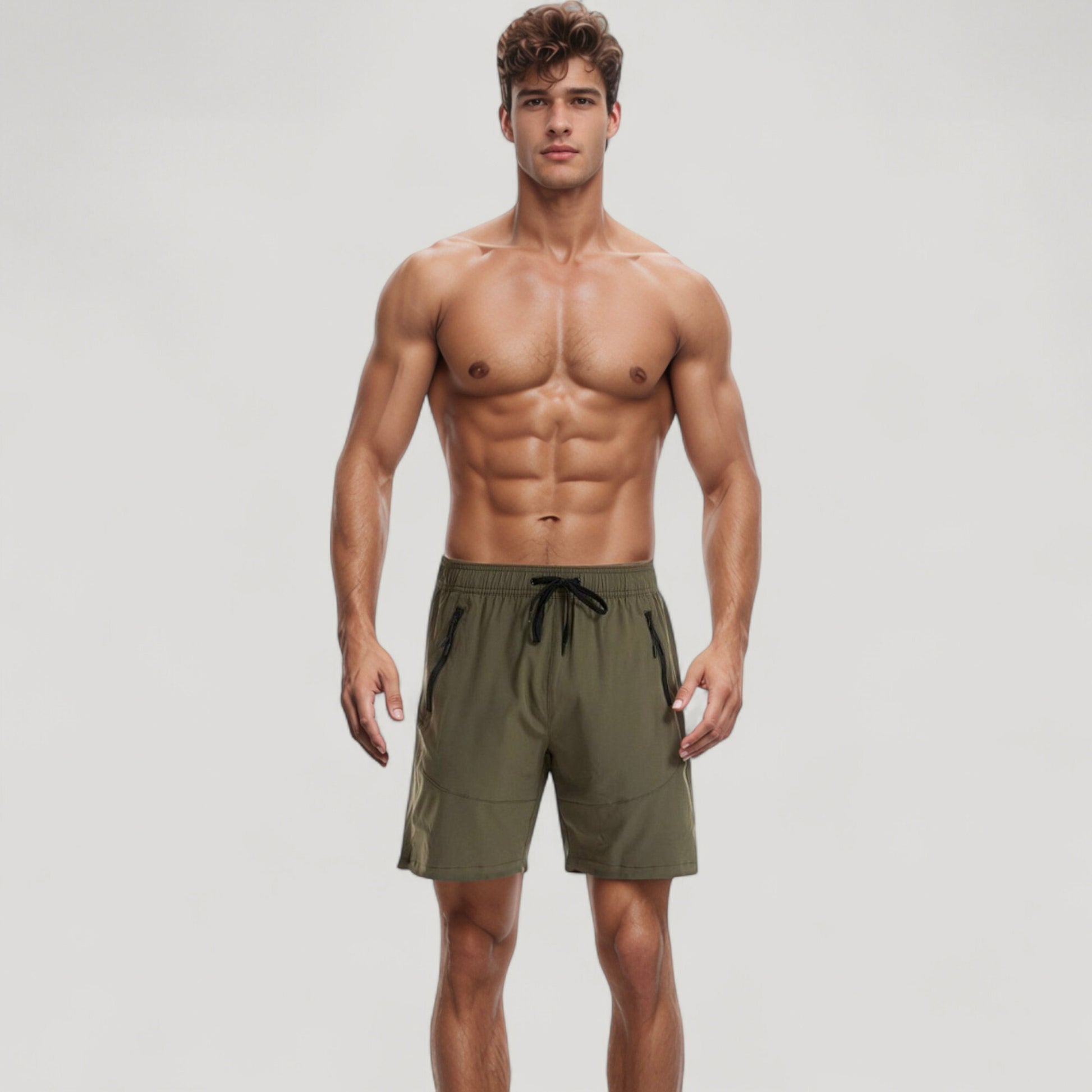 Men's Swim Trunks with Zipper Pockets and Adjustable Drawstring Waistband for Everyday Comfort