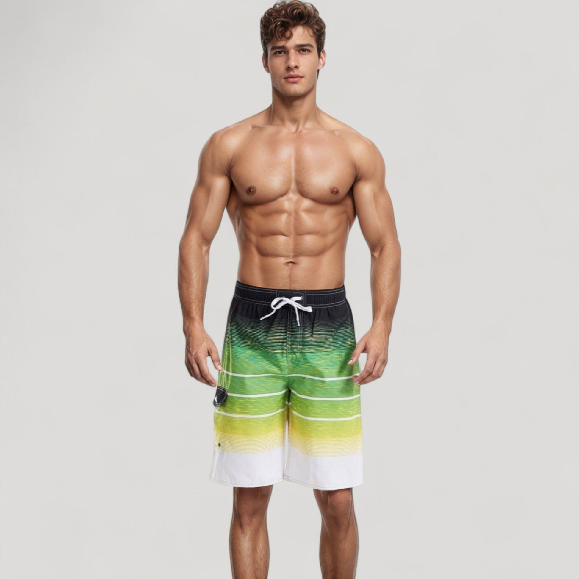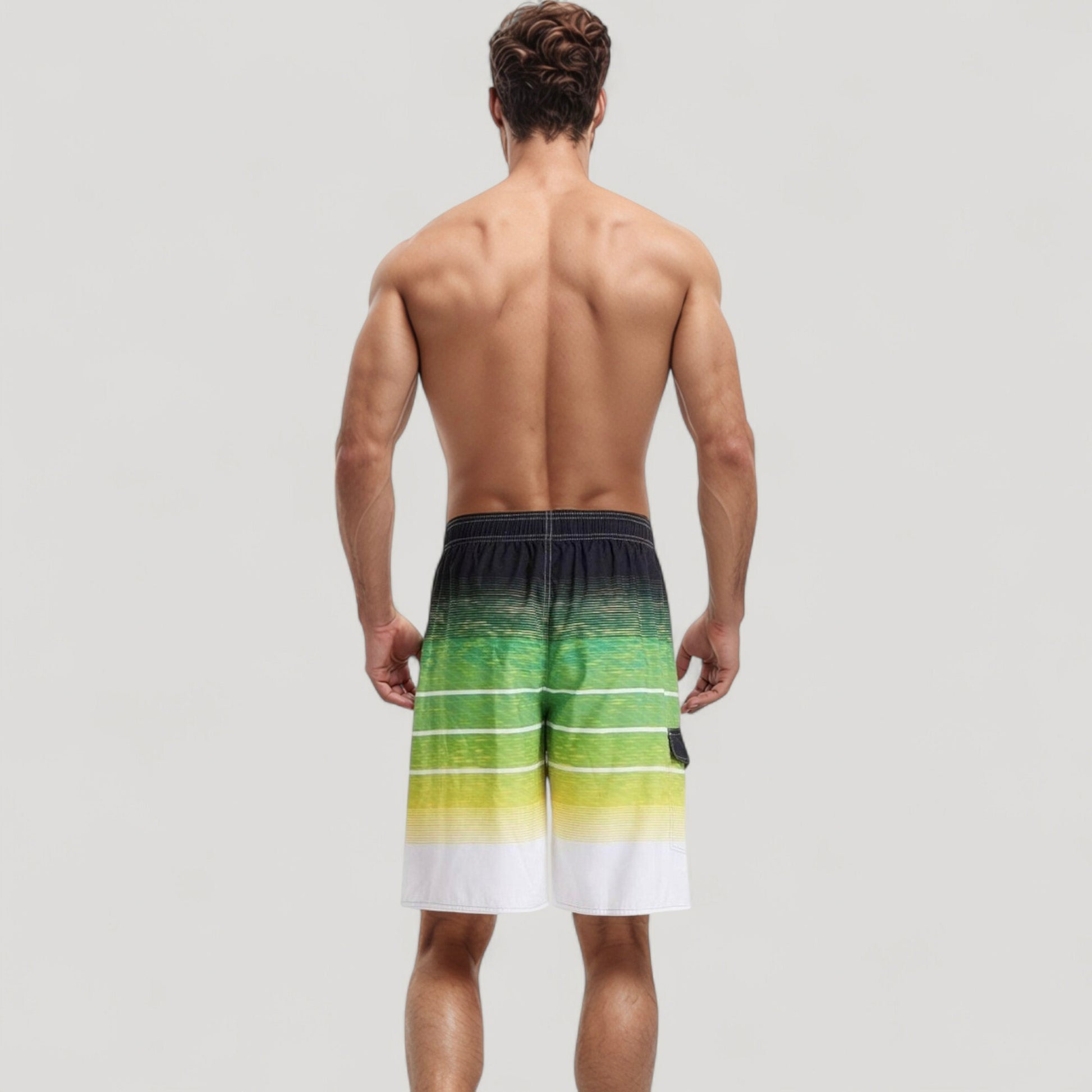Men's Ombre Stripe Swim Trunks with Drawstring Waistband and Quick-Dry Lightweight Fabric for Comfortable Wear
