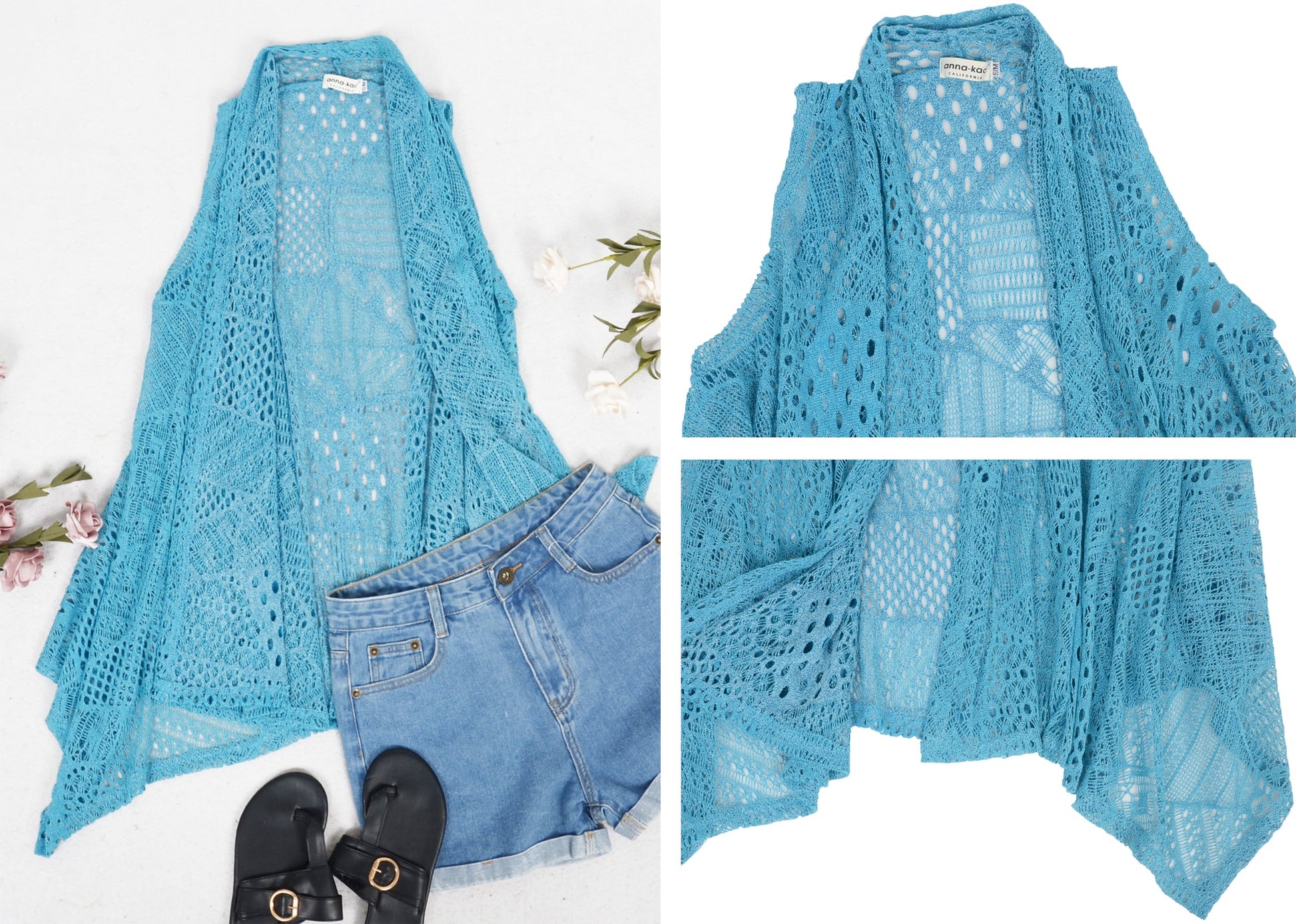 - STUNNING DETAILS - Open front, sleeveless, solid color, lightweight, draped asymmetric hem, crochet mesh pattern, simple boho style. This swimsuit cover up adds so much character to your outfit and elevates your look.