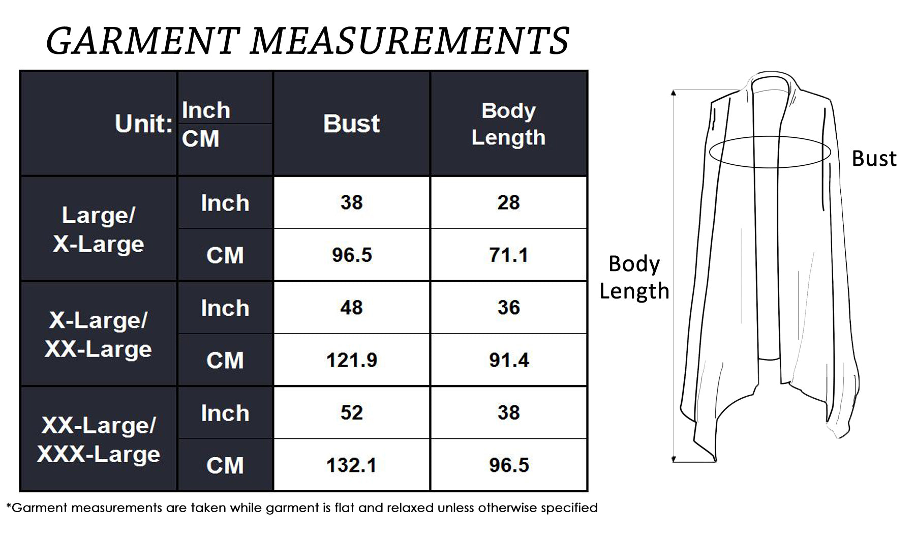 - PLUS SIZE AVAILABLE FROM LARGE/X-LARGE TO XX-LARGE/XXX-LARGE. Please refer to the garment measurement chart in the photos for help when choosing a size. If you have any questions regarding size and fit, please do not hesitate to contact us and our style experts can help guide you.