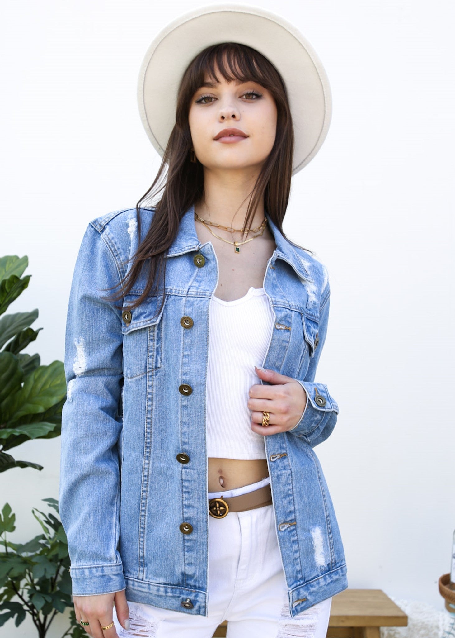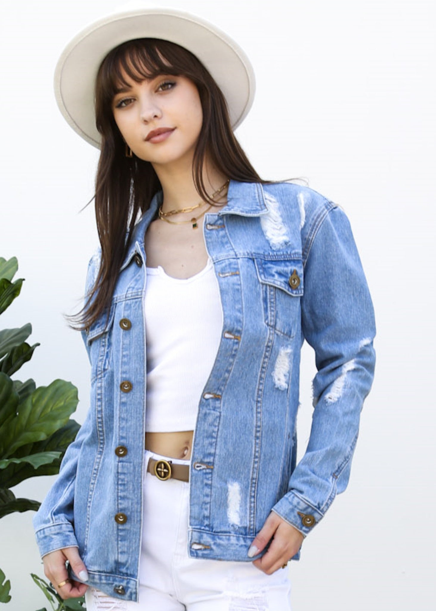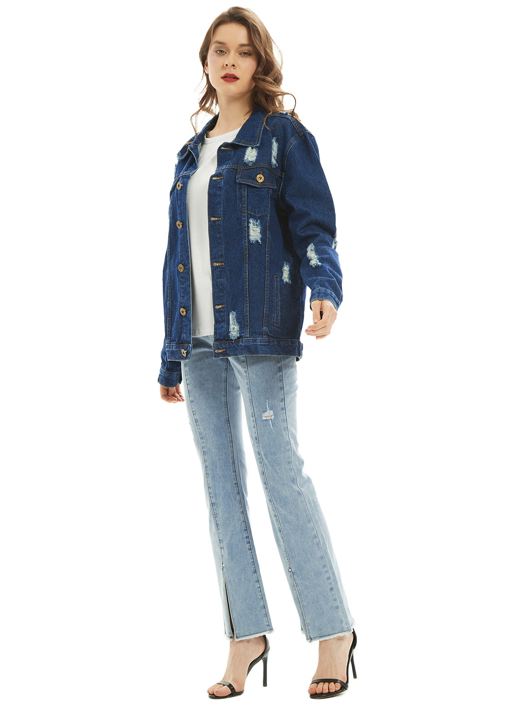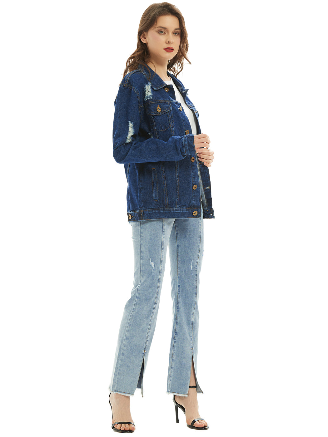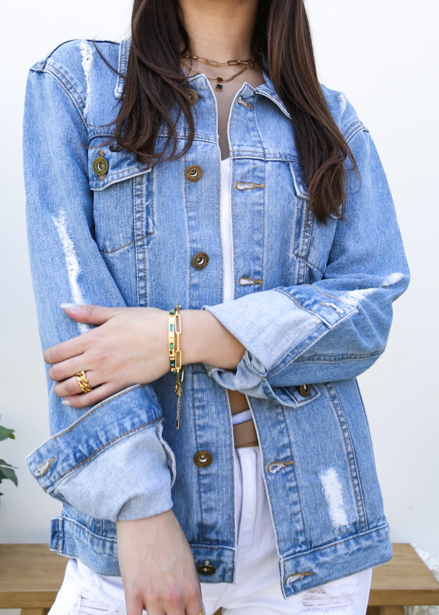 Classic loose fit ripped jeans coats are always staples in every closet! This light wash medium blue faded jean jackets are ideal for all seasons.