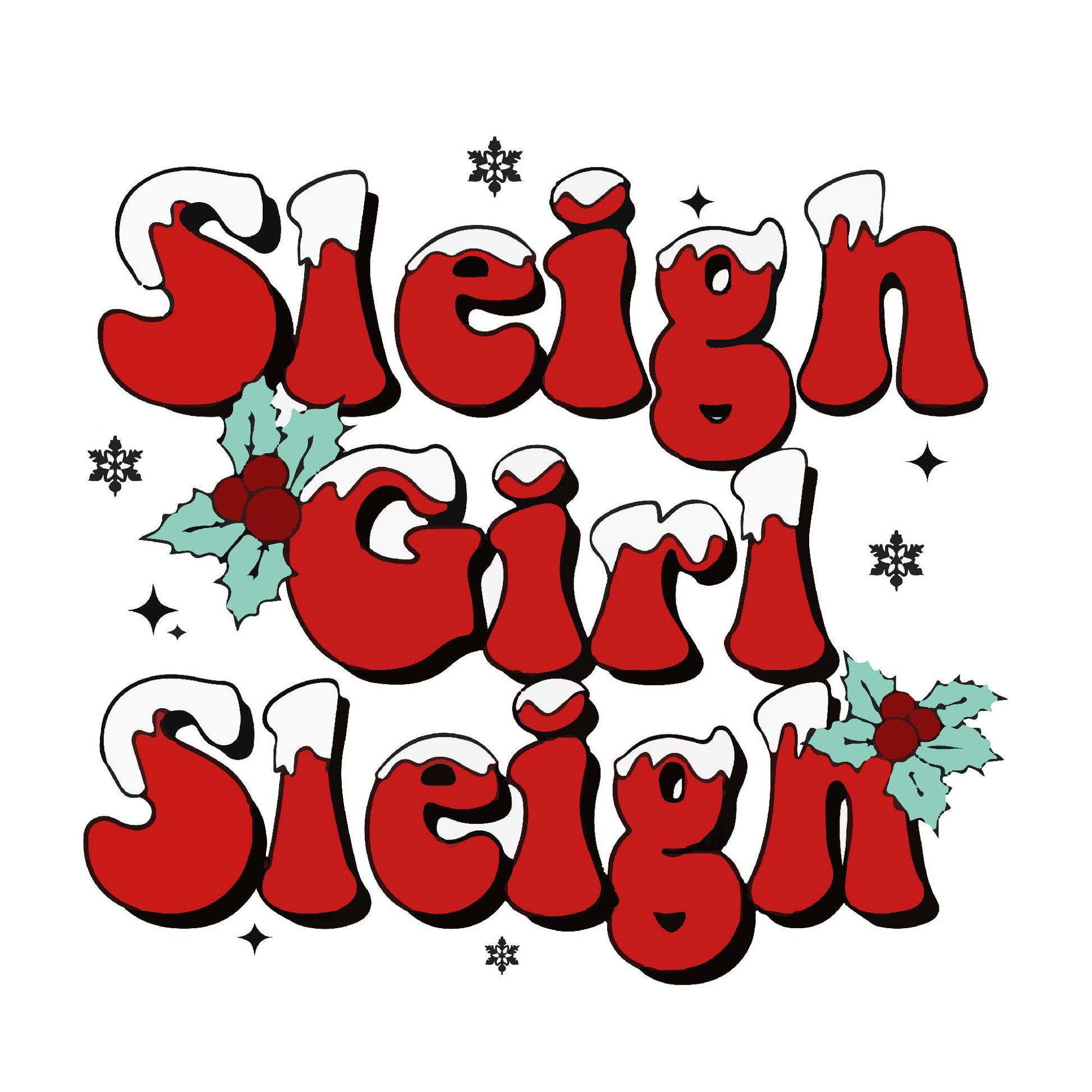 Festive Playfulness: The lively red "Sleigh Girl Sleigh" text exudes a playful and spirited vibe, perfect for those who love to spread joy during the holiday season.