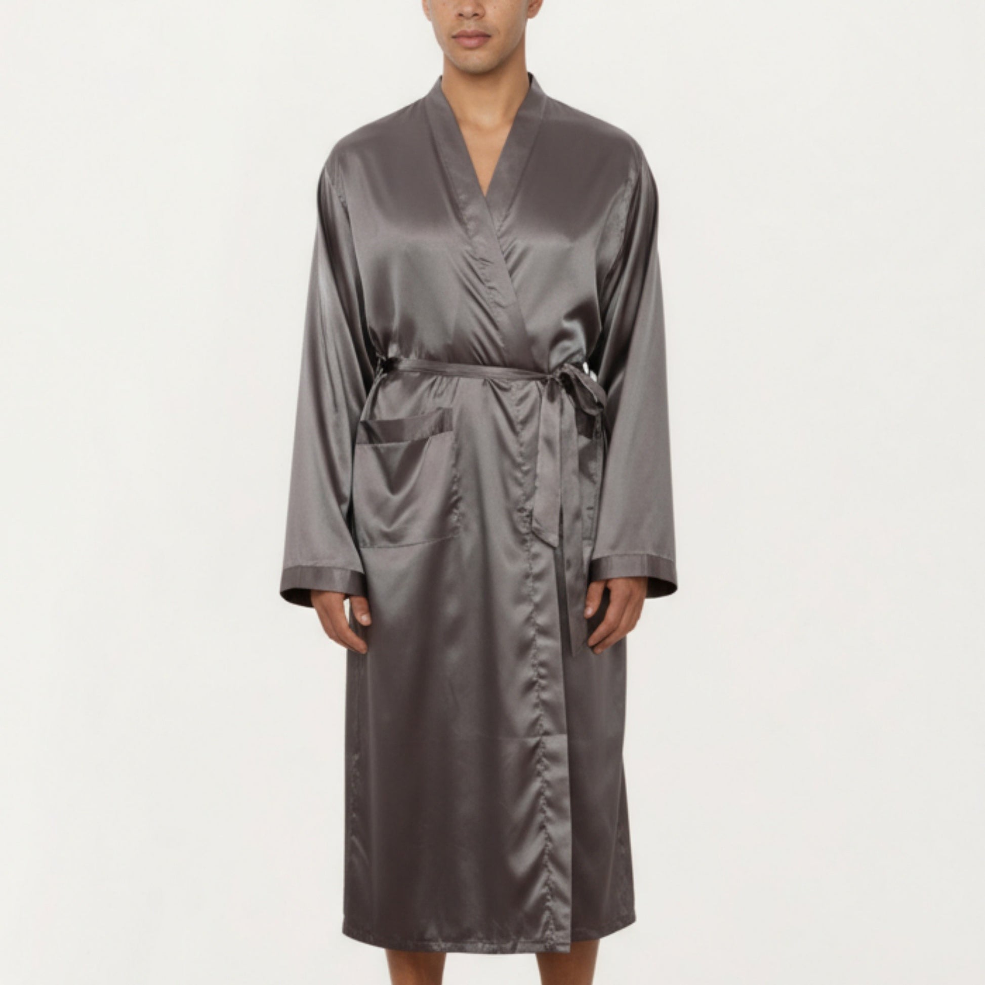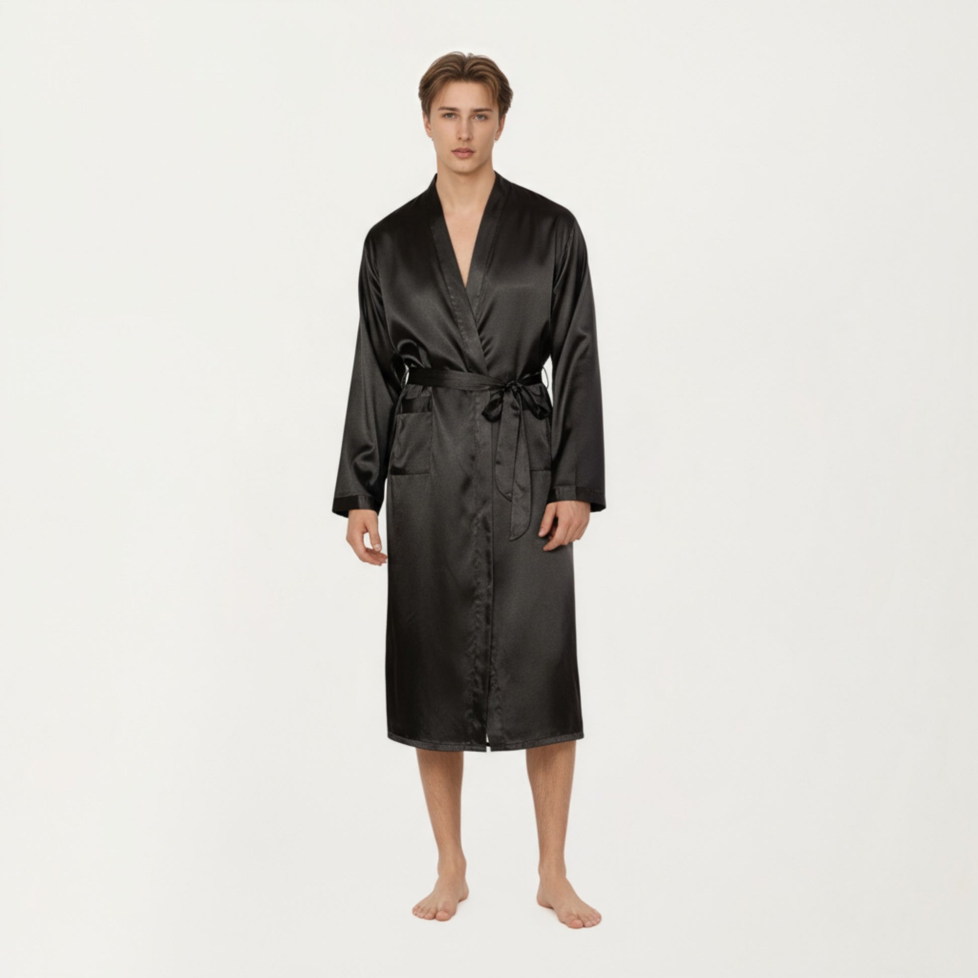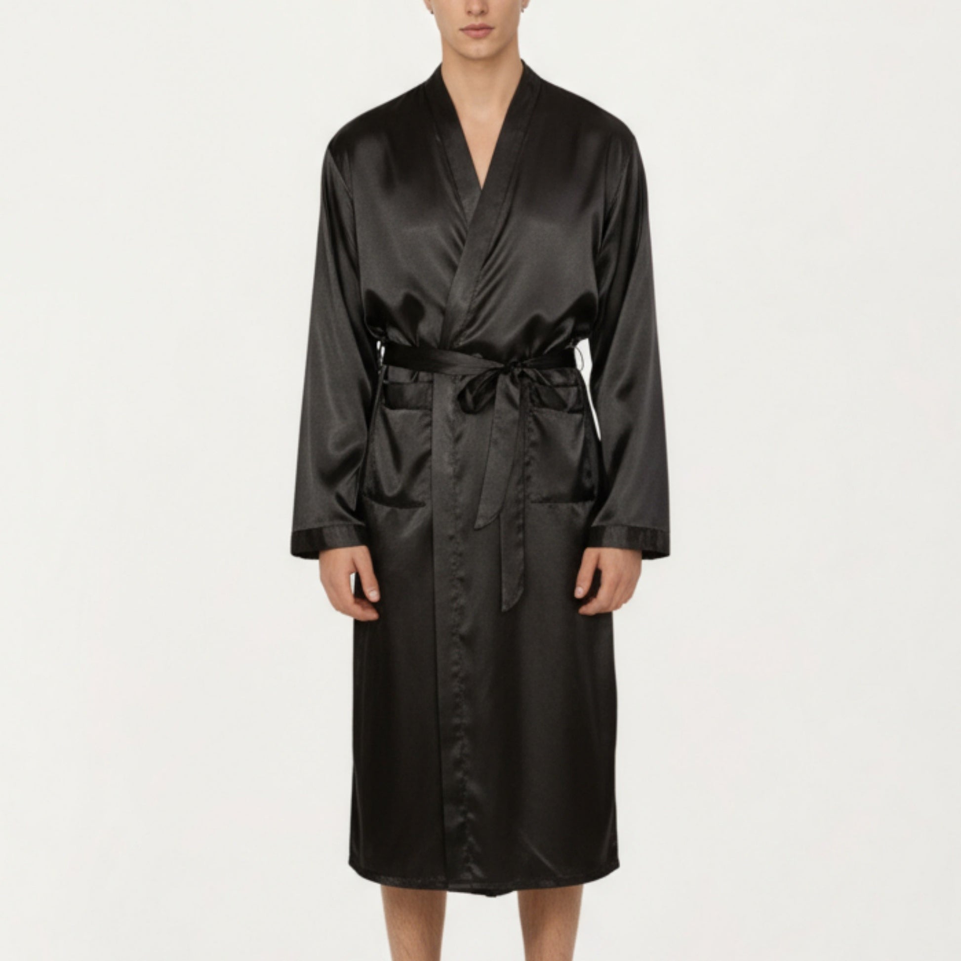 Men's Satin Robe with Waist Tie Belt and Front Pockets