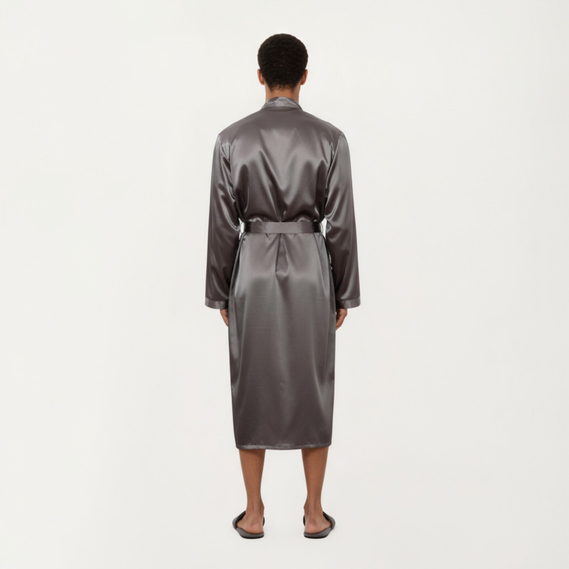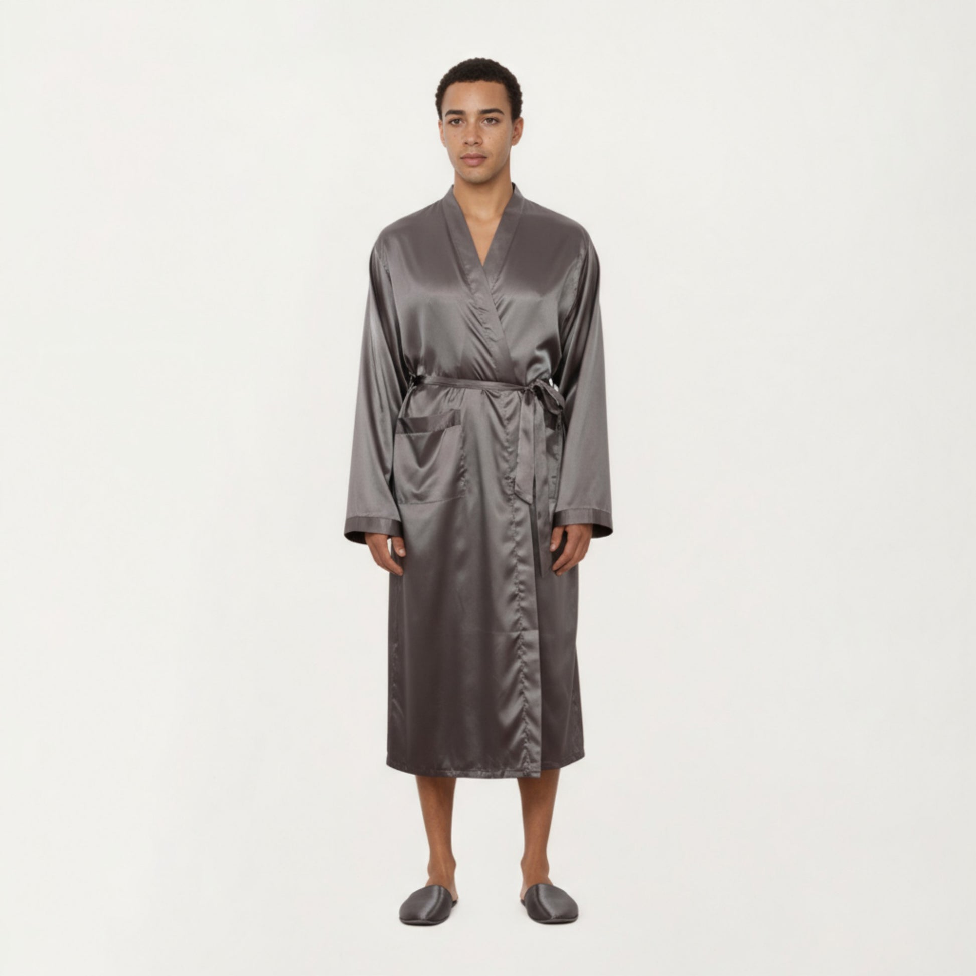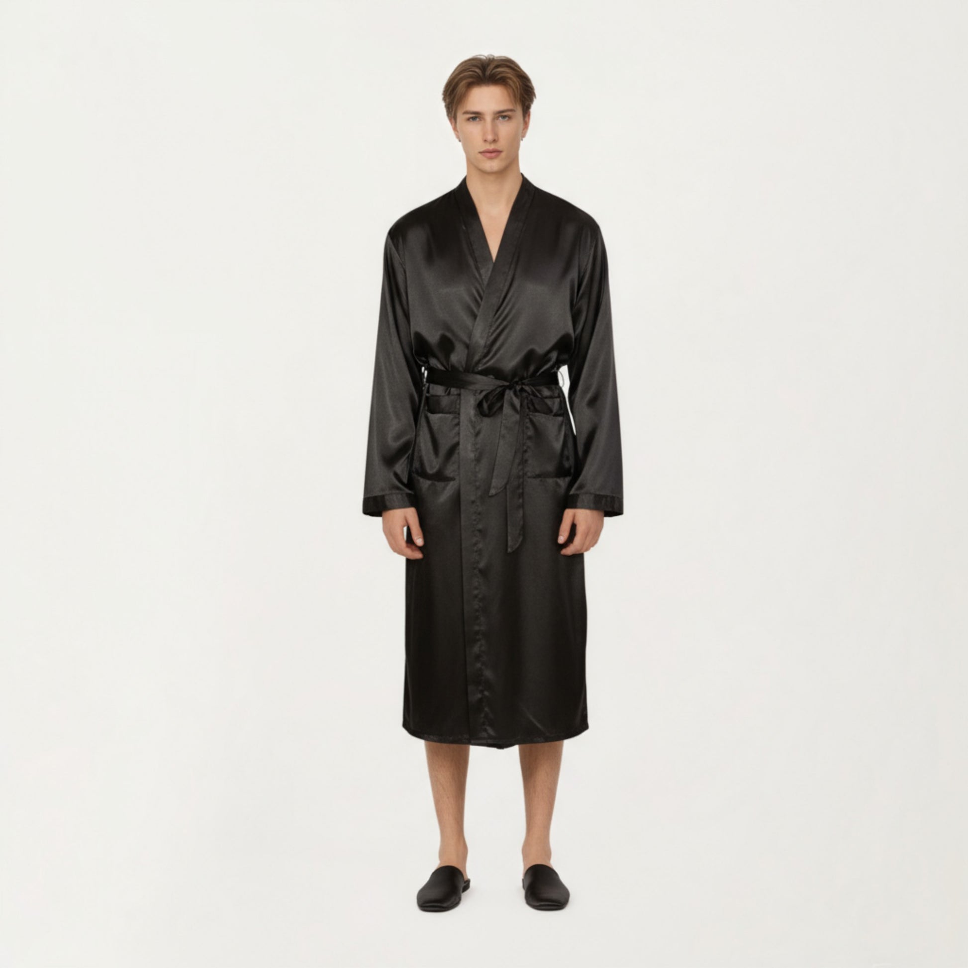 Men's Satin Robe with Waist Tie Belt and Front Pockets