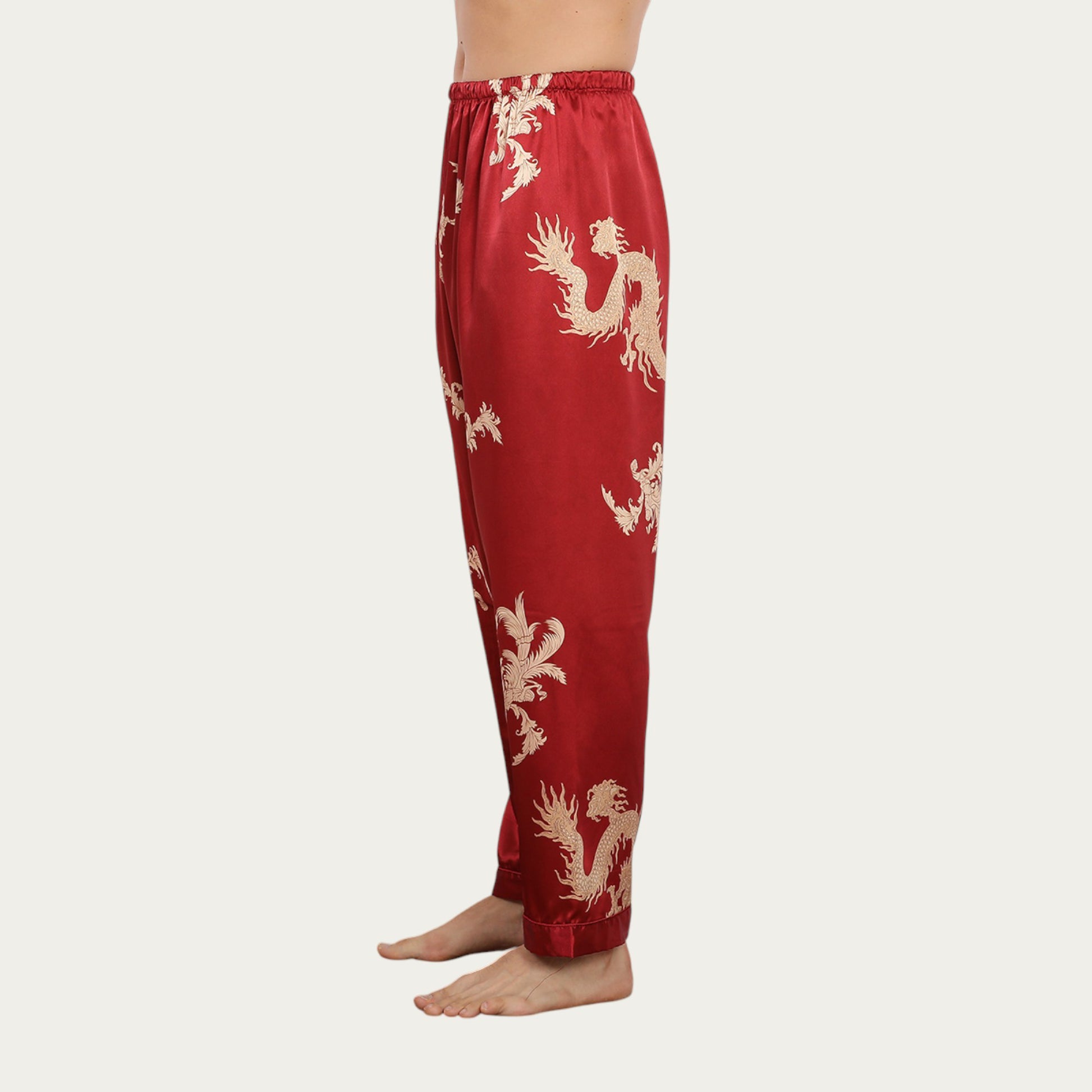 Men's Satin Lounge Pants with Baroque Print and Elastic Waistband
