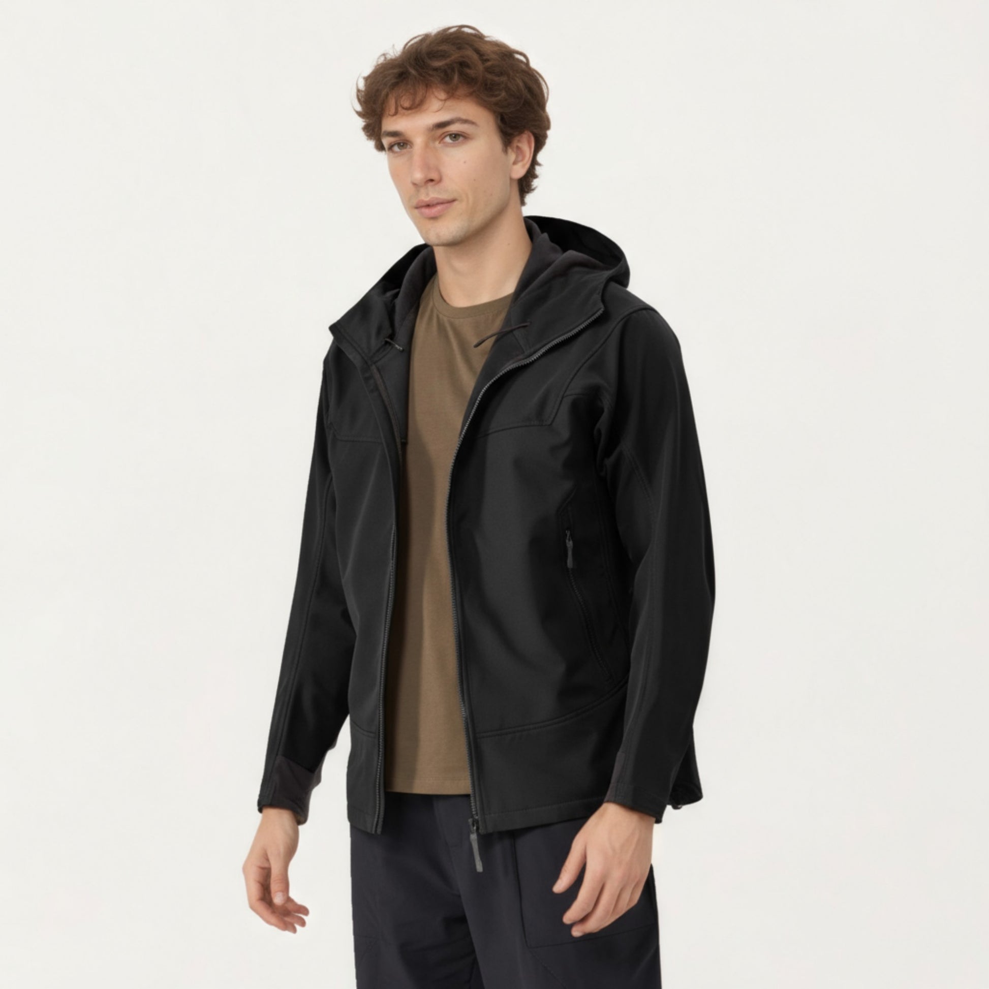 Men's Full Zip Hooded Jacket with Adjustable Drawstrings and Front Zip Pockets