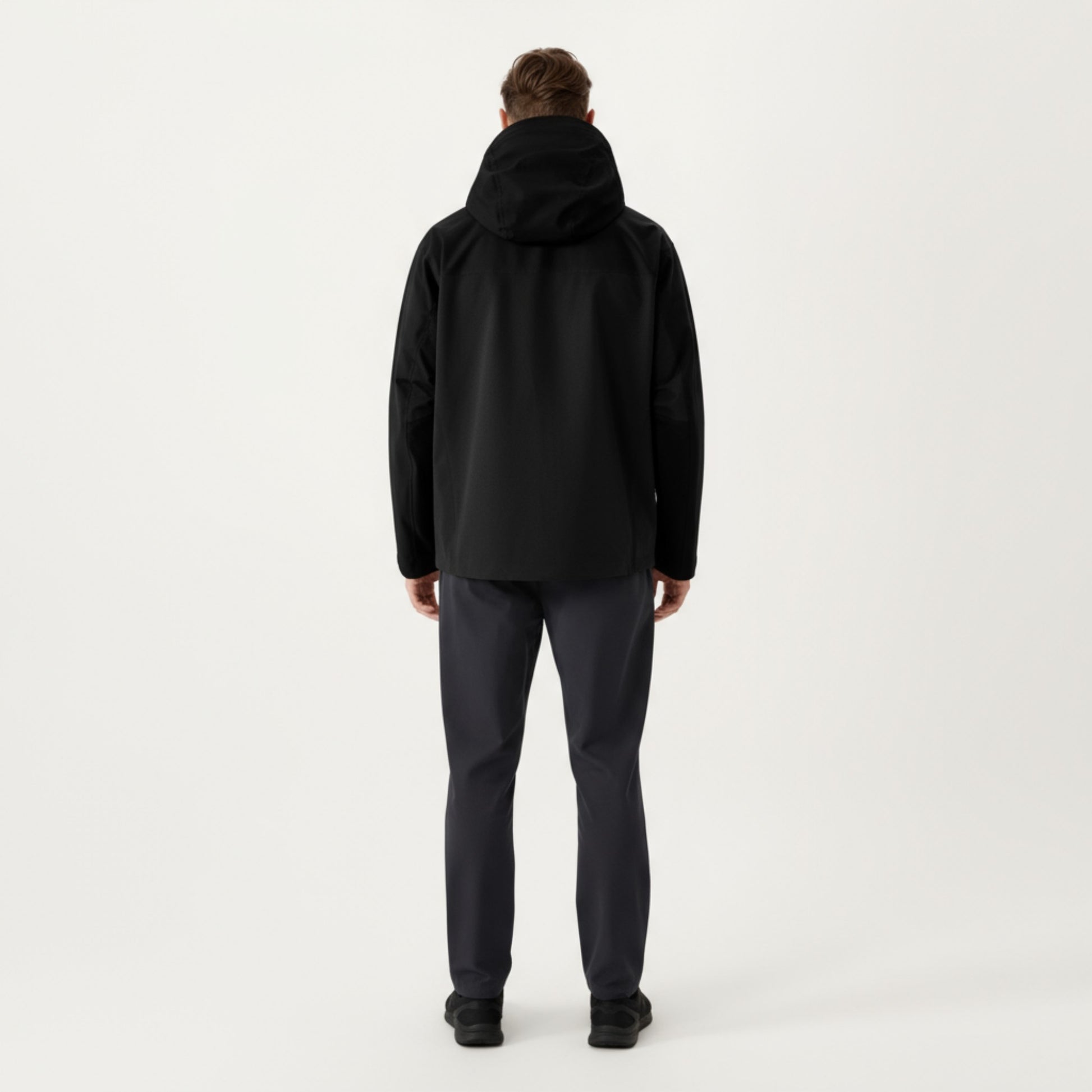 Men's Waterproof Hooded Jacket with Zipper Pockets and Adjustable Drawstrings