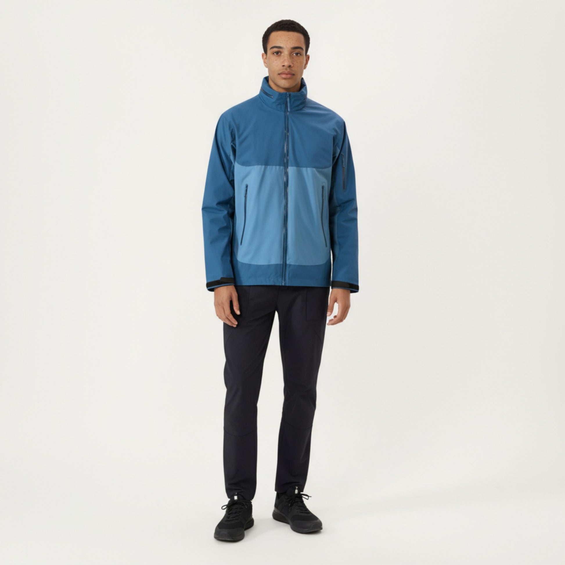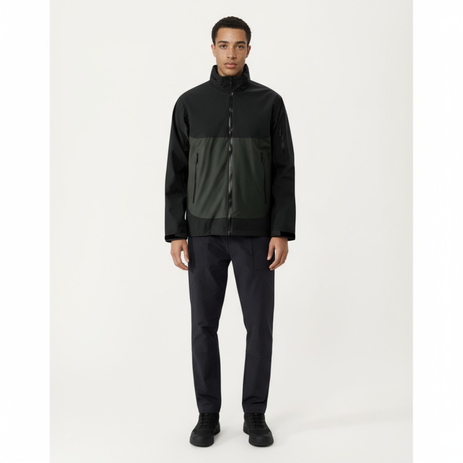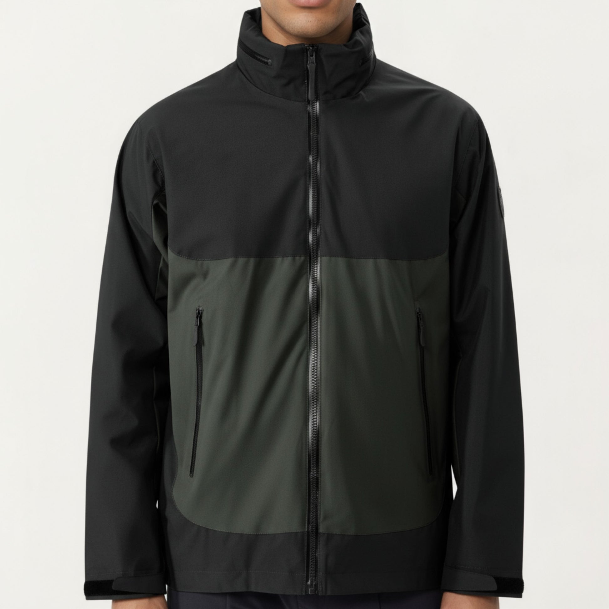 Men's Lightweight Zip-Up Windbreaker Jacket with High Collar and Zipper Pockets