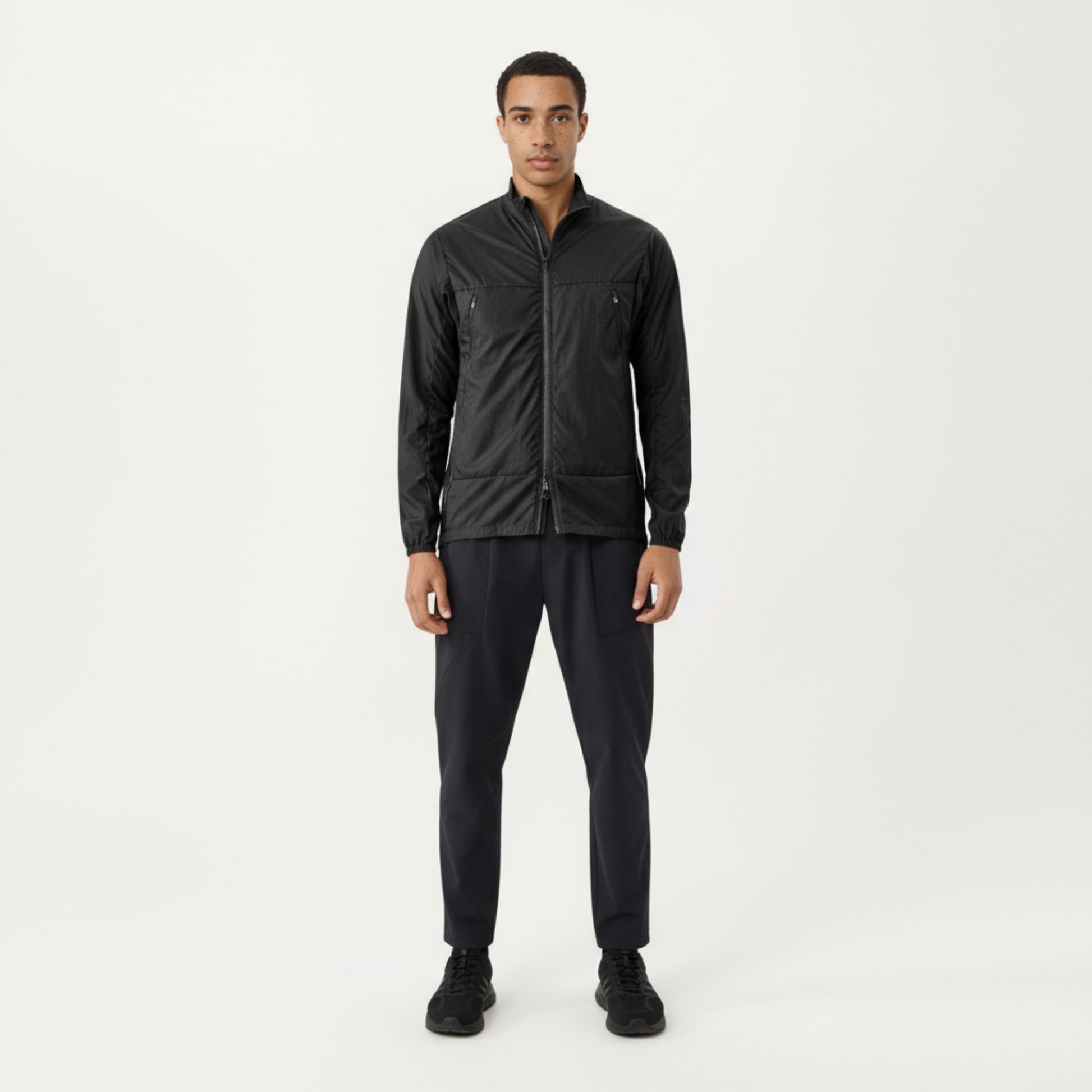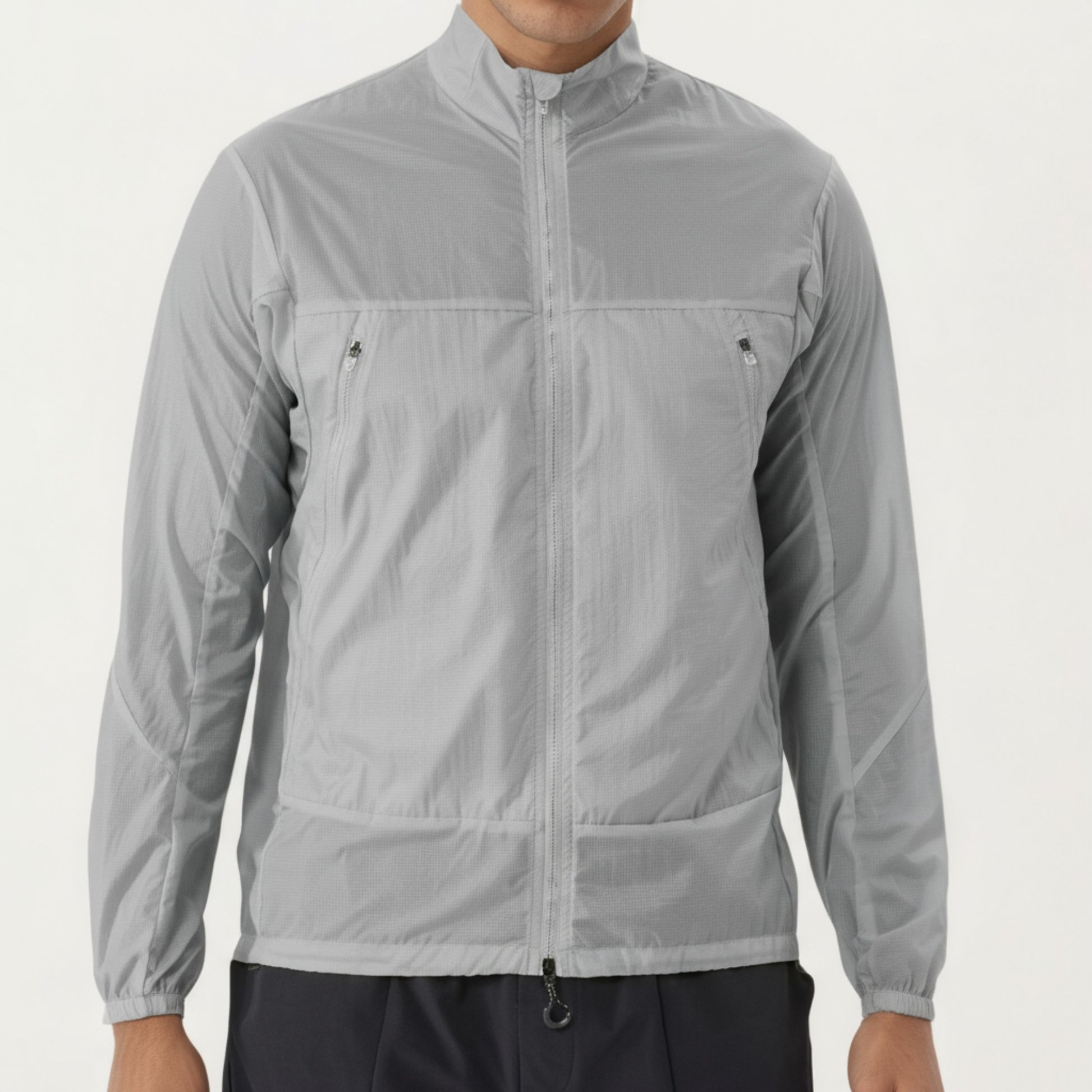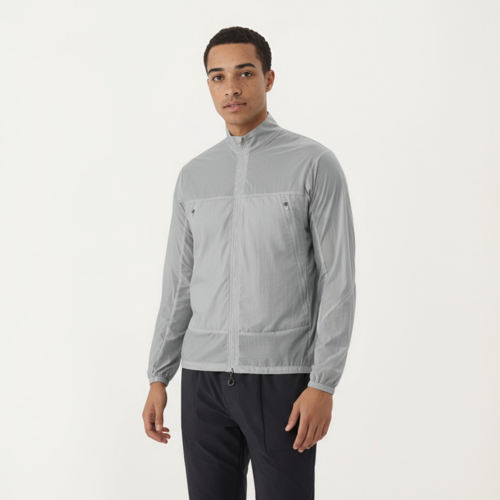 Men's Lightweight Zip-Up Windbreaker Jacket with High Collar and Elastic Cuffs
