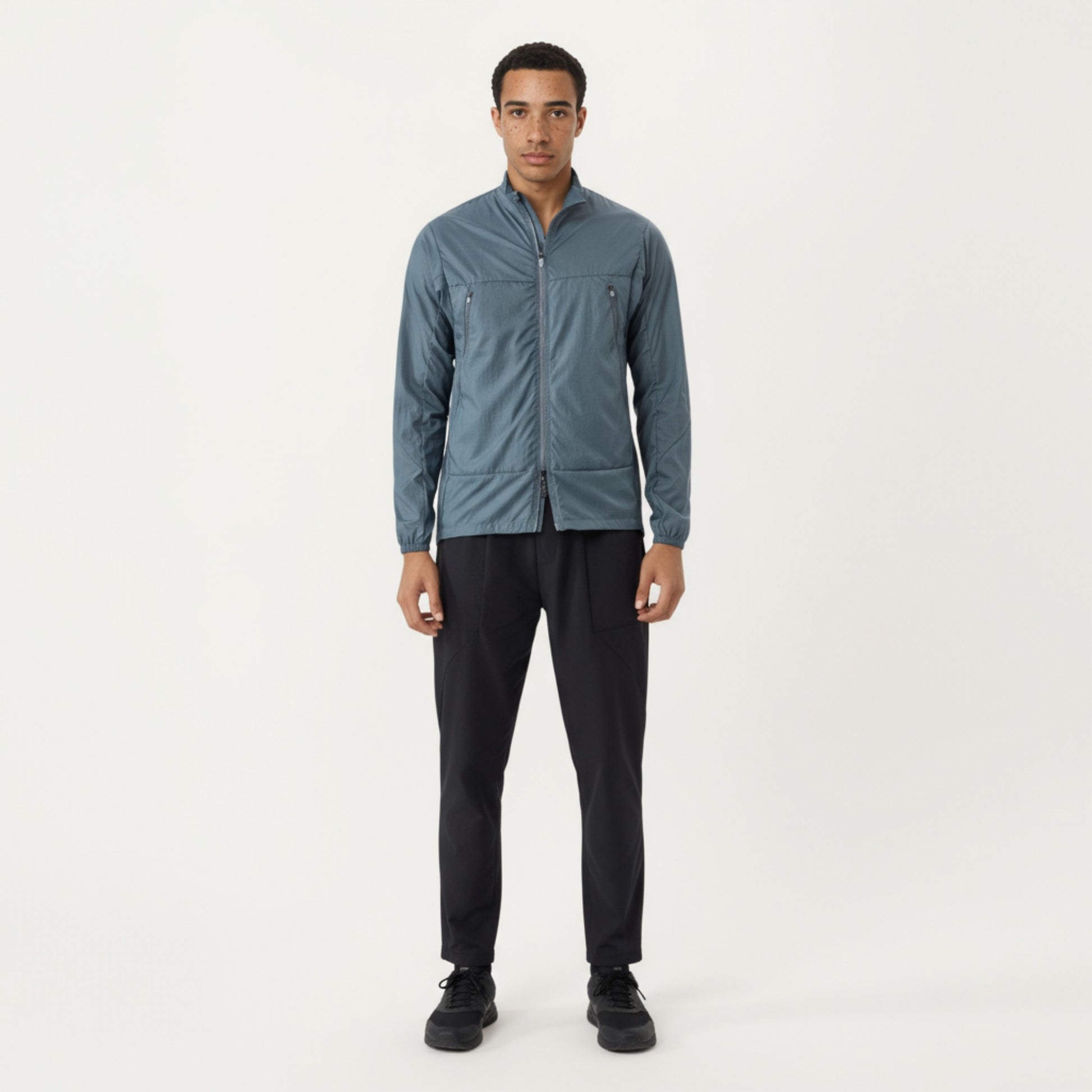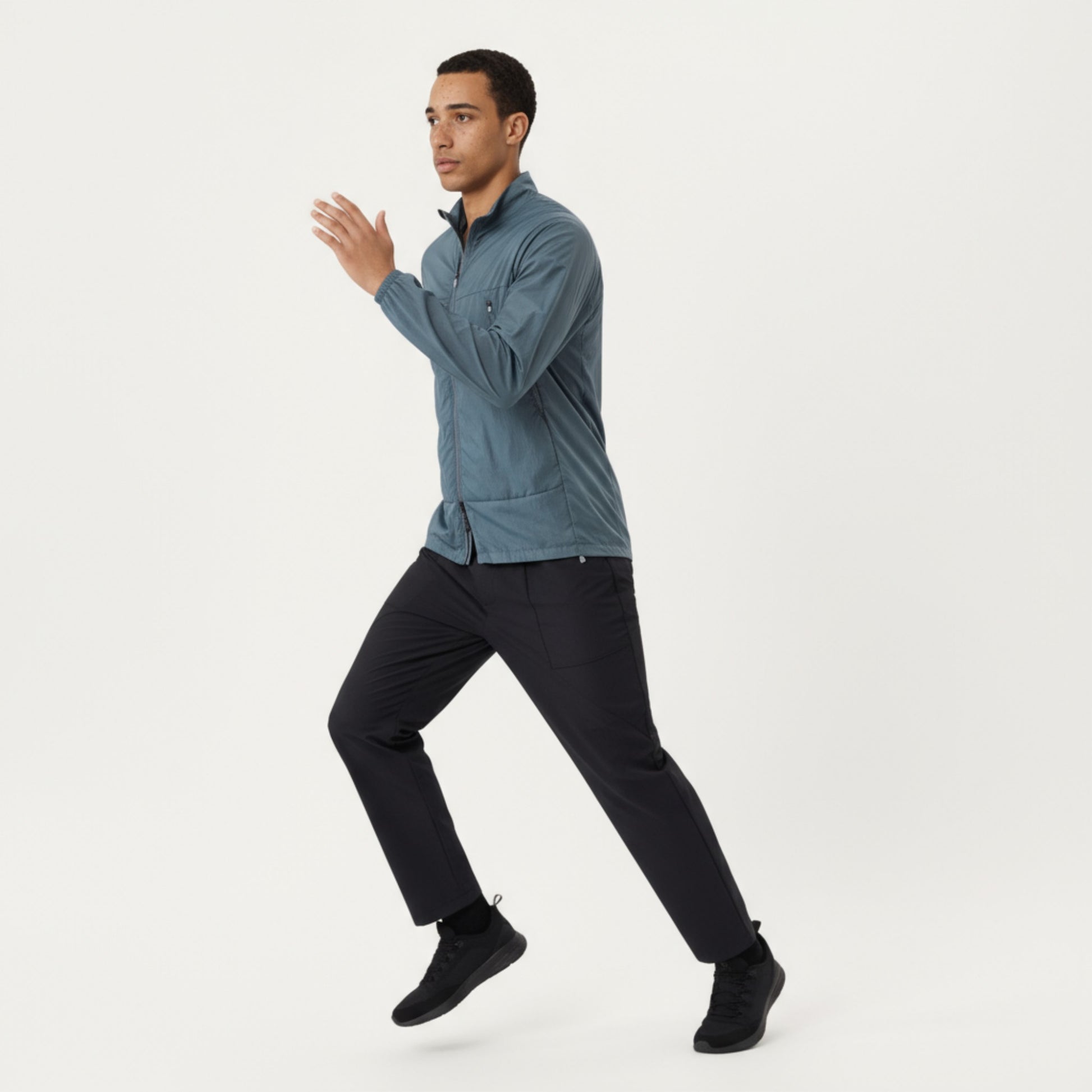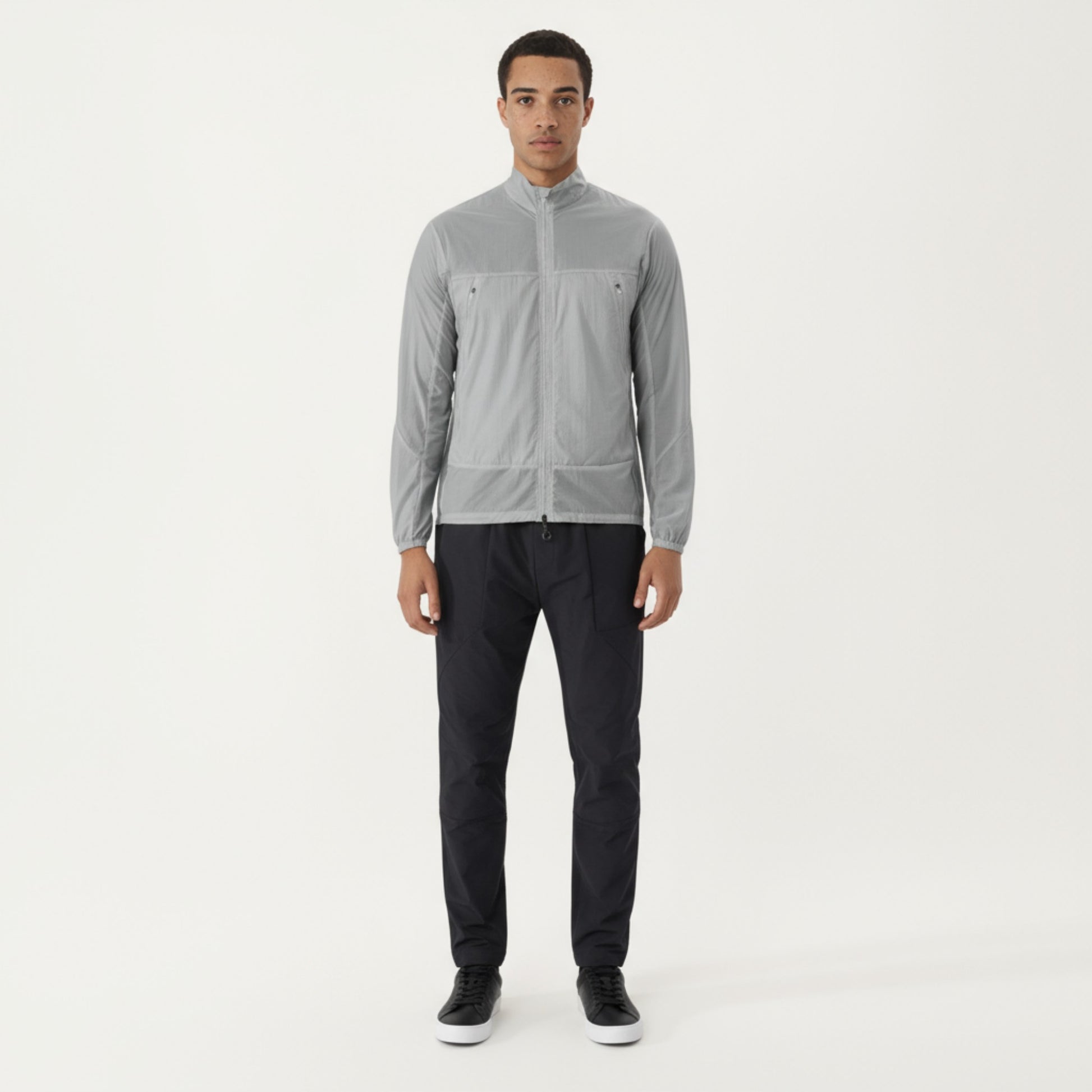 Men's Lightweight Zip-Up Windbreaker Jacket with High Collar and Elastic Cuffs