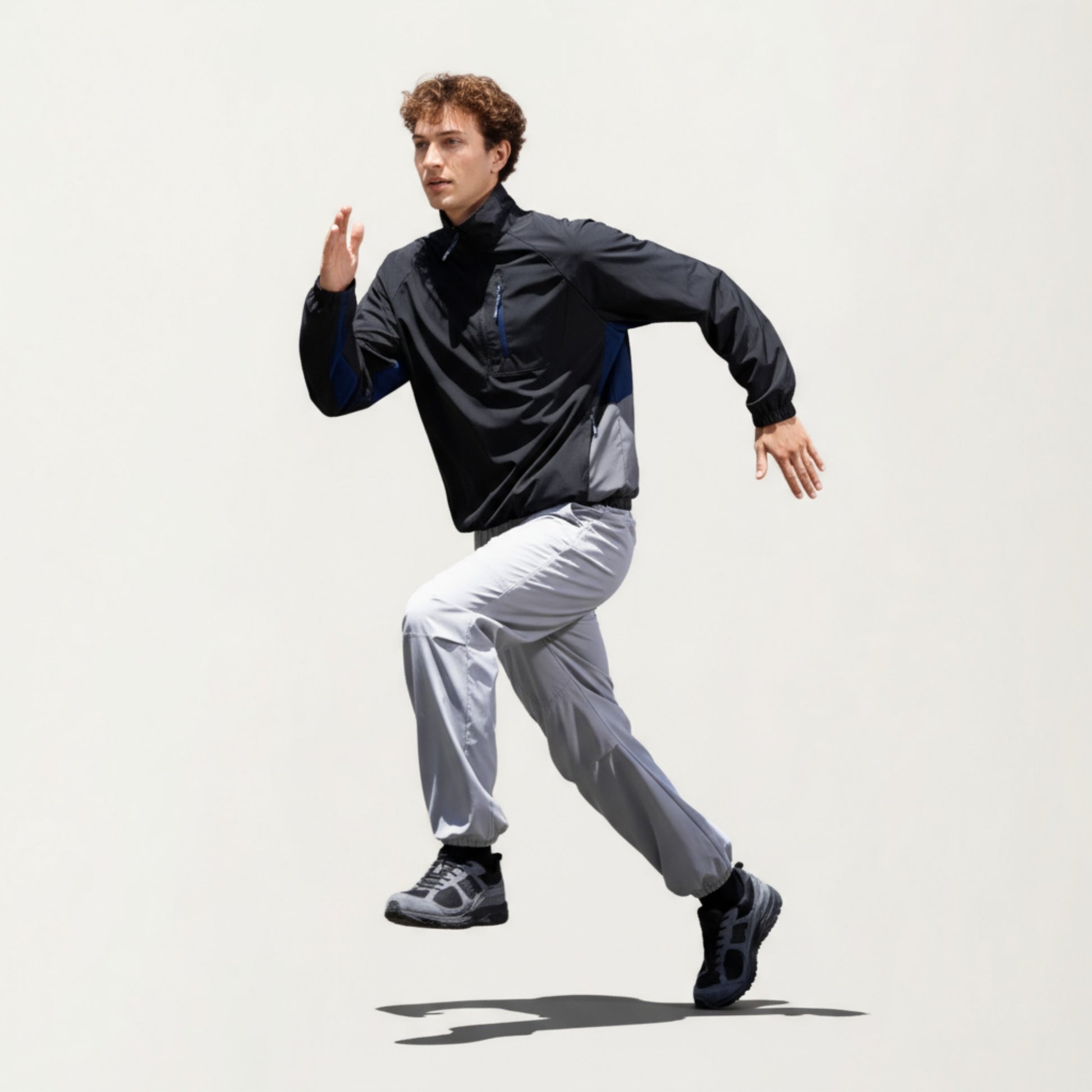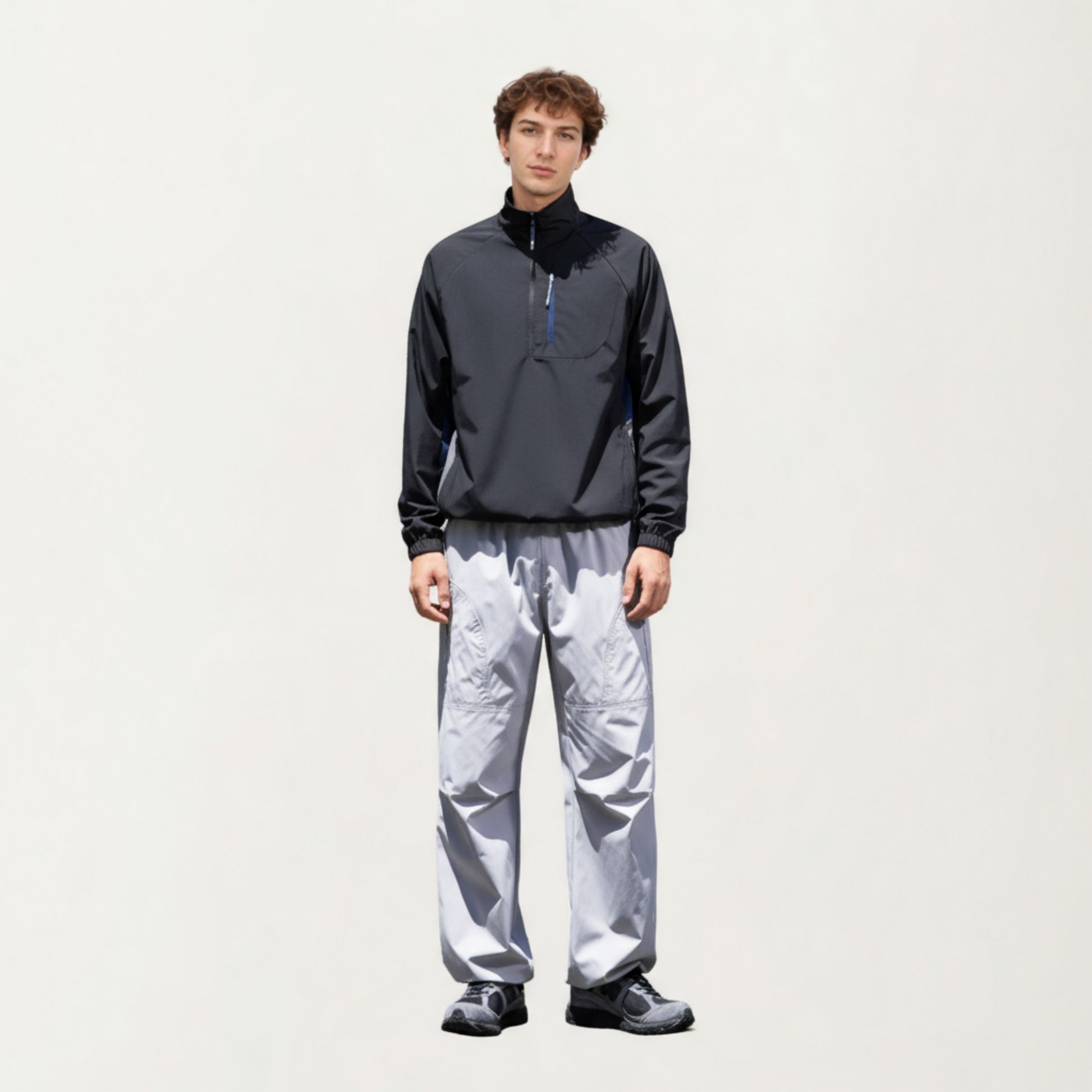 Men's Long Sleeve Quarter Zip Windbreaker Pullover with Elastic Cuffs and Zipper Chest Pocket