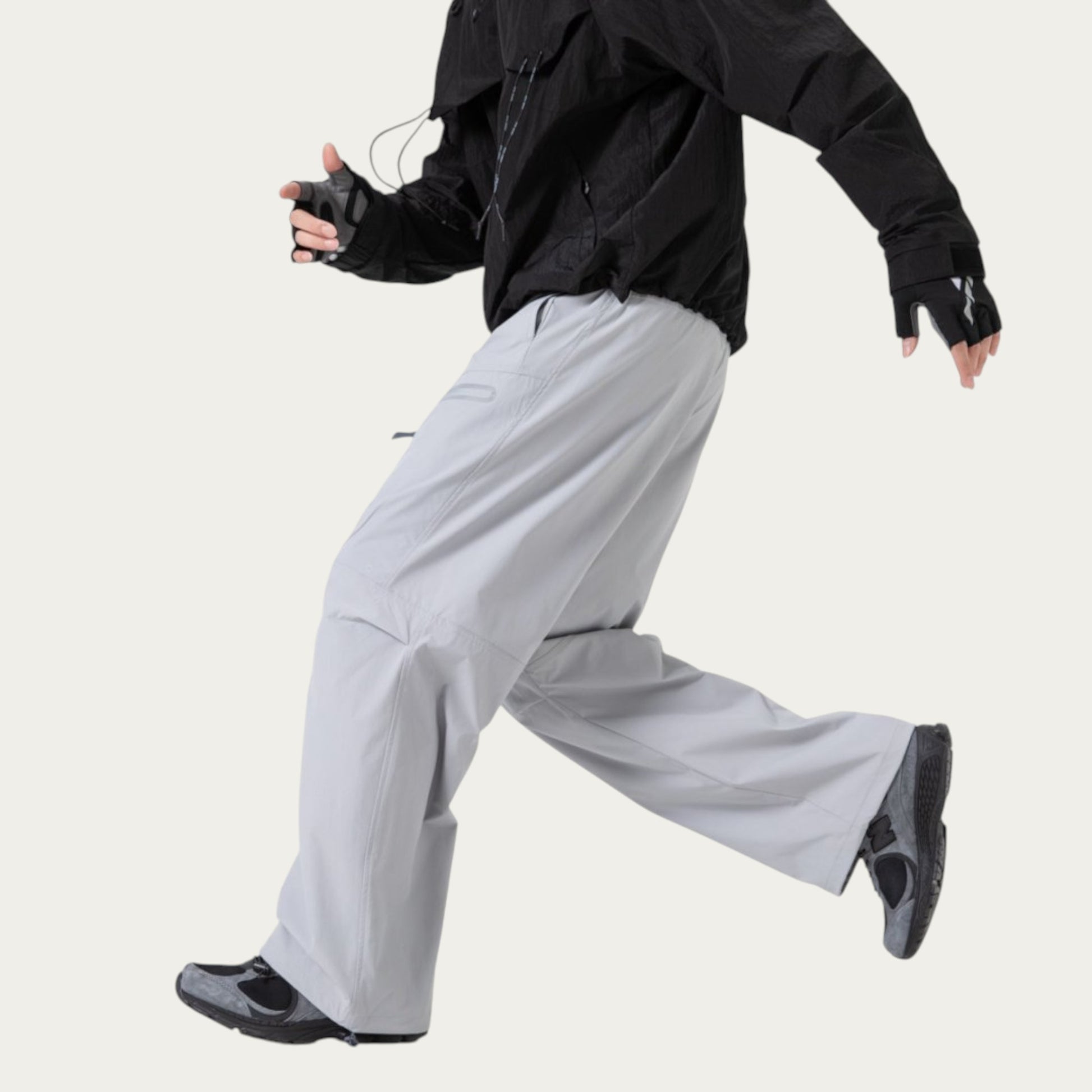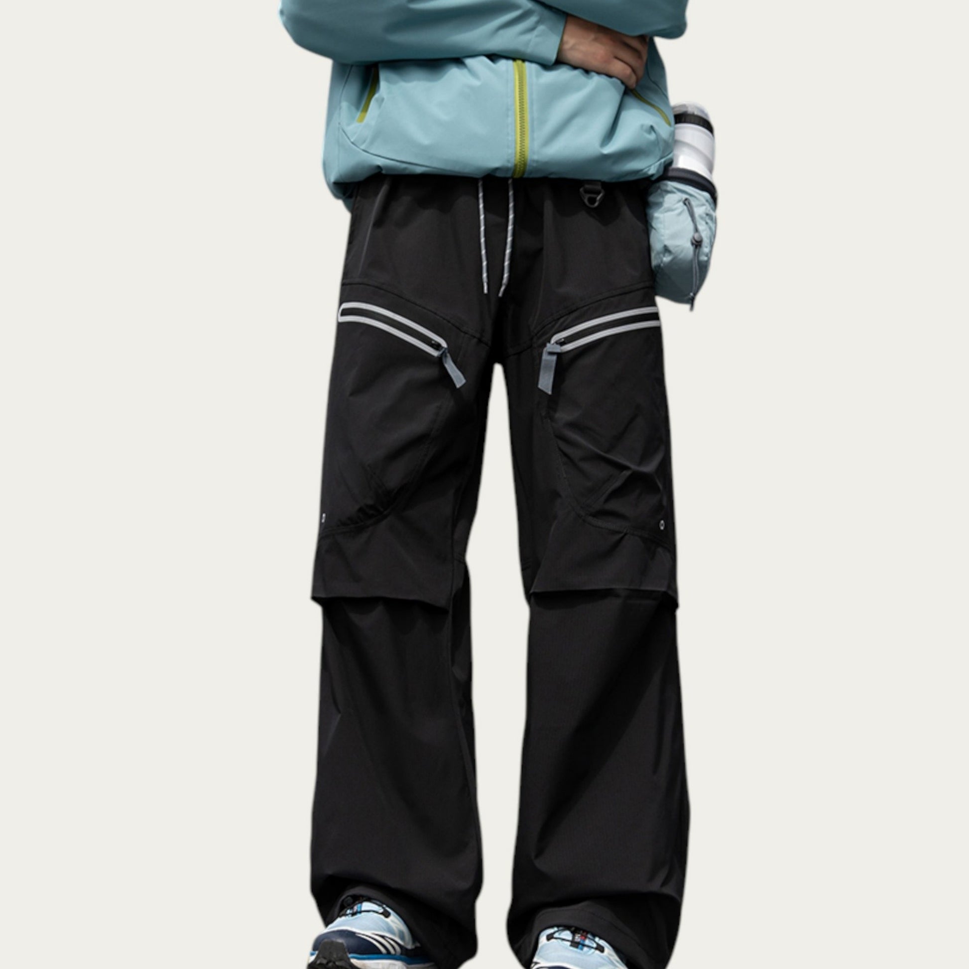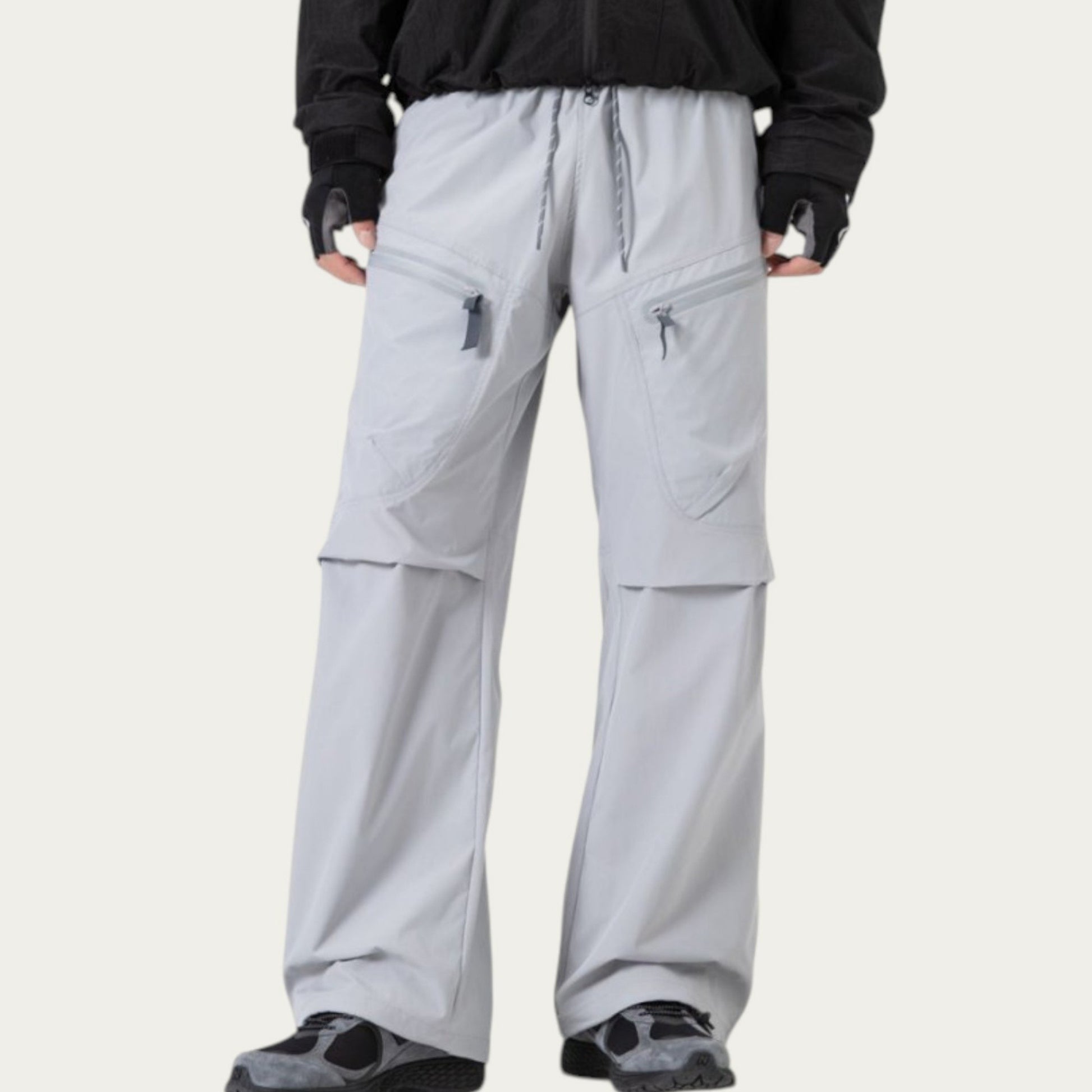 Men's Wide Leg Cargo Pants with Zippered Pockets and Adjustable Drawstring Waist