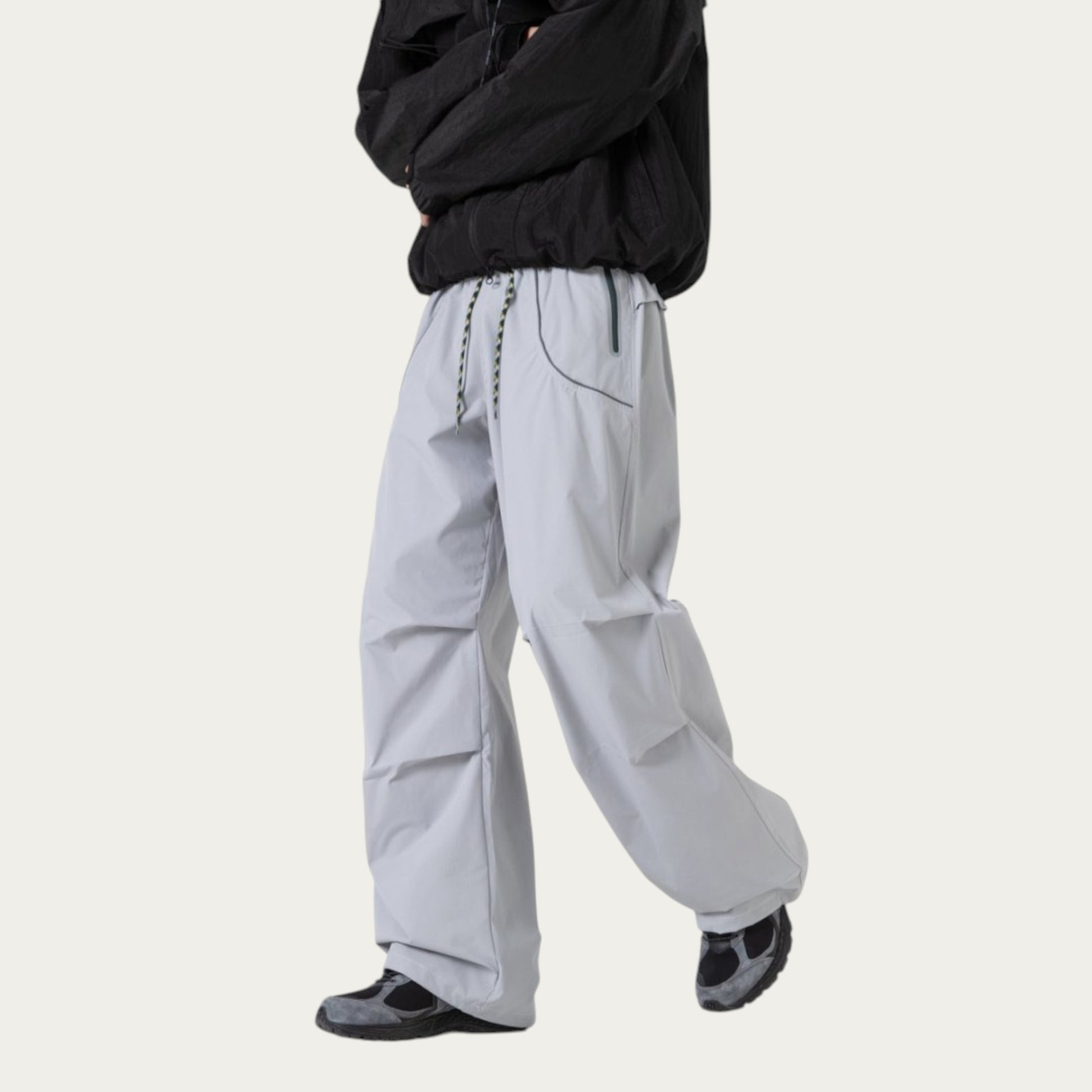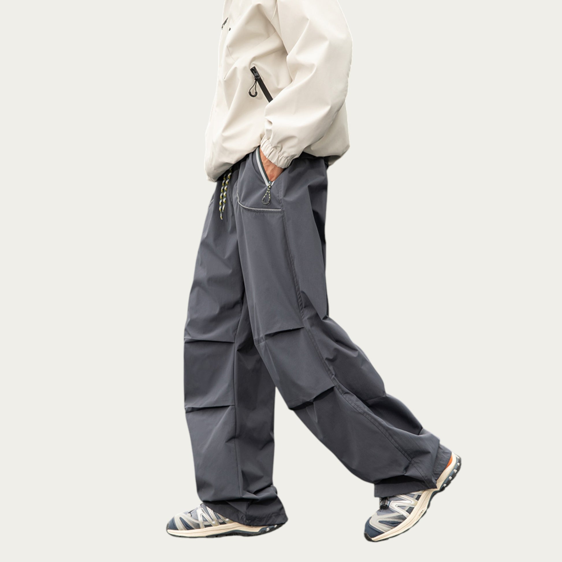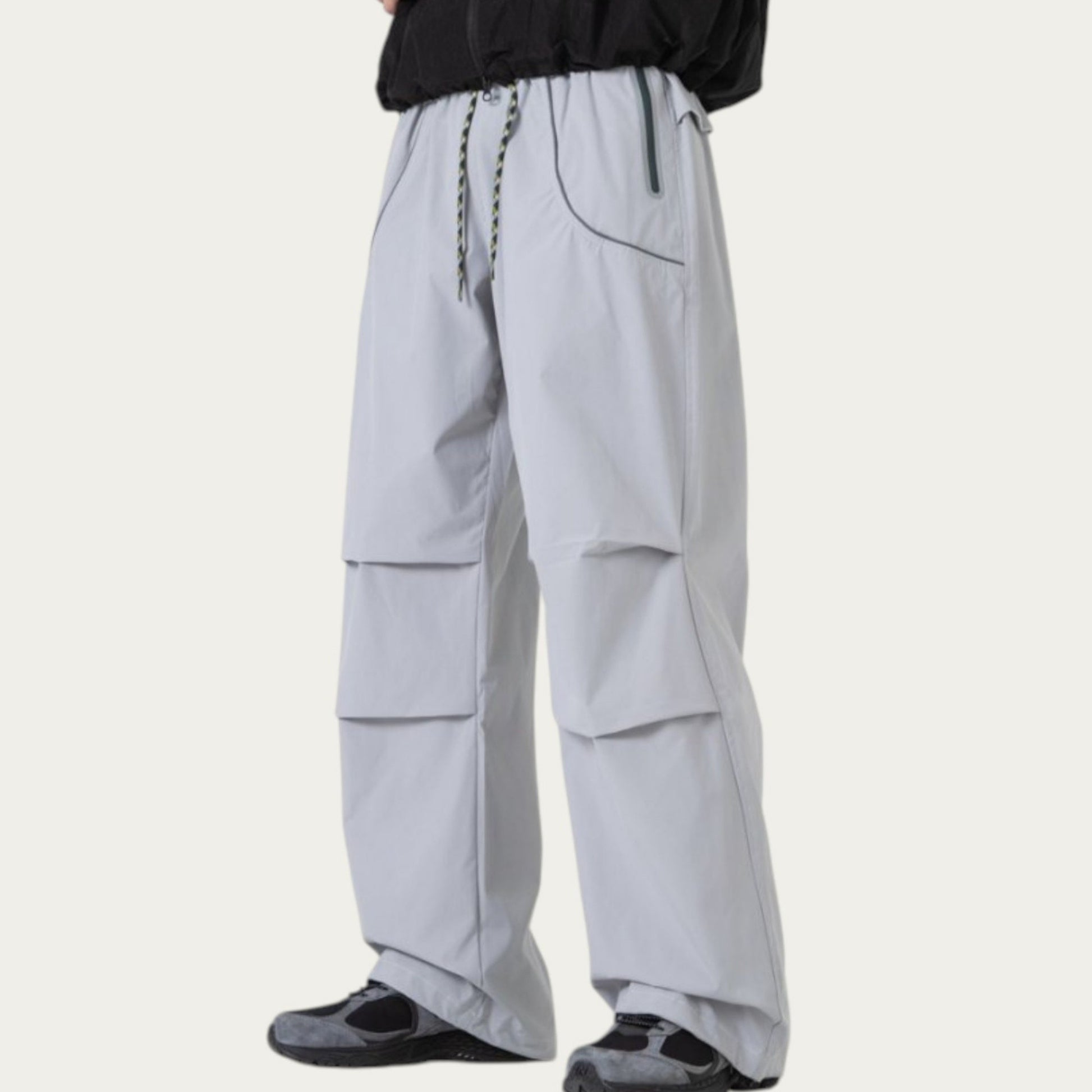 Men's Wide Leg Cargo Pants with Oversized Pockets and Adjustable Drawstring Waist