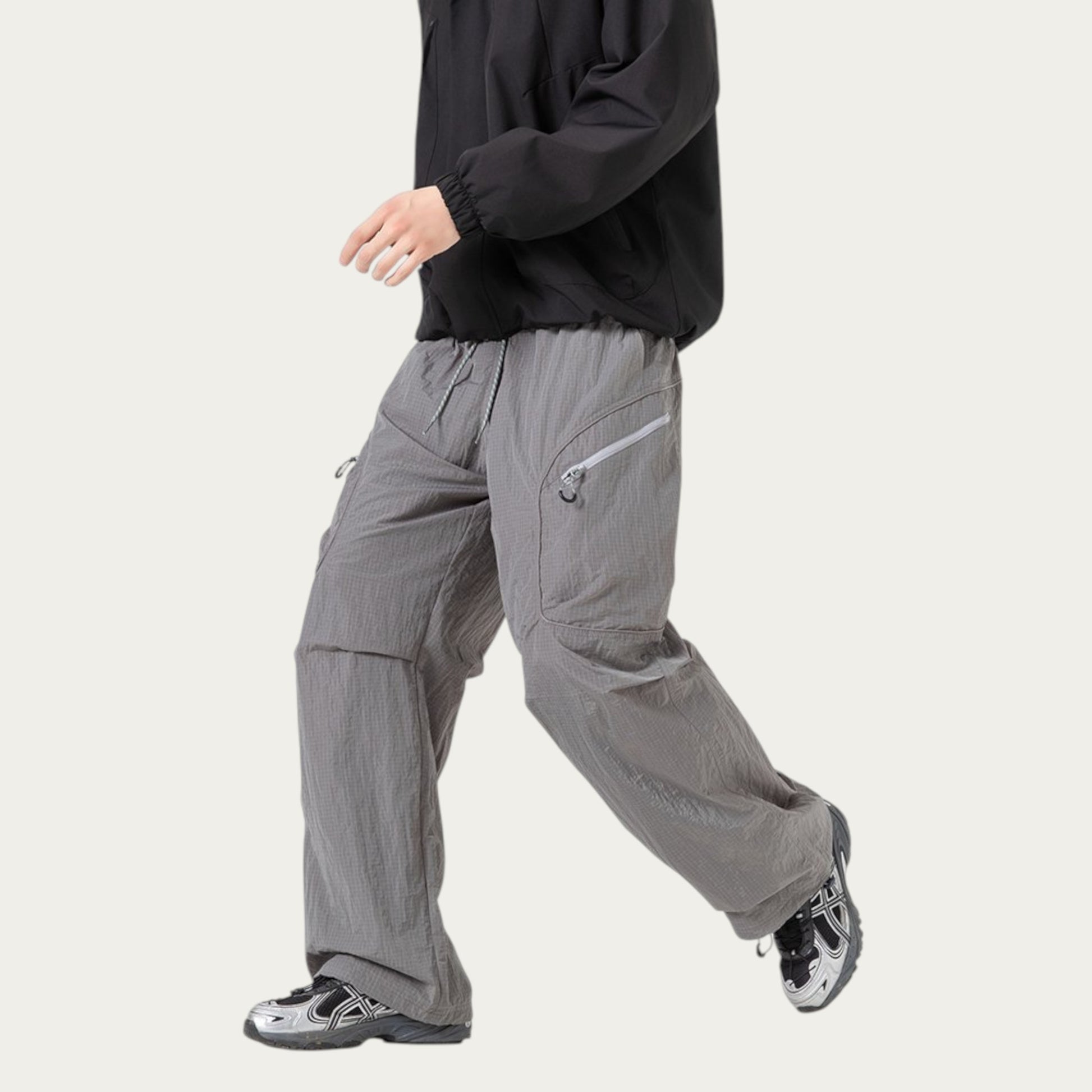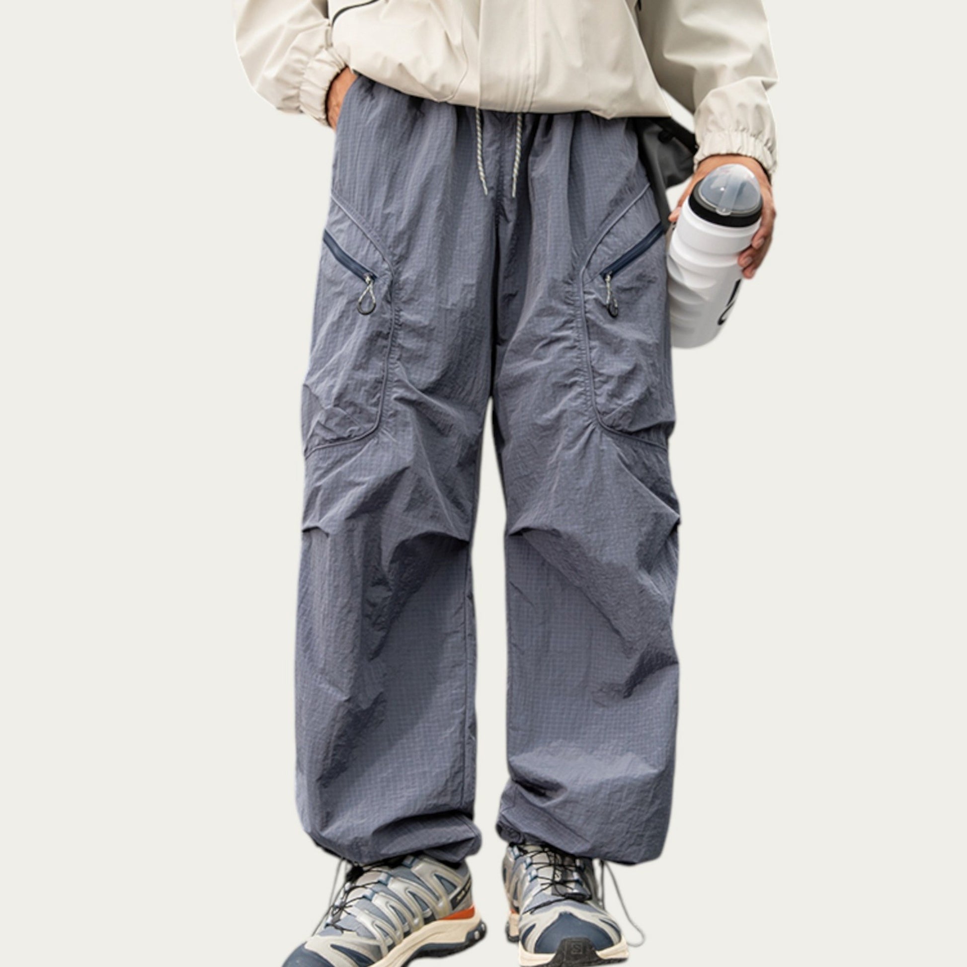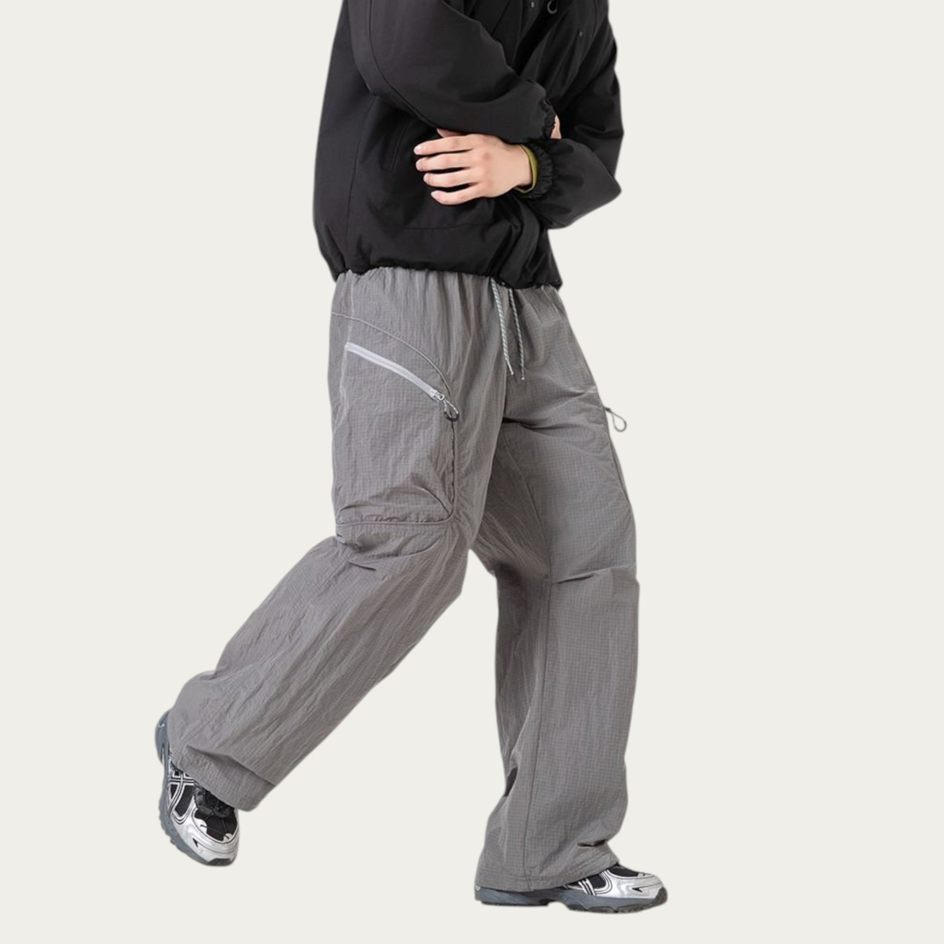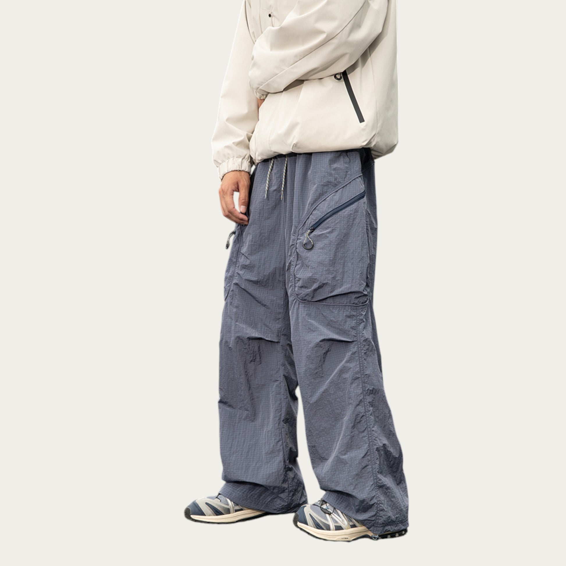 Men's Textured Wide Leg Cargo Pants with Zipper Pockets and Adjustable Drawstring Waist
