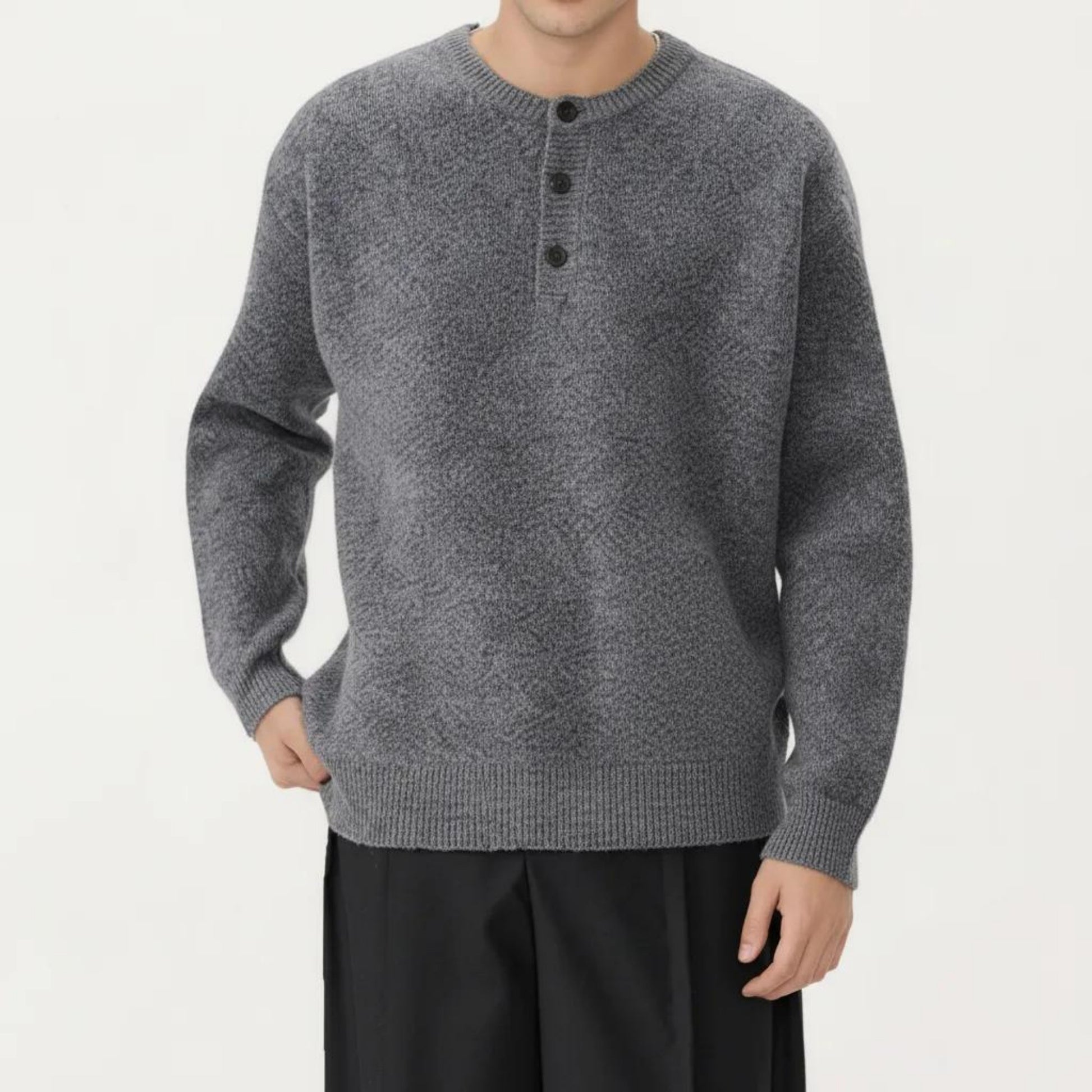 Men's Long Sleeve Knit Henley Sweater with Ribbed Trim