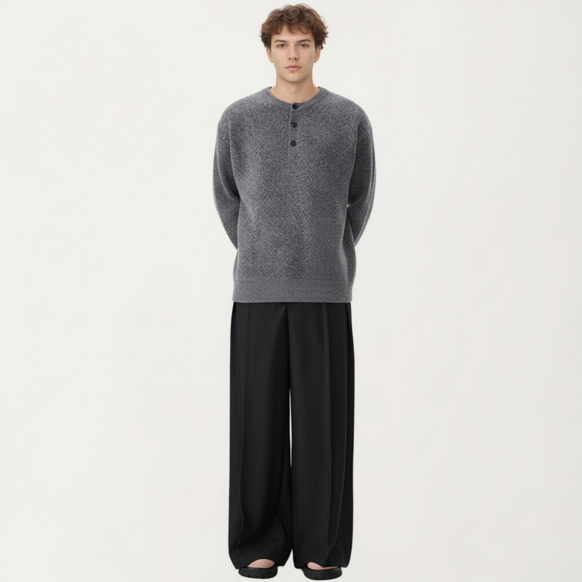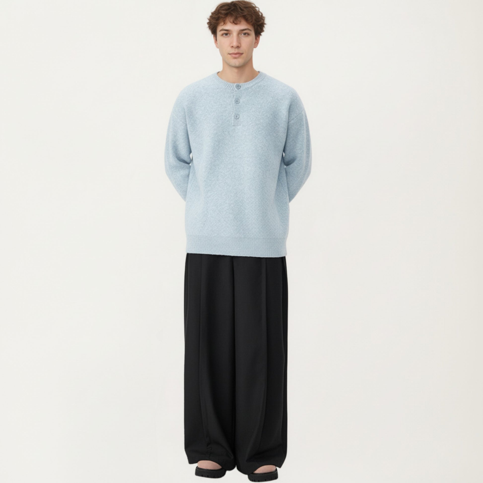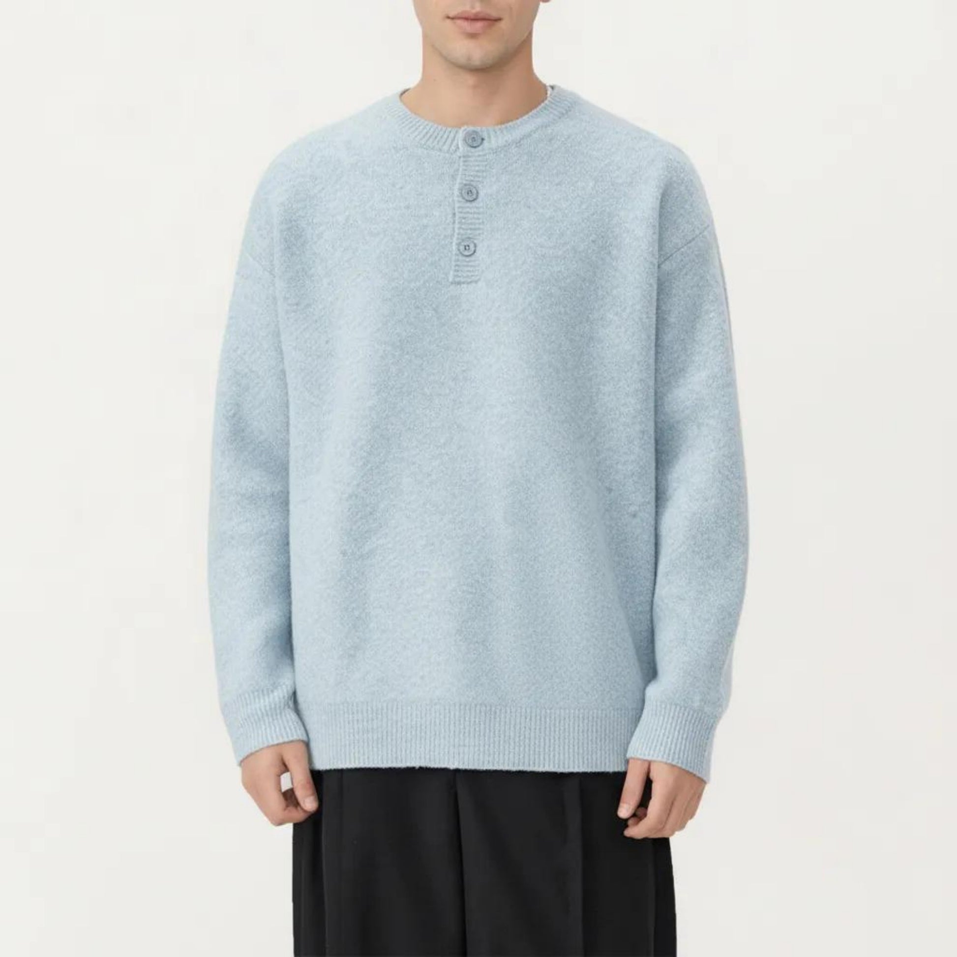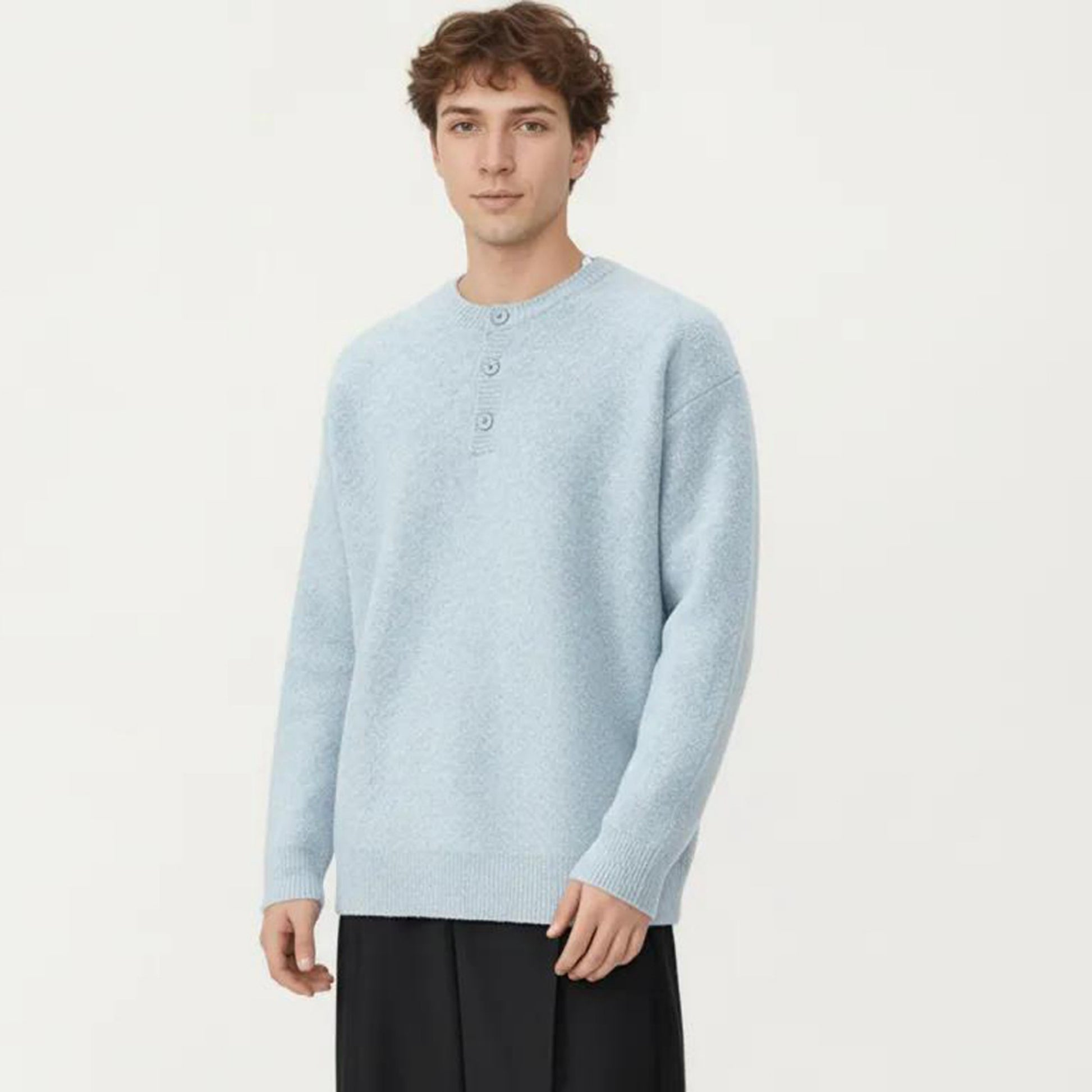 The Anna-Kaci Men's Long Sleeve Knit Henley Sweater offers a refined balance of comfort and structure. Crafted with a soft, tightly knit texture, this sweater features a classic henley button placket that adds subtle detail to its clean silhouette. Ribbed trim at the neckline, cuffs, and hem provides a polished finish while helping maintain shape. Designed for easy layering or standalone wear, this piece delivers an elevated everyday look with lasting comfort.