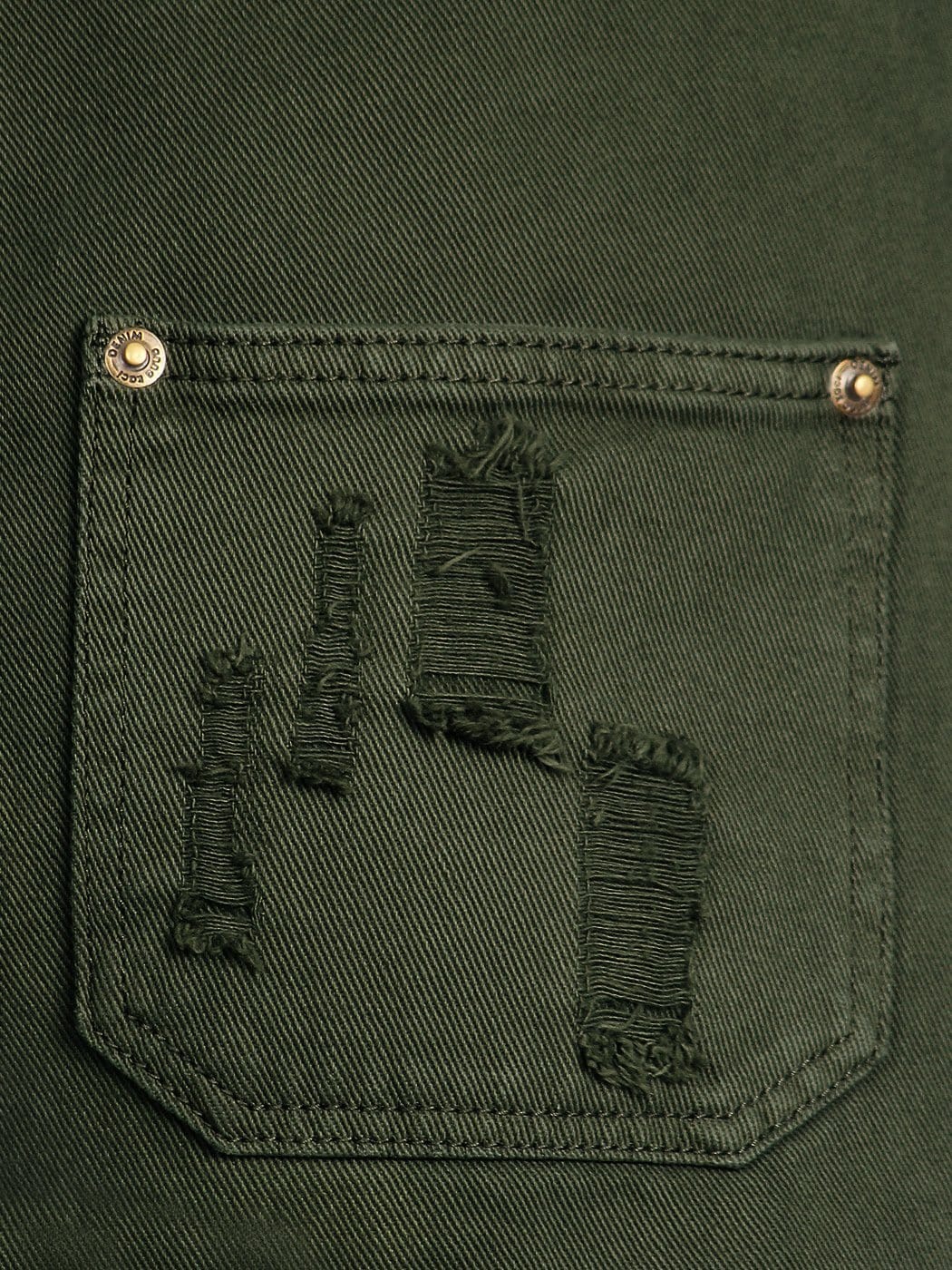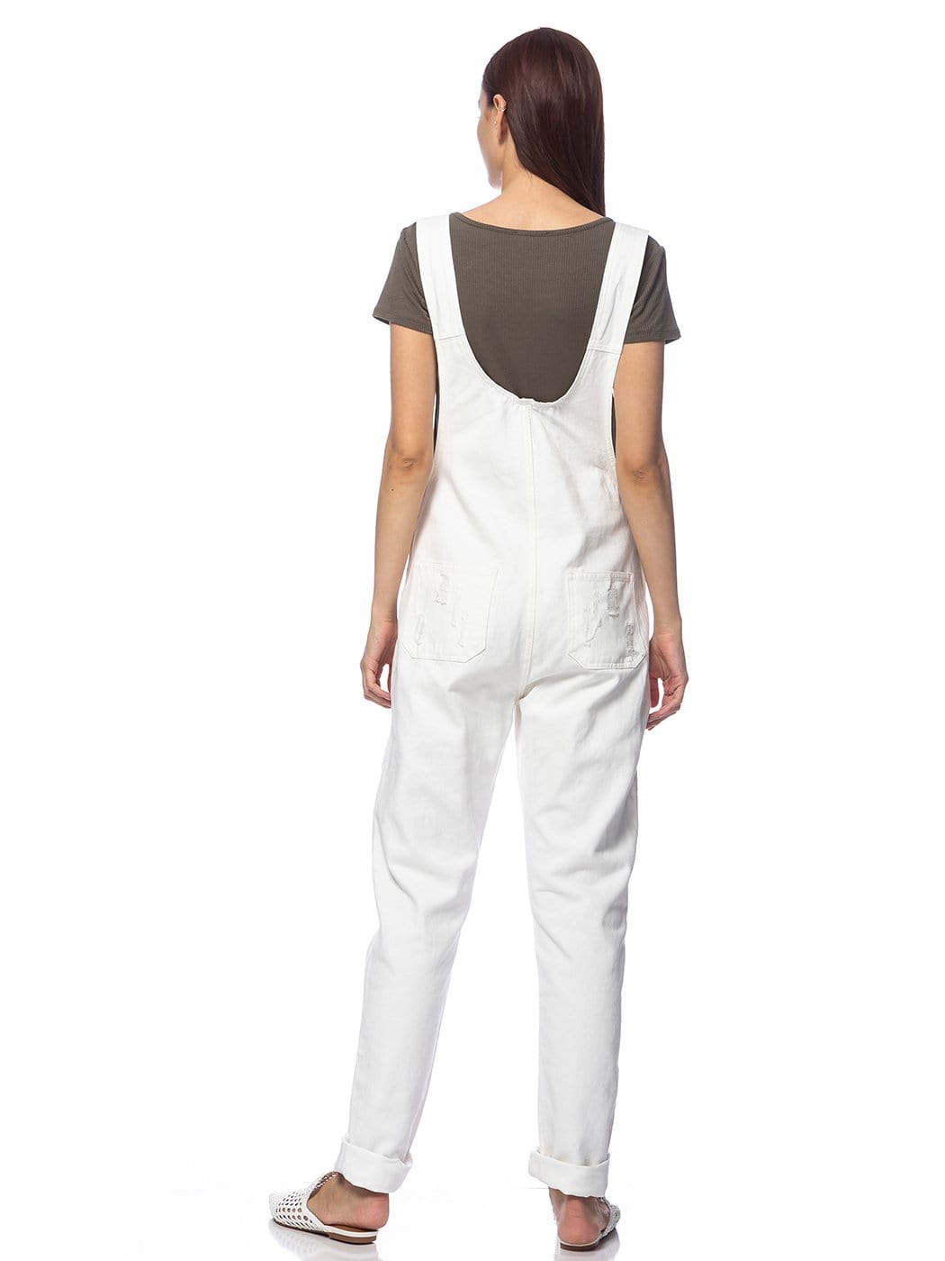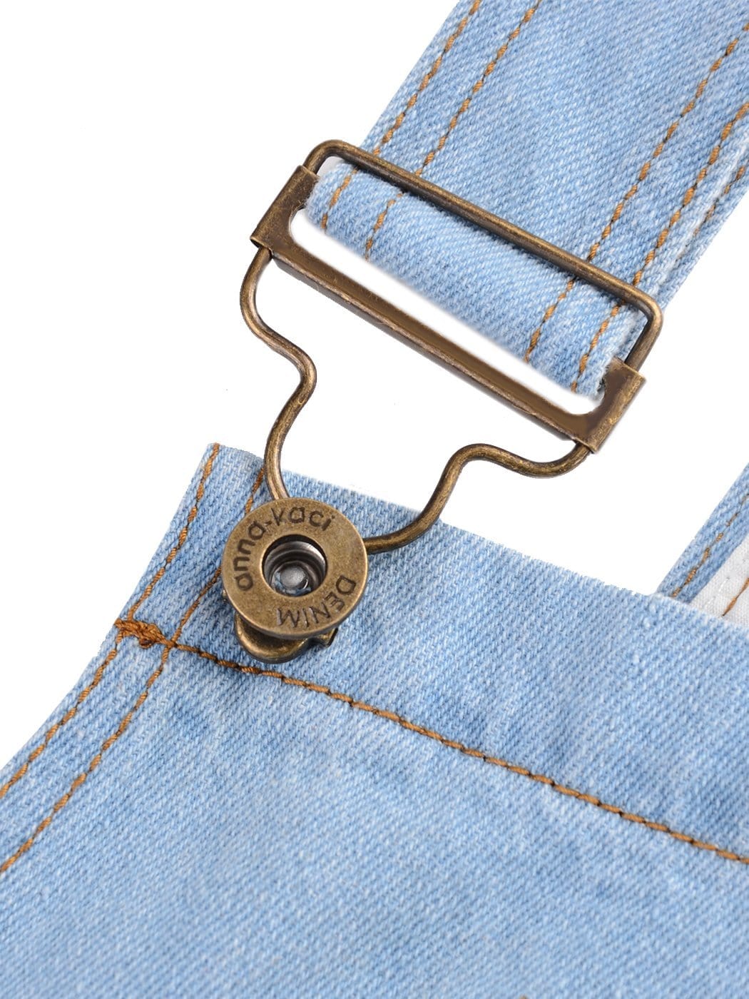 - DISTRESSED DENIM FOR A VINTAGE LOOK. Just one of those classic pieces that you need in every wardrobe. These cute bib style overalls have a distressed finish to give it a fun, worn look while still being durable due to the high quality cotton used.