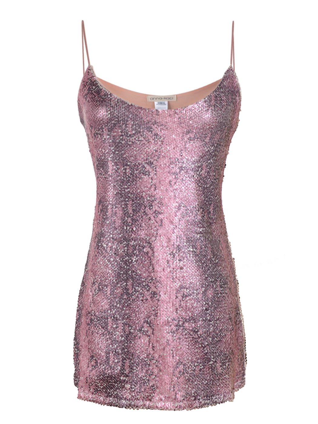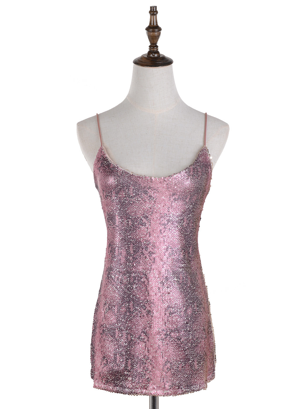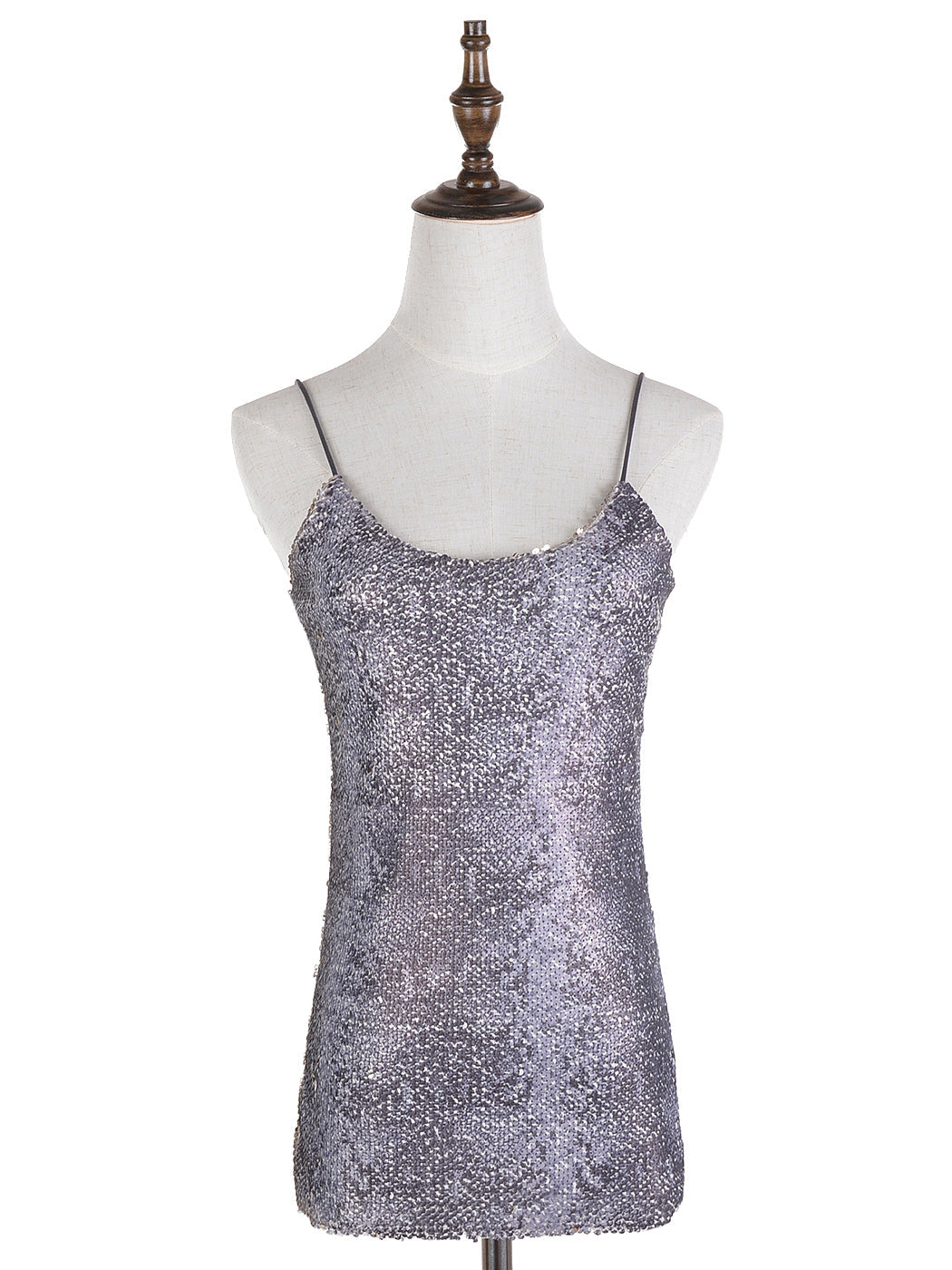 - Sequins create a faux snakeskin print along the front of the camisole.