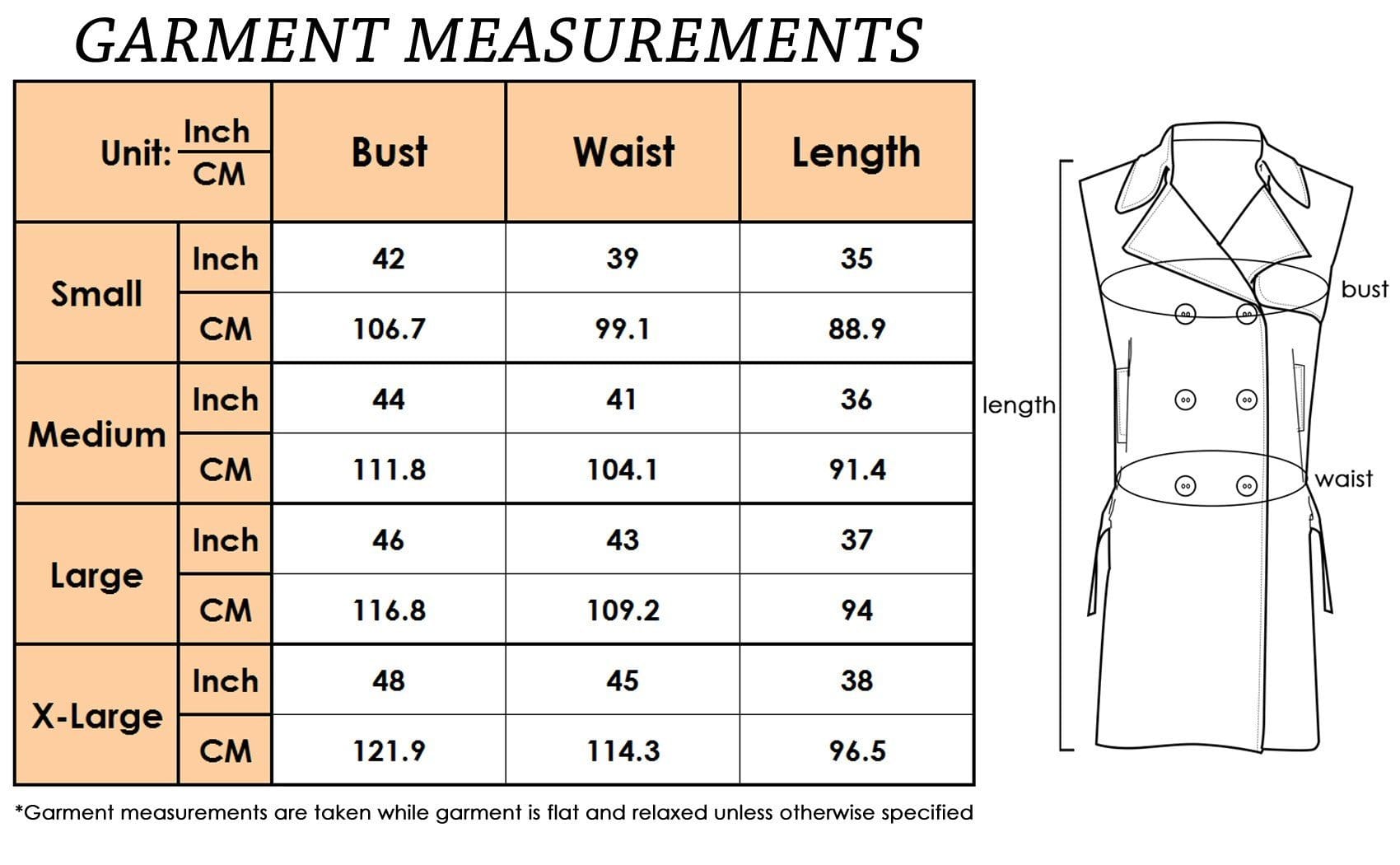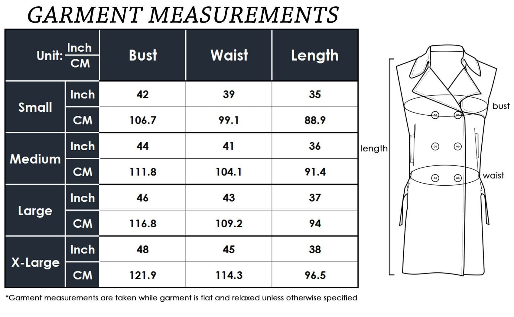 - OPEN FRONT DOUBLE-BREASTED TRENCH JACKET. A casual womens open front cardigan style jacket in a trench coat style with a fun sleeveless design. This waistcoat jacket comes with a fixed belt, a notched lapel collar, and functional pockets. The belt affixed to the back of the coat is adjustable, allowing you to add shape to the coat.