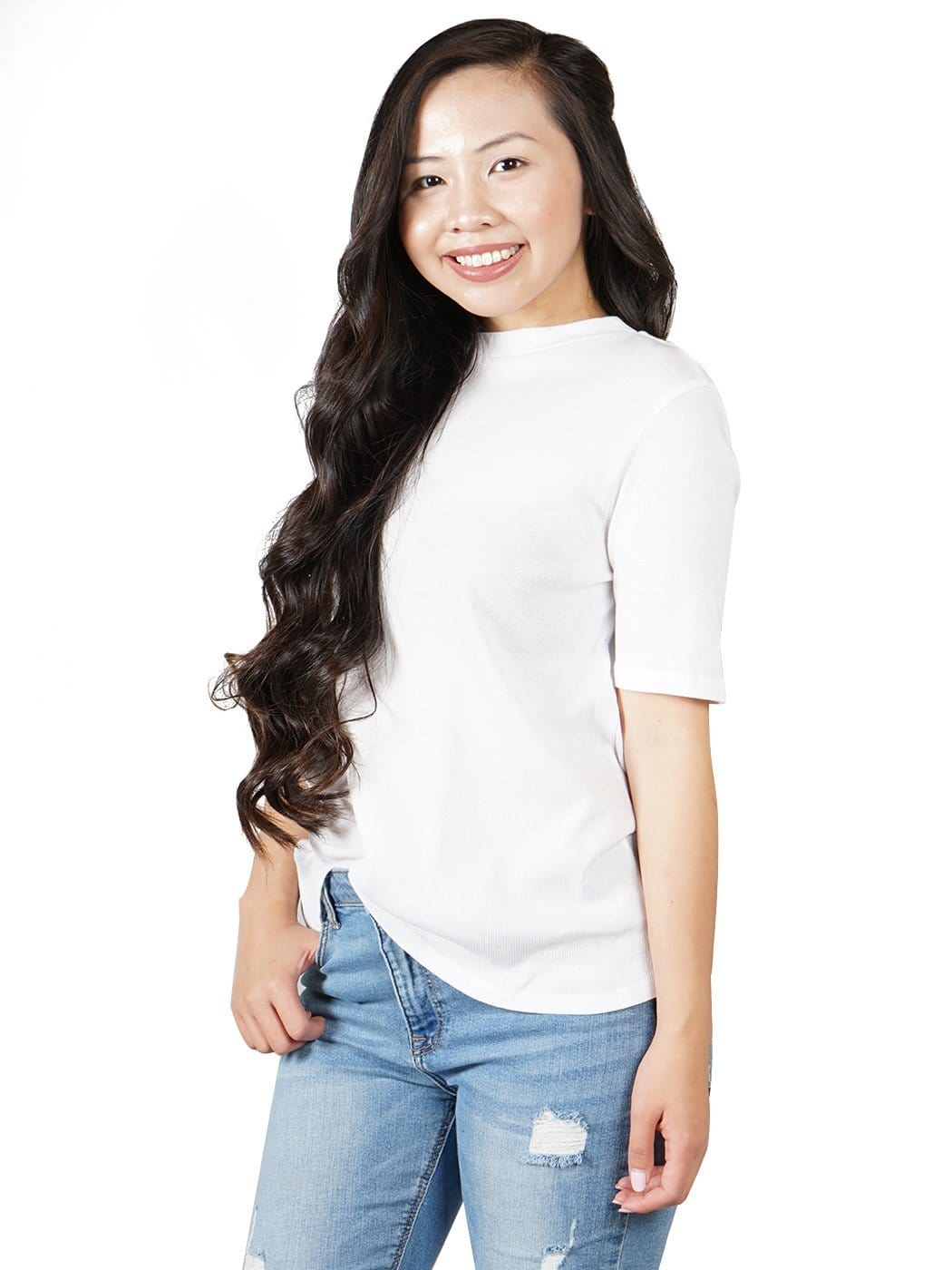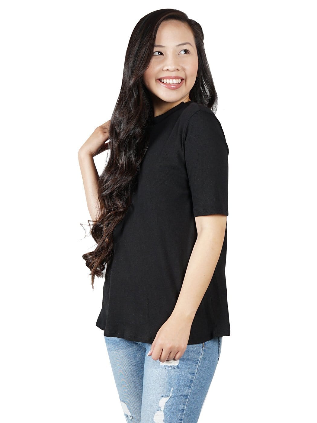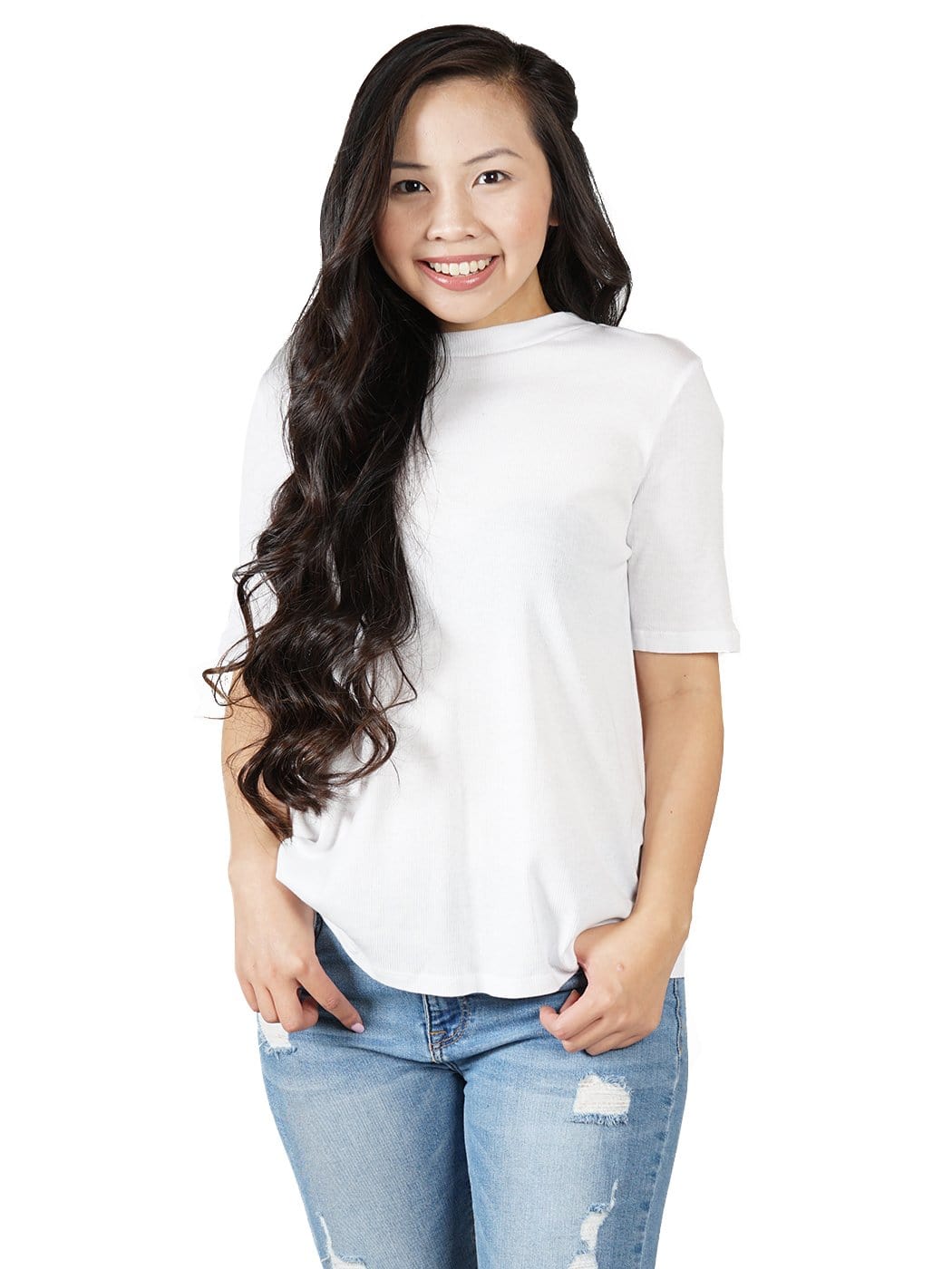 - BEAUTIFUL DETAILED KNIT. This amazing top features ribbed fabric with a mock neck making it a unique top! This blouse also has a low v-neck back that is such a stunning feature. Comes in a beautiful white and black color which both match everything.