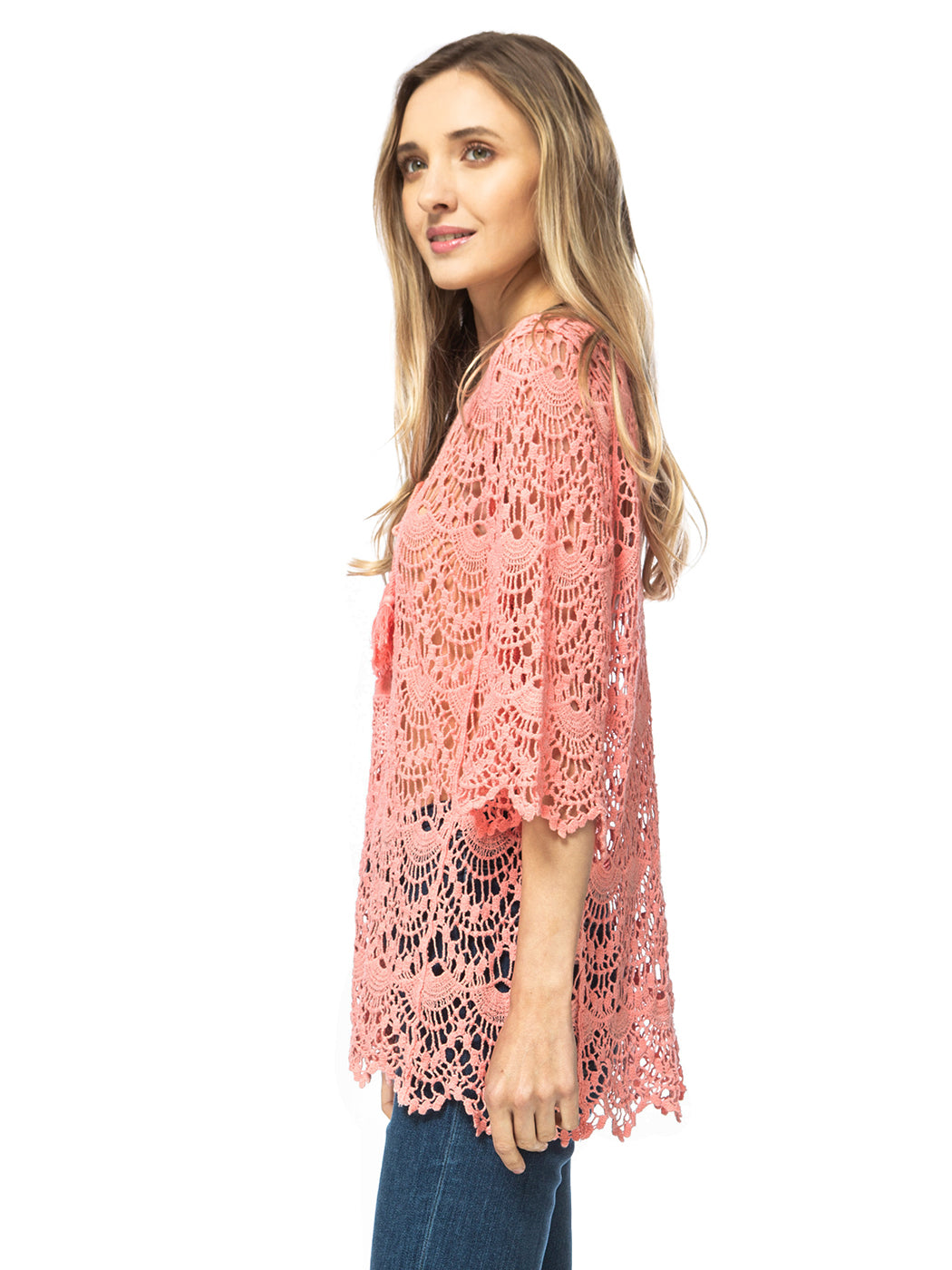 Lightweight and soft this summer tunic has an open knit pattern work design that is breathable and easy to wear over your swimwear as a cover up over with your bralettes & camis.