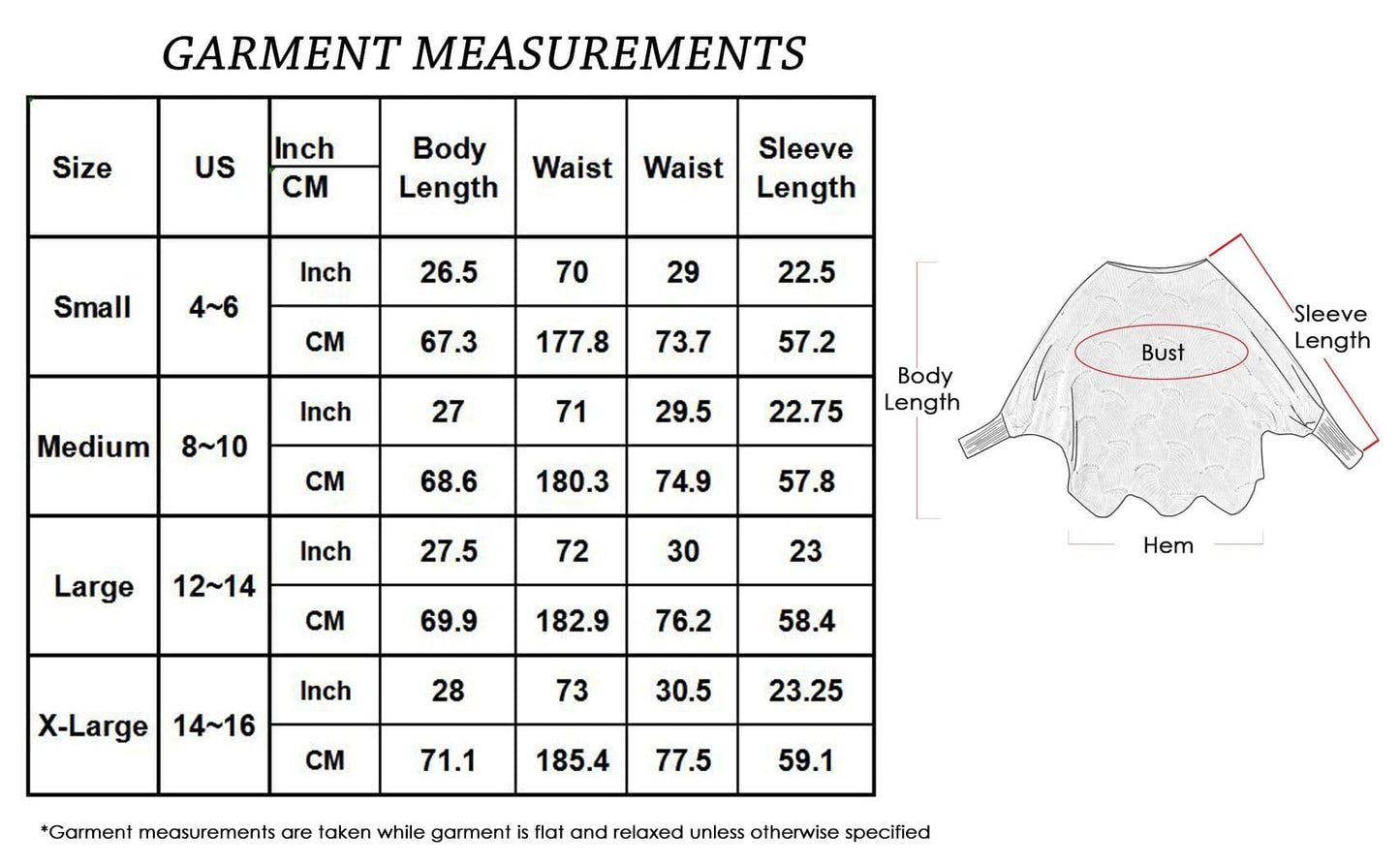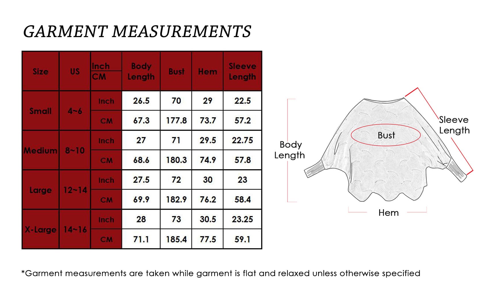 - SIZING - Please refer to the garment measurement chart in the photos for help when choosing a size. Measurement chart shows finished garment measurements. If you have any questions regarding size and fit, please do not hesitate to contact us and our style experts can help guide you.