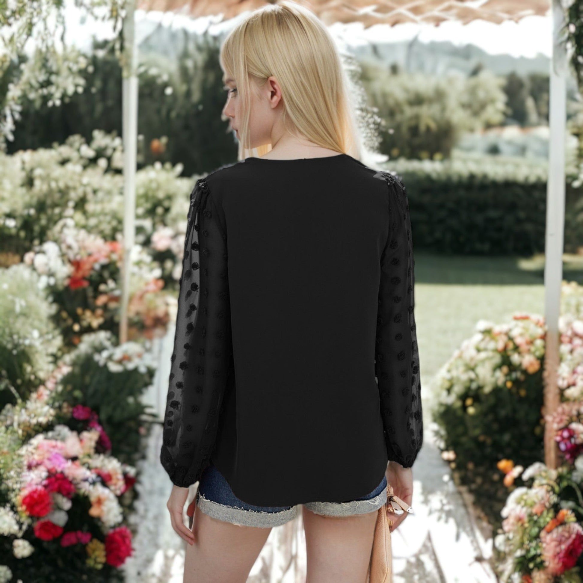 Chiffon Blouse Swiss Dot Long Sleeve Top