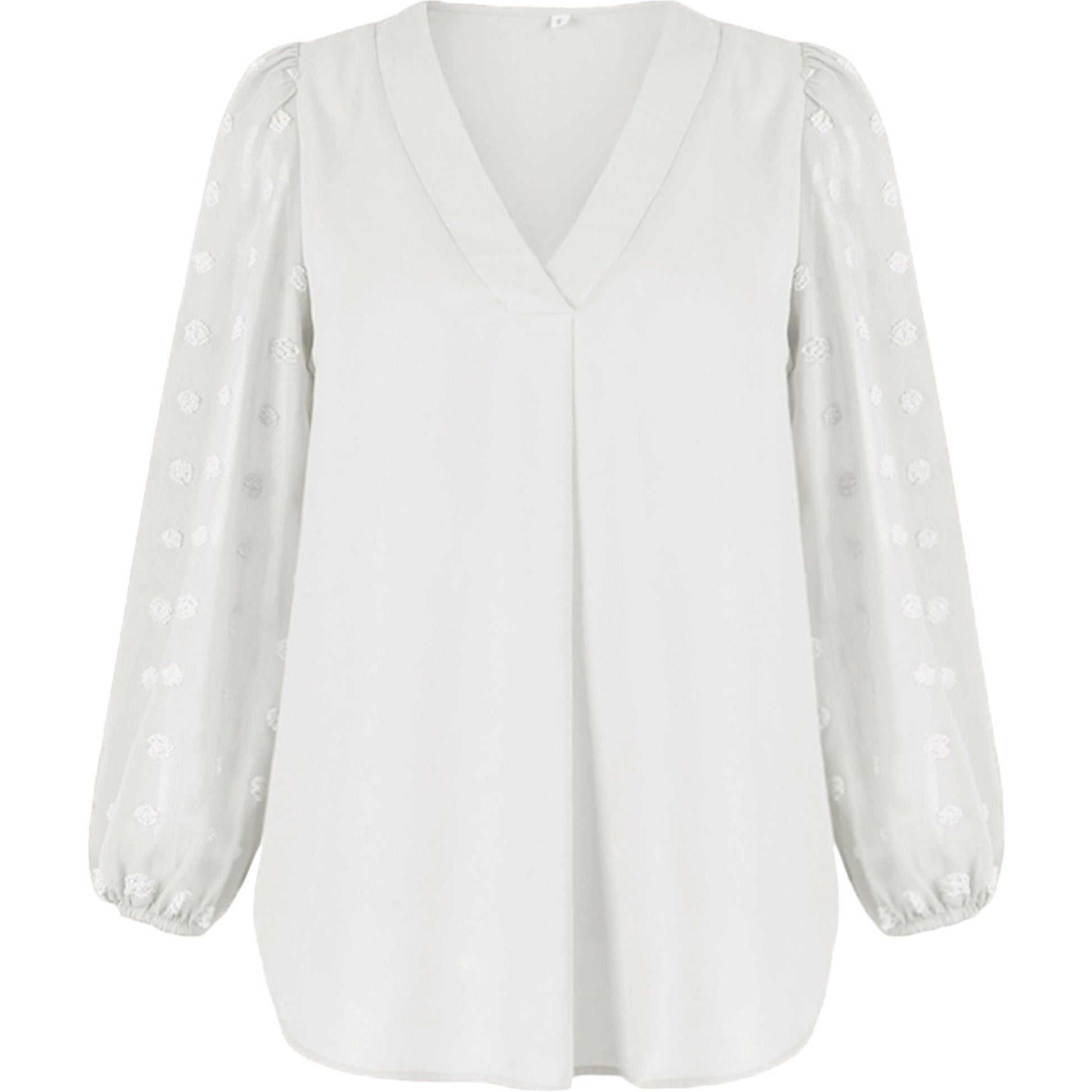 Elevate your wardrobe with the Anna-Kaci Women's Chiffon Blouse Swiss Dot Long Sleeve Top, a perfect blend of elegance and charm. Featuring cute pom poms, frilled detailing, and a sexy V-neck design, this blouse exudes sophistication with its lantern sleeves and casual loose fit.