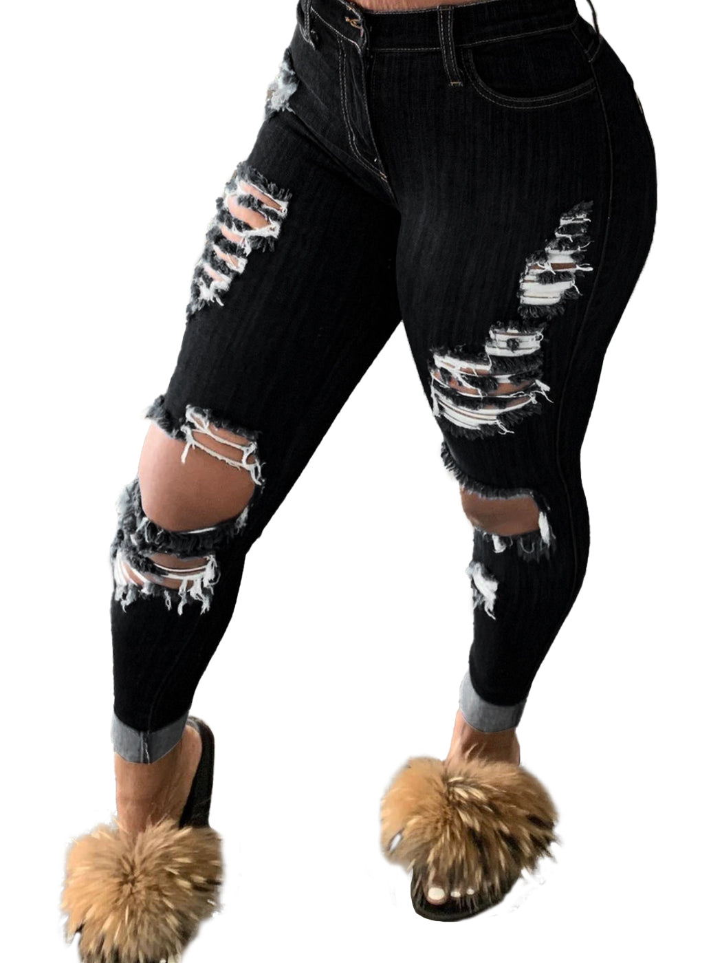 Features: Casual Pants, Ripped, Distressed Jeans, Skinny, Blue Jeans, High Waist, Long Pants, tapered Leg, stretch, Traditional 5 pockets, Front Zipper and Button Closure,Sexy and Leisure, Zip fly with button closure.