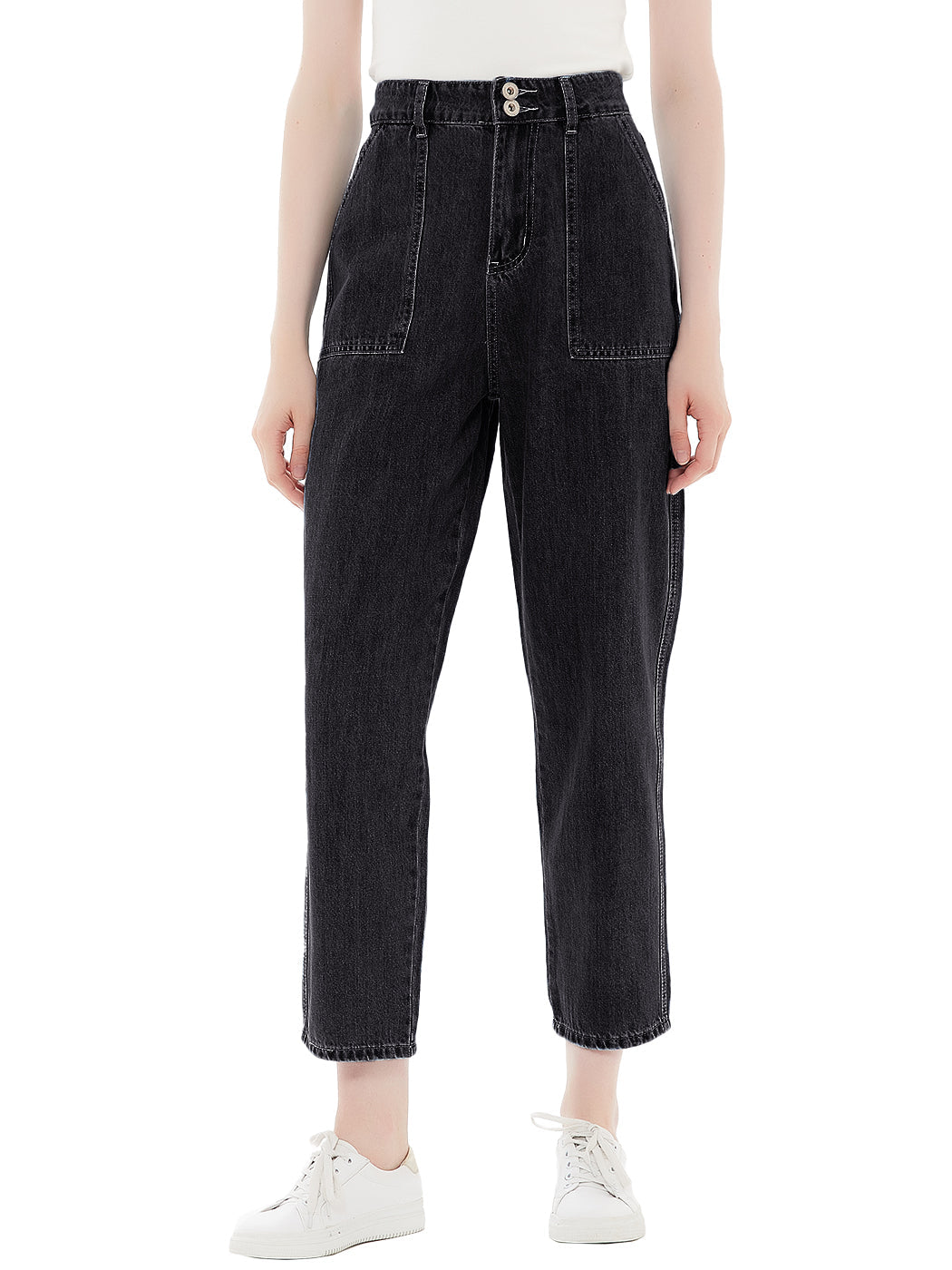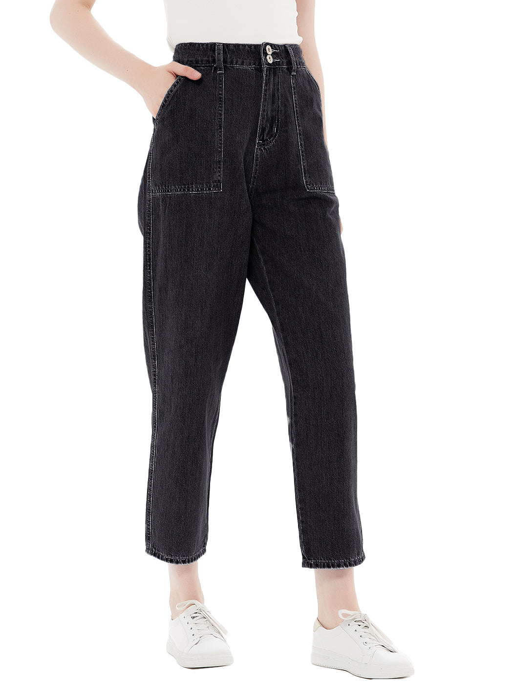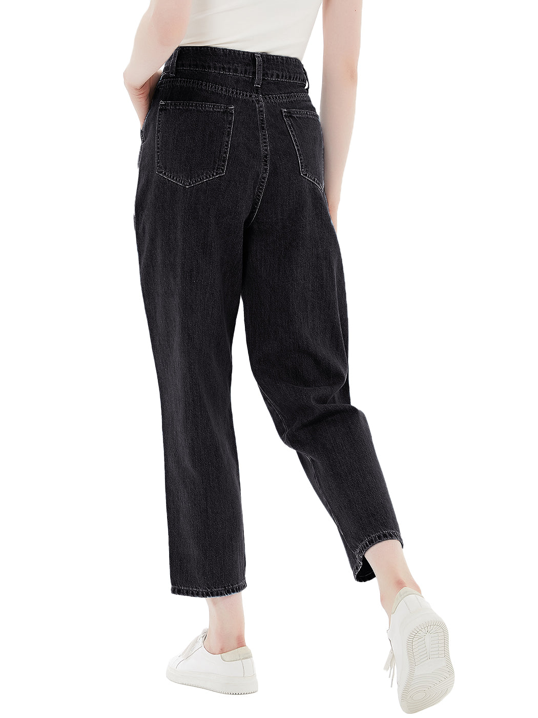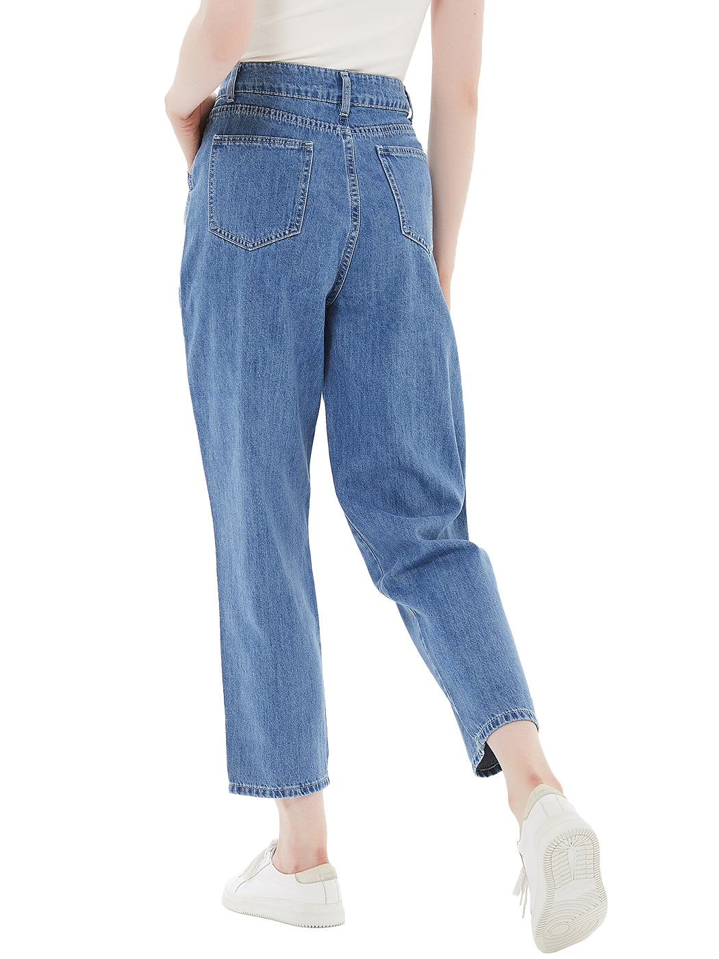 - FEATURE -- Solid High Waisted Tapered/Carrot Jeans, Functional pockets,Casual, high waisted, Wide Leg, zipper & button closure, cropped denim jeans, baggy harem pants, loose fit tapered pants, Fashionable lantern trousers.
