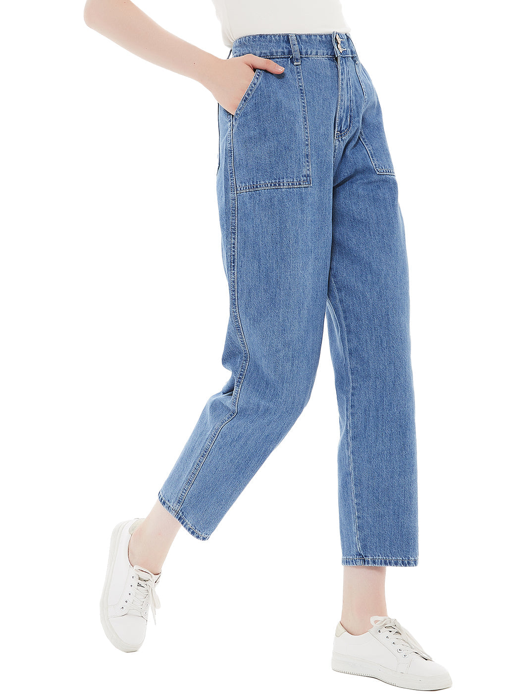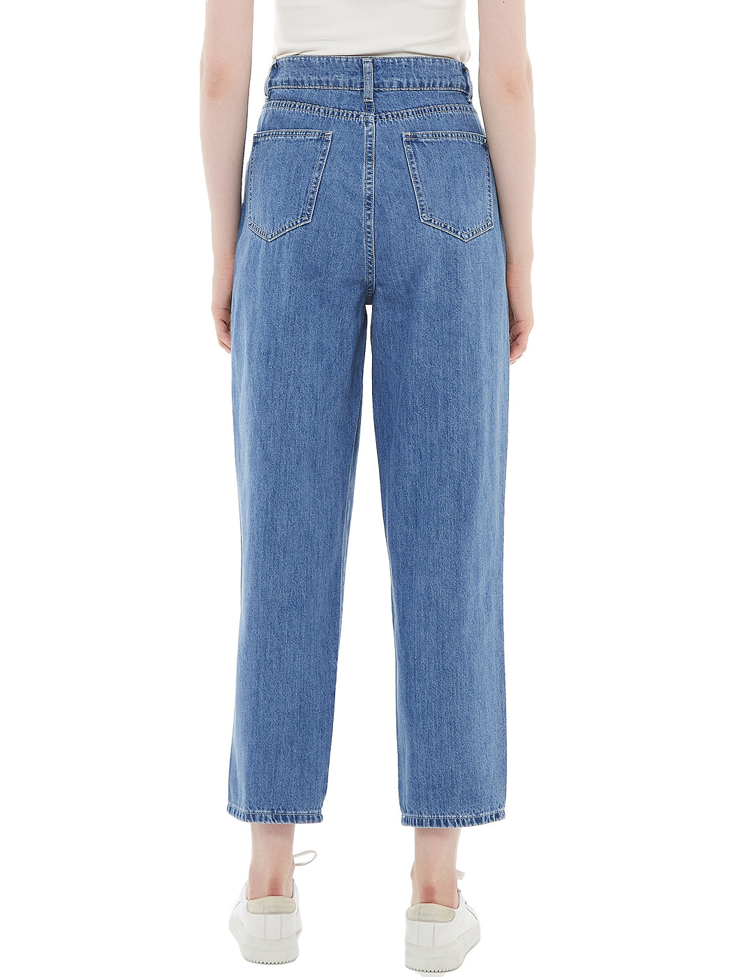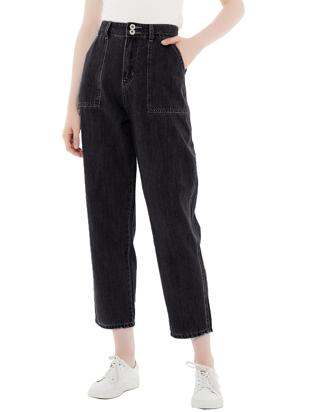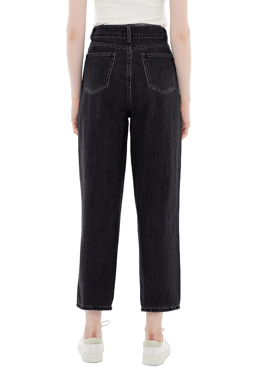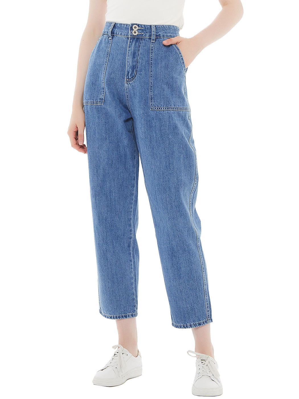 - FEATURE -- Solid High Waisted Tapered/Carrot Jeans, Functional pockets,Casual, high waisted, Wide Leg, zipper & button closure, cropped denim jeans, baggy harem pants, loose fit tapered pants, Fashionable lantern trousers.