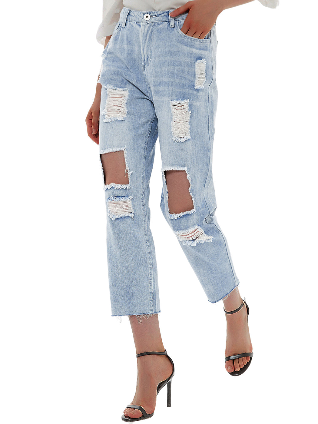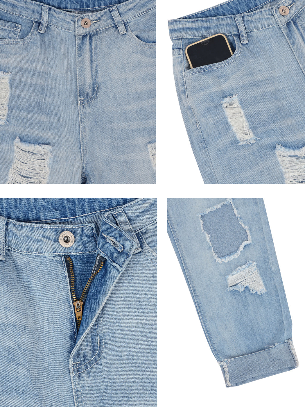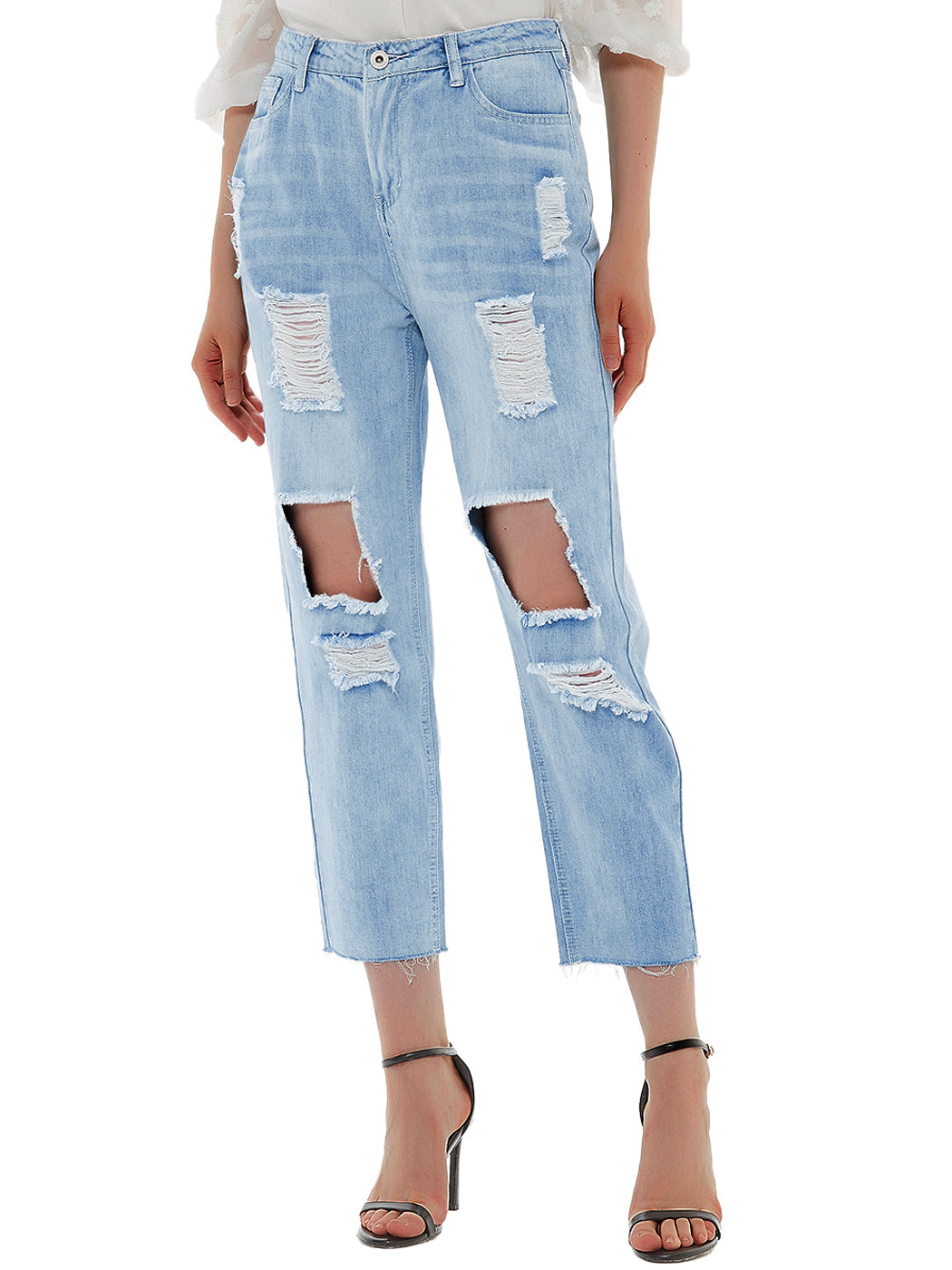 - FEATURES - High waist, ripped holes, distressed boyfriend jeans, basic 5 pockets, zipper closure, frayed bottoms, causal crop denim pants, trendy jeans 90s jeans, fashion streetwear.
