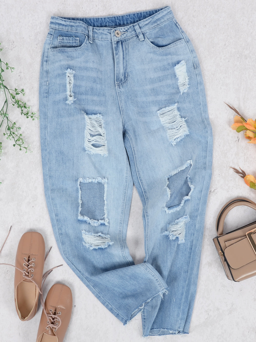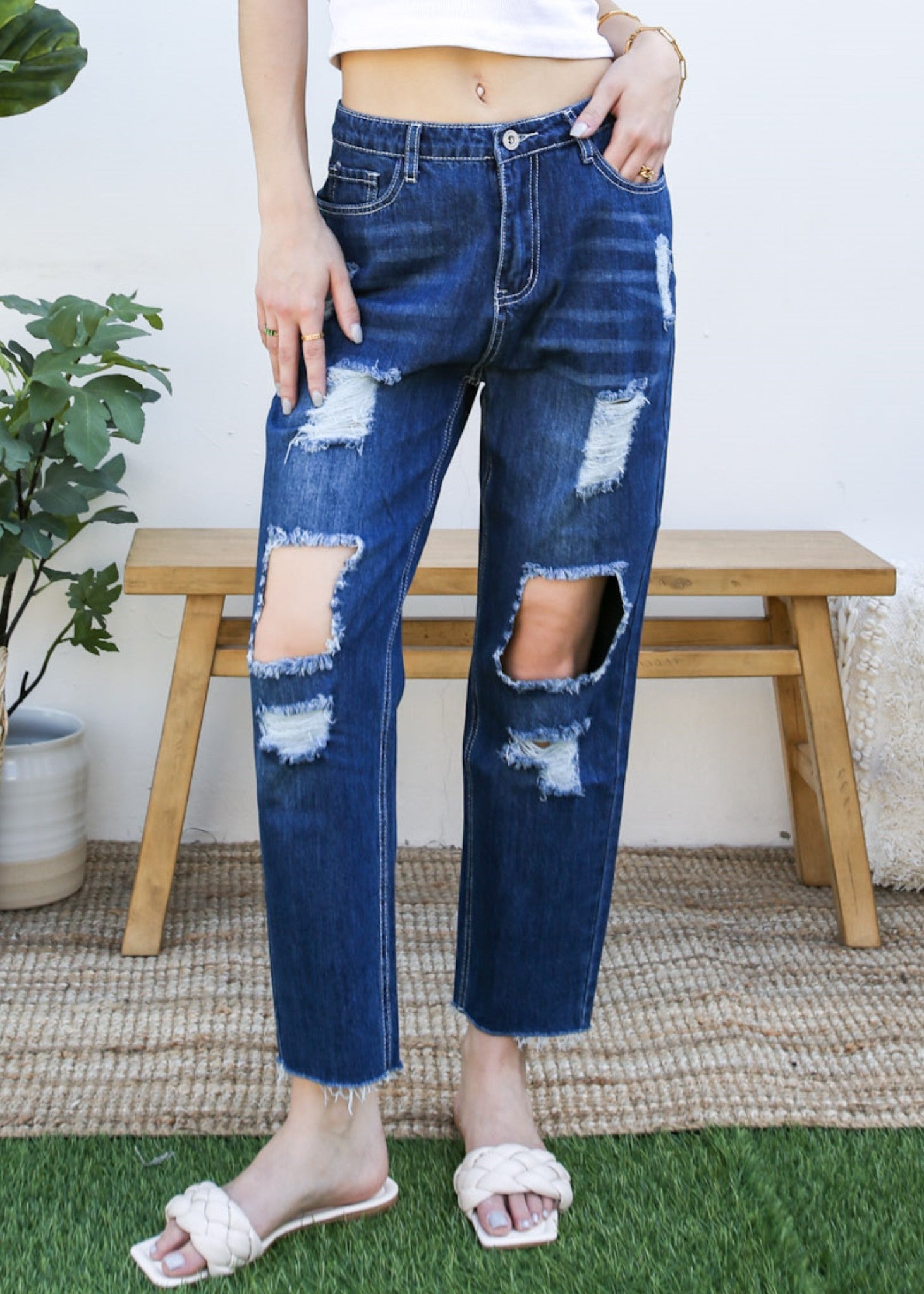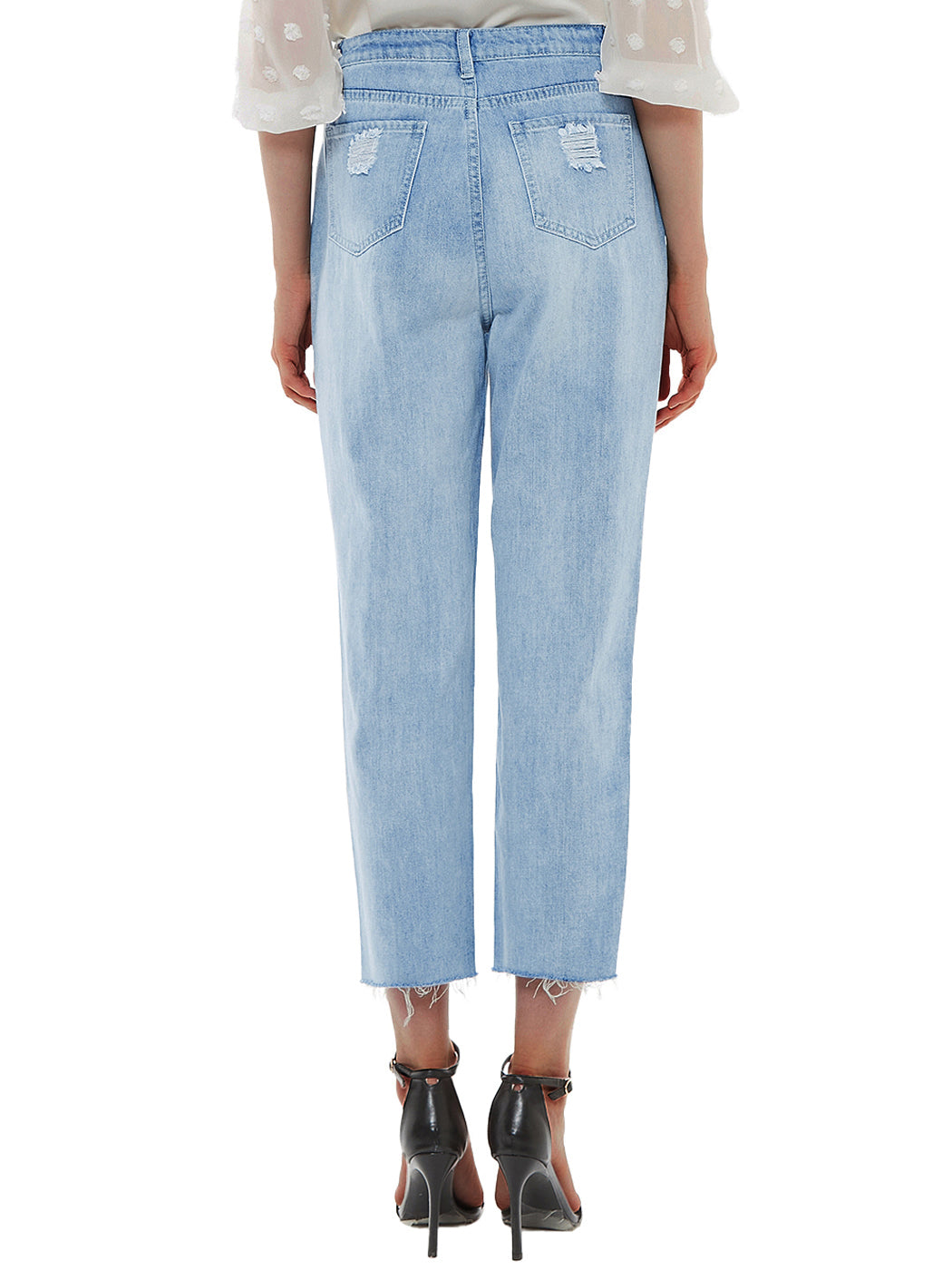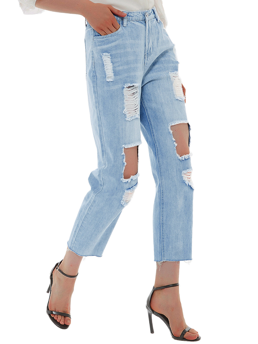 - FEATURES - High waist, ripped holes, distressed boyfriend jeans, basic 5 pockets, zipper closure, frayed bottoms, causal crop denim pants, trendy jeans 90s jeans, fashion streetwear.
